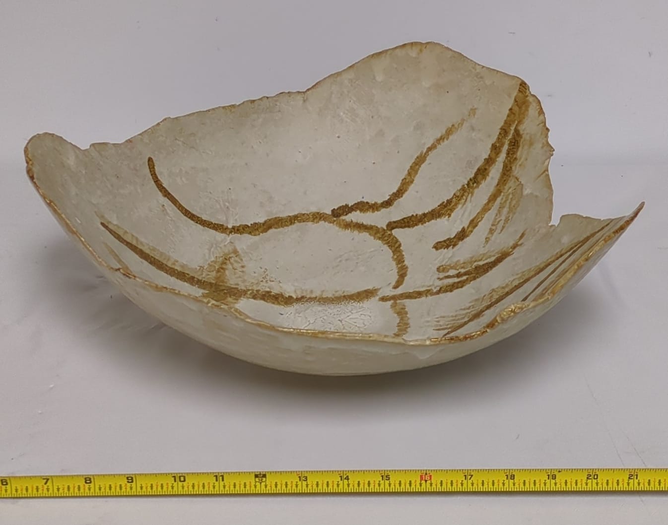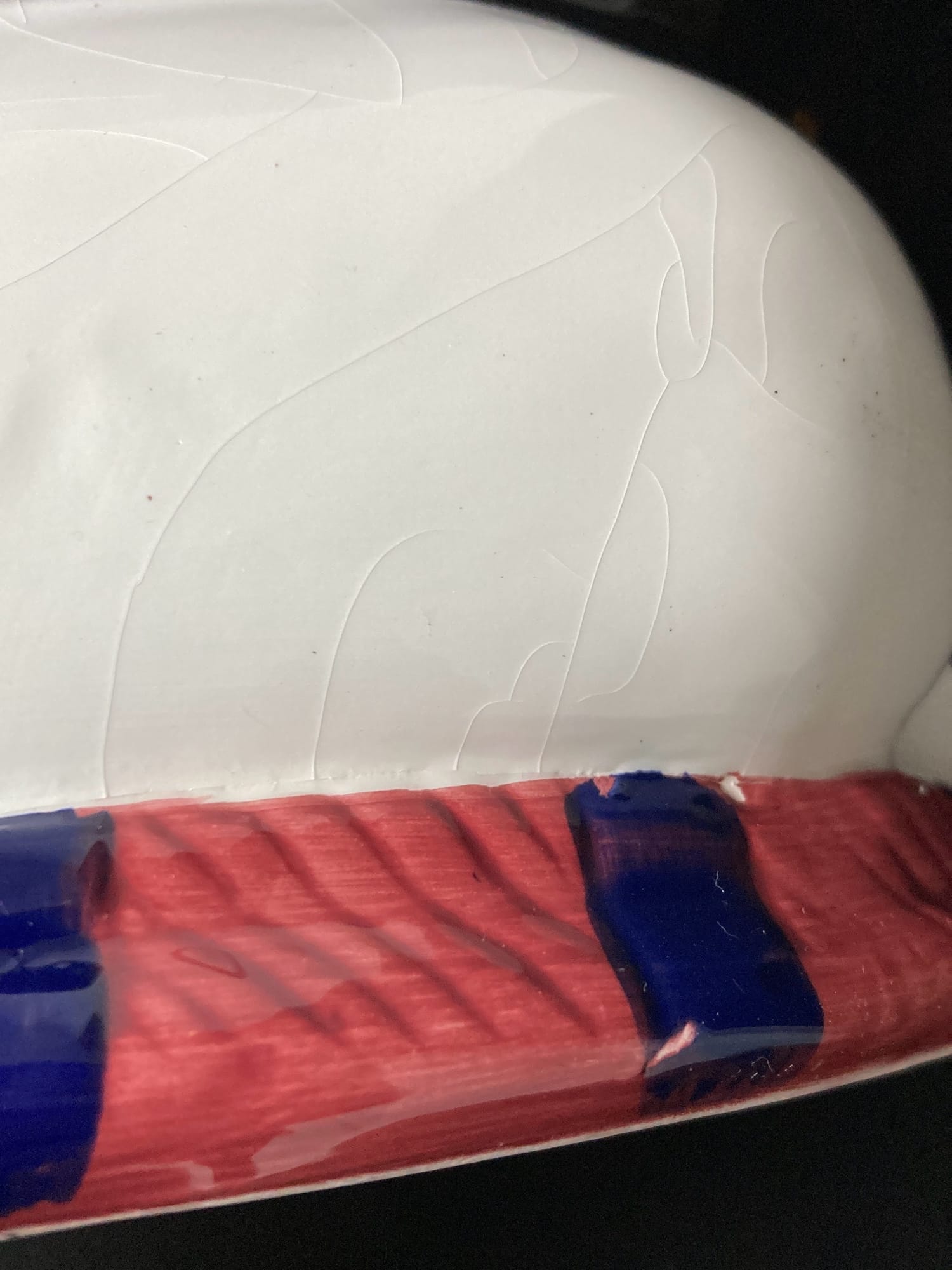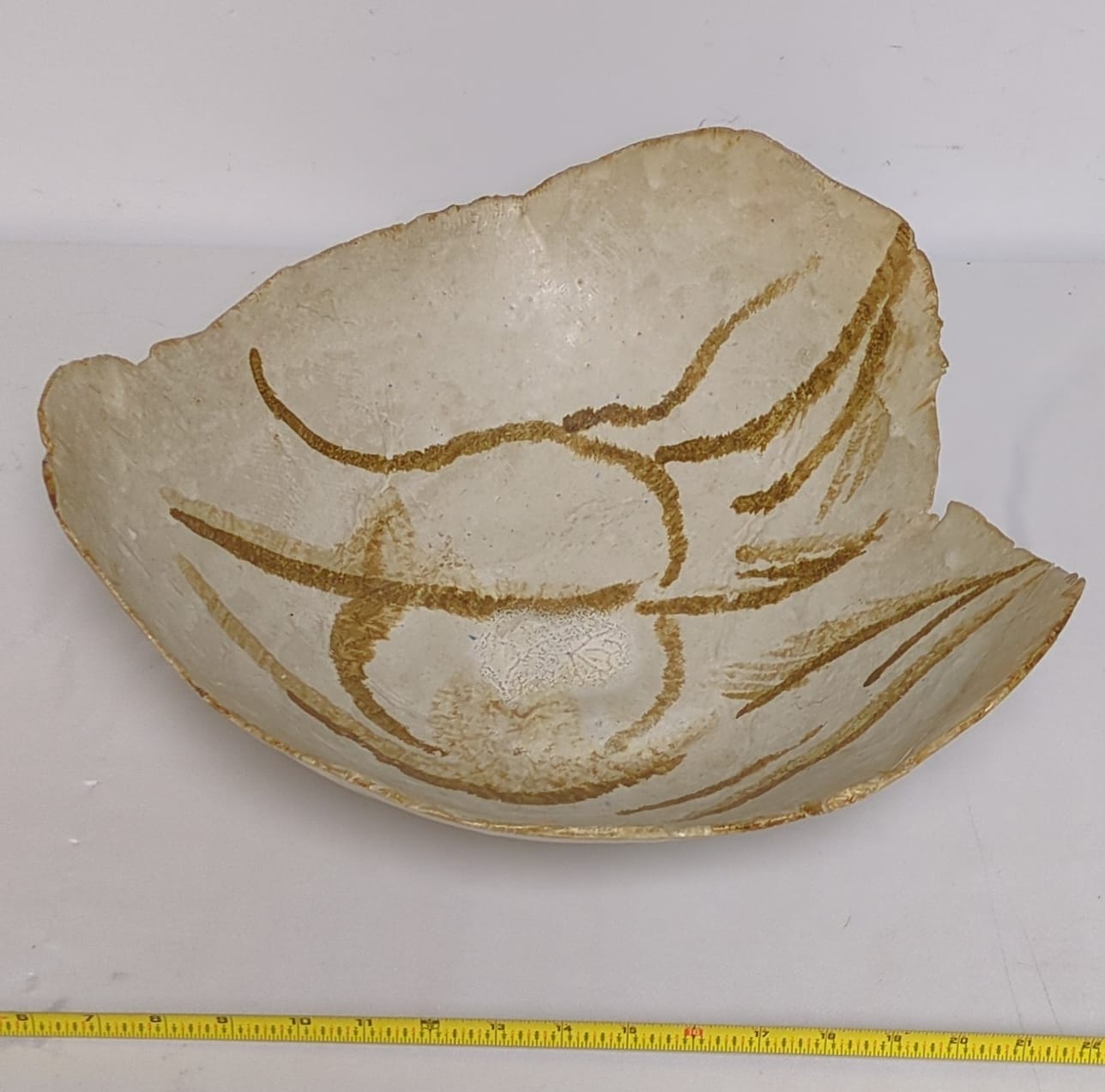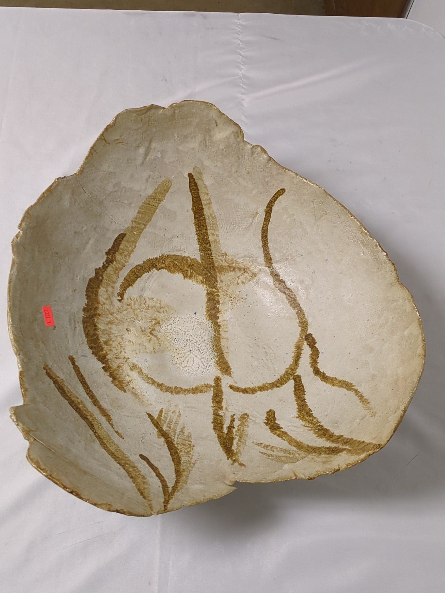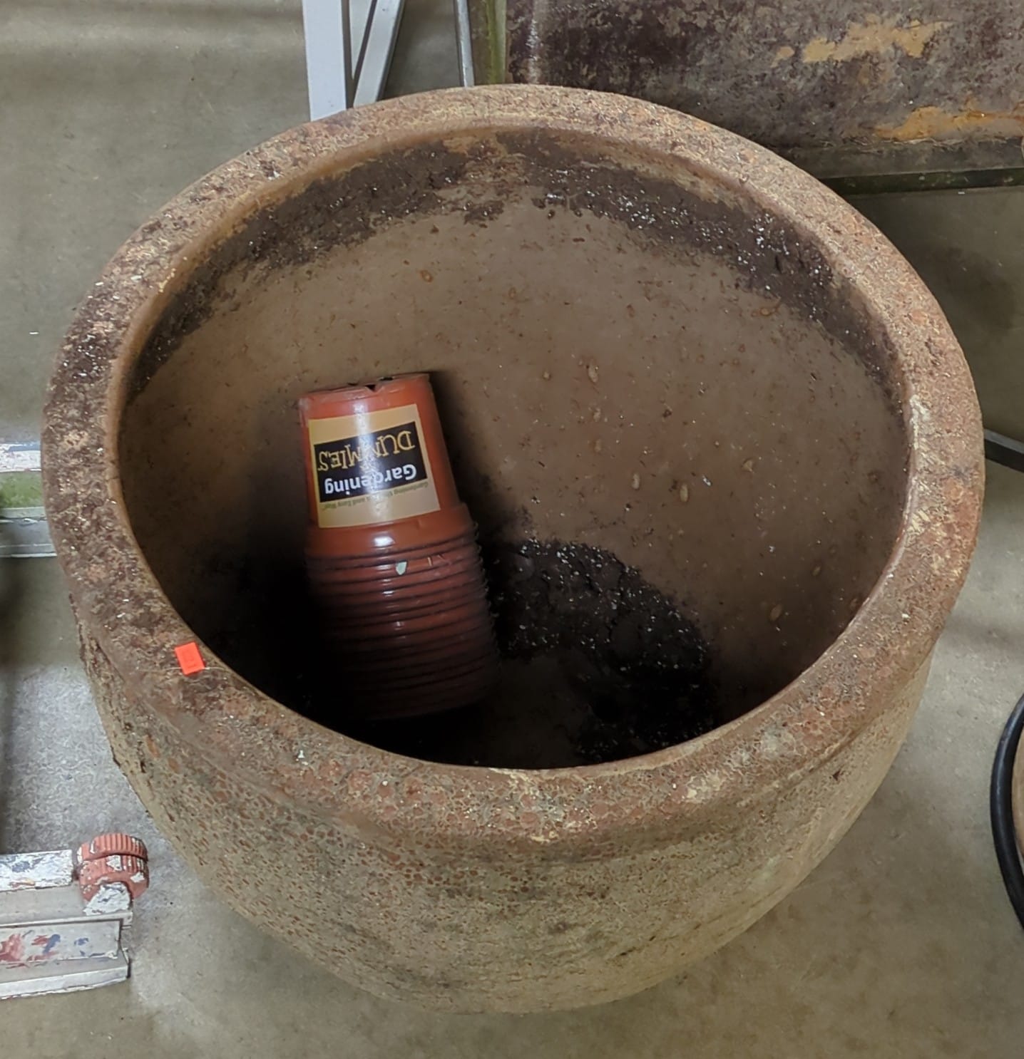 2329 Art Pottery Jardiniere, Drip Glaze Majolica Planter - has chip & crazing - 7" tallx9" Width