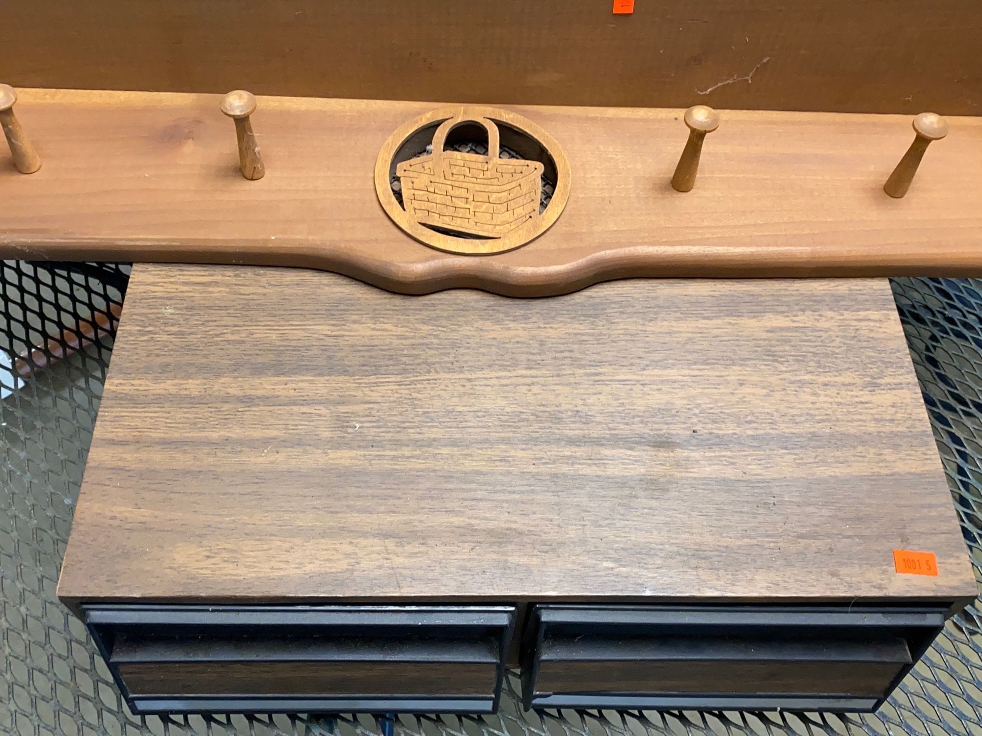 130 Broyhill Fabric 56”W x unknown L and Blanket Hanger Shelf 49”