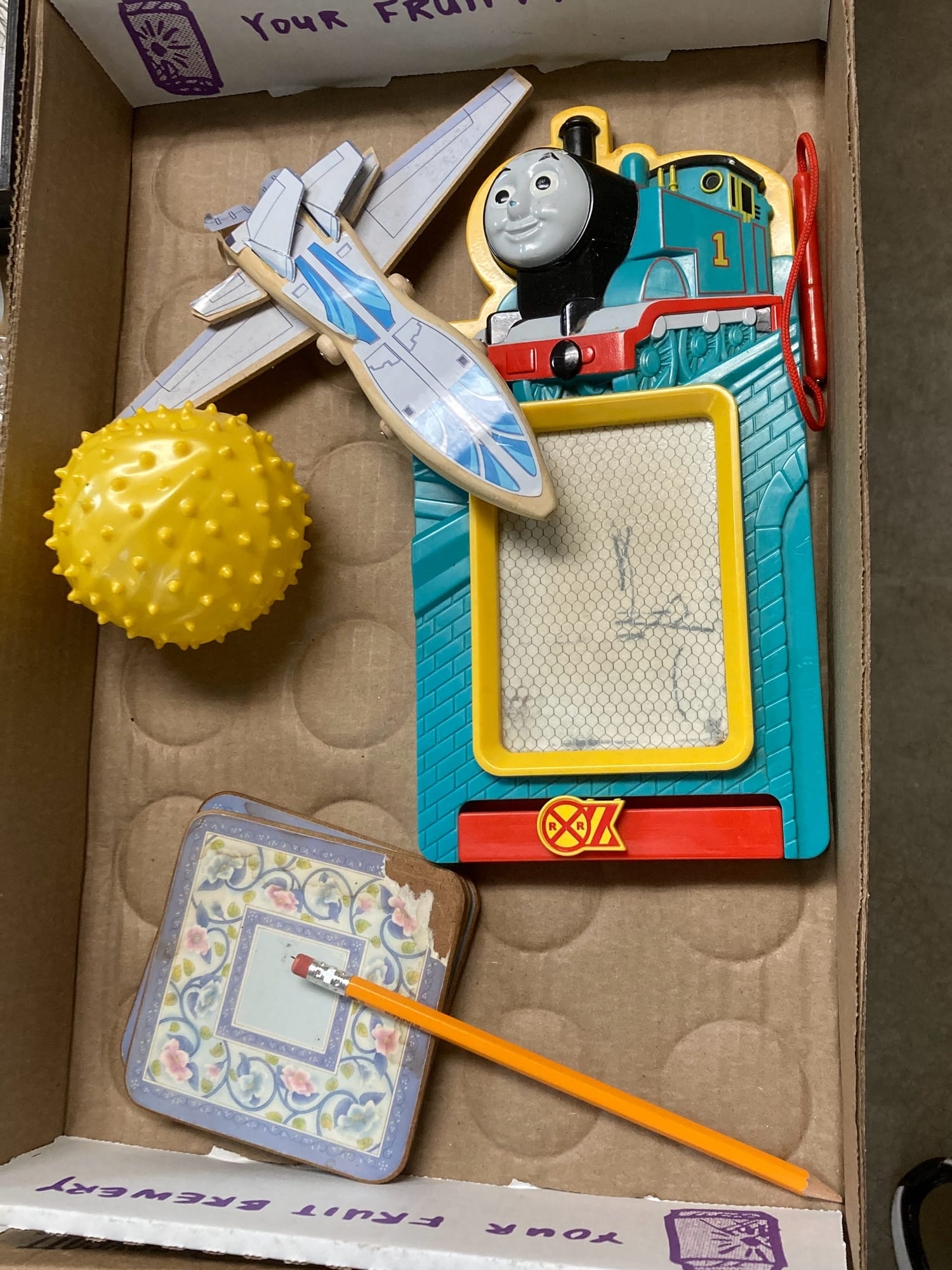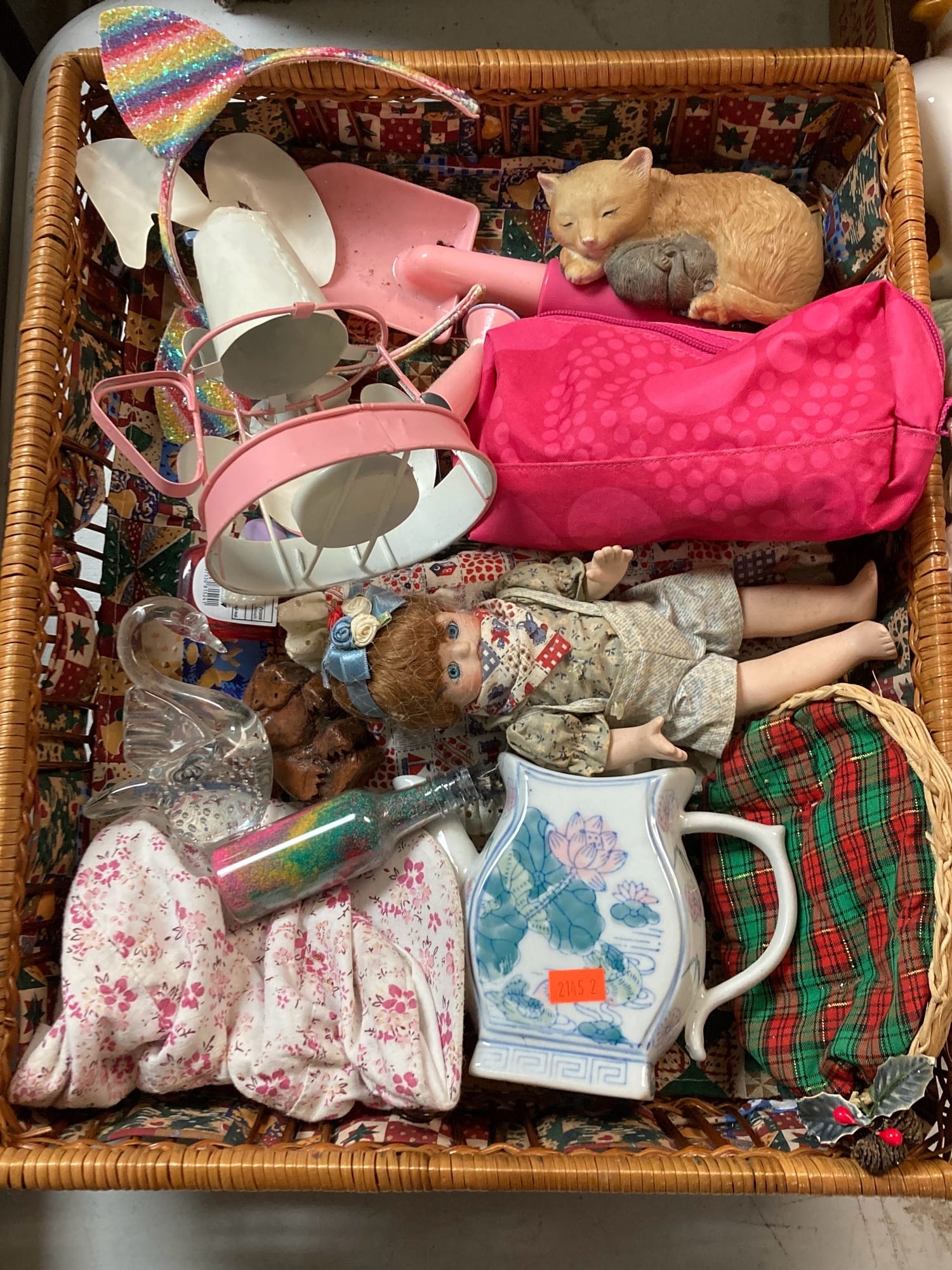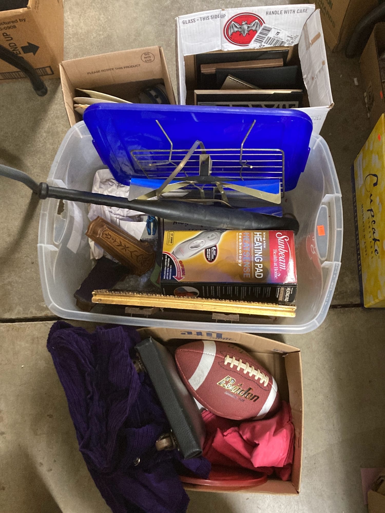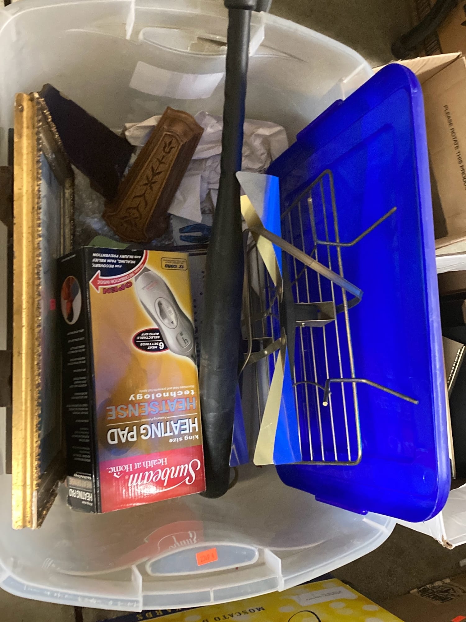 2349 Heating Pad, Plates, Dolly on Castors, Ornate Frames, Toys, and Household Assortment