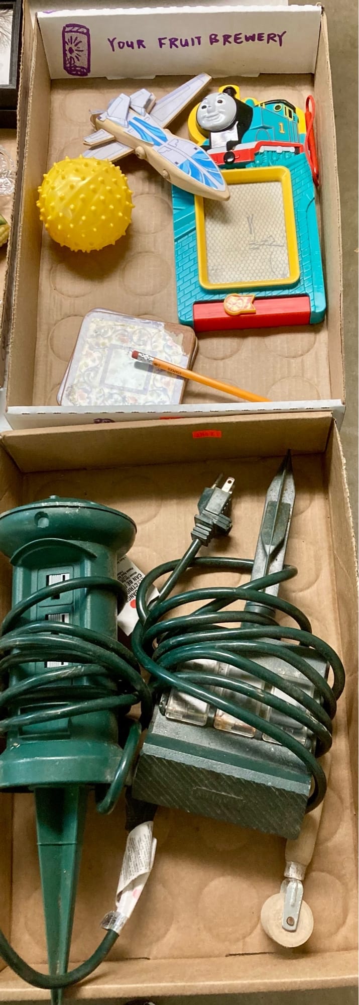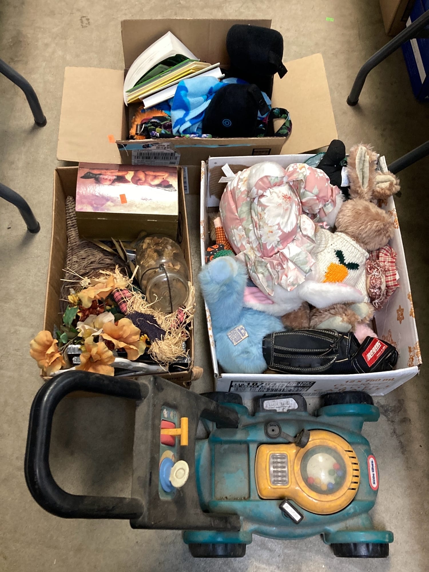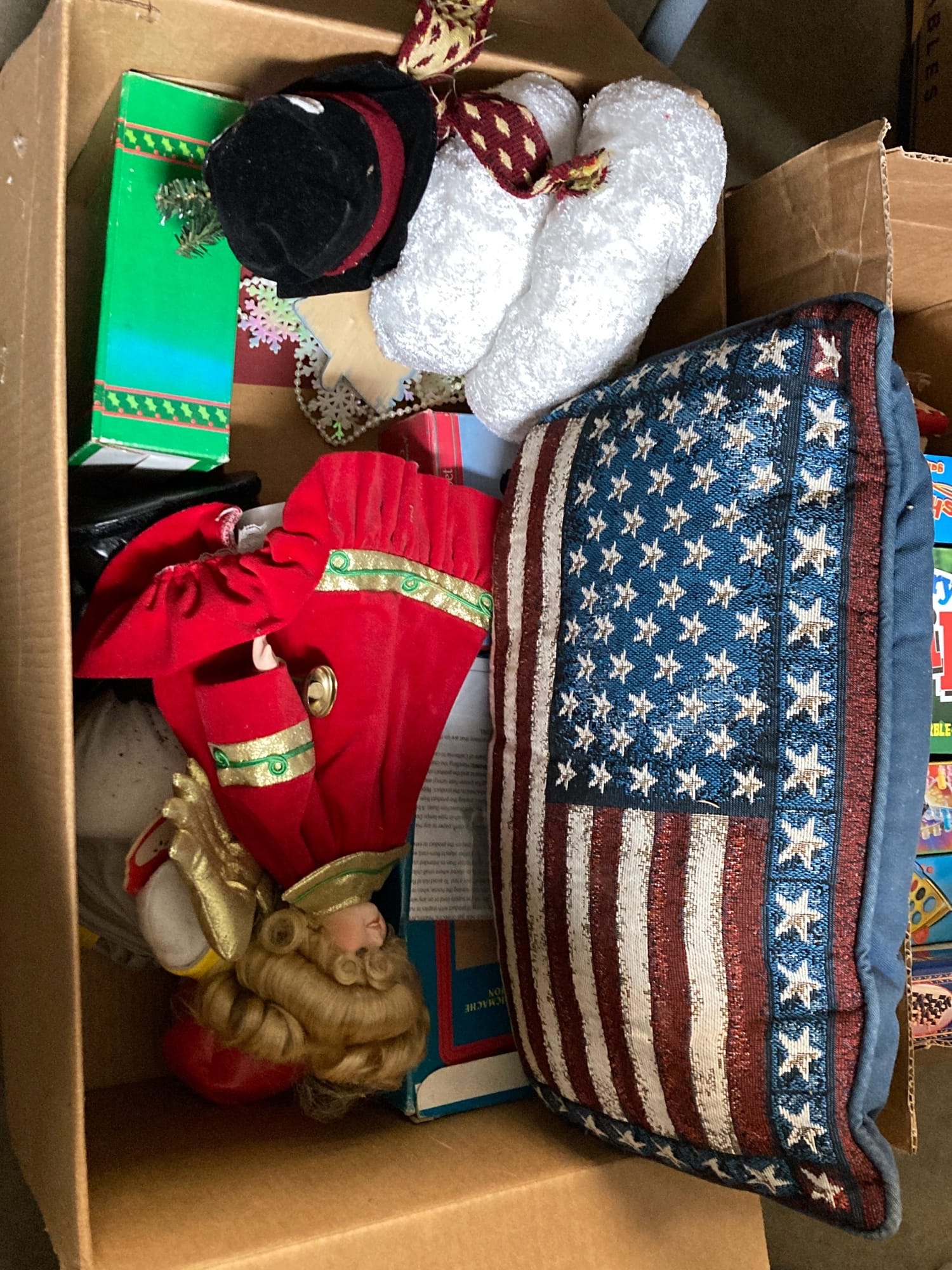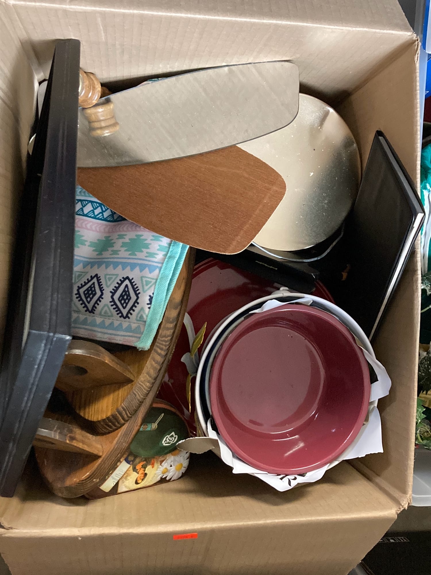 2349 Heating Pad, Plates, Dolly on Castors, Ornate Frames, Toys, and Household Assortment