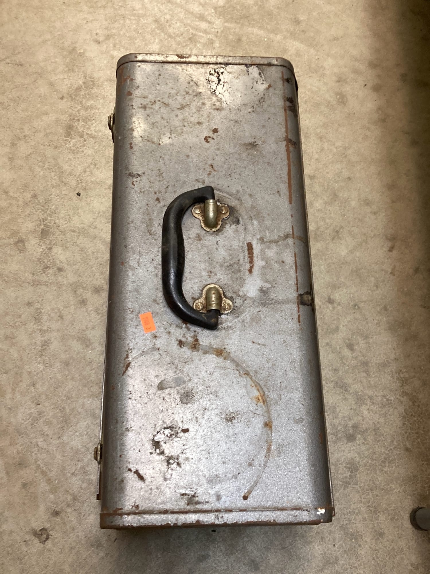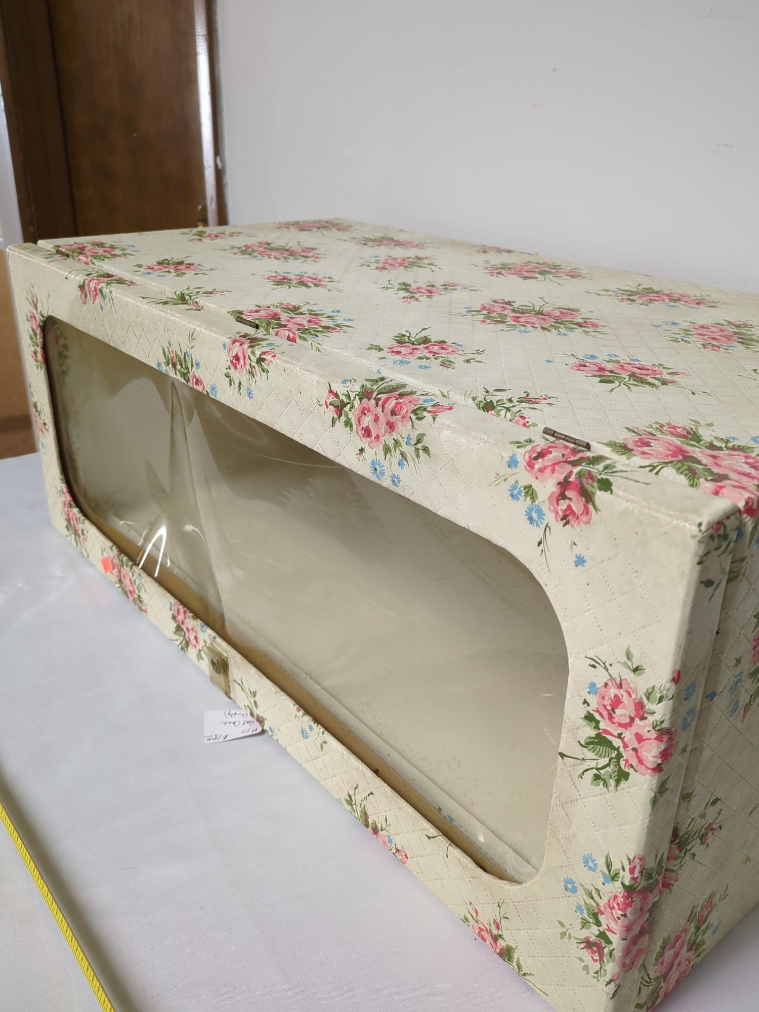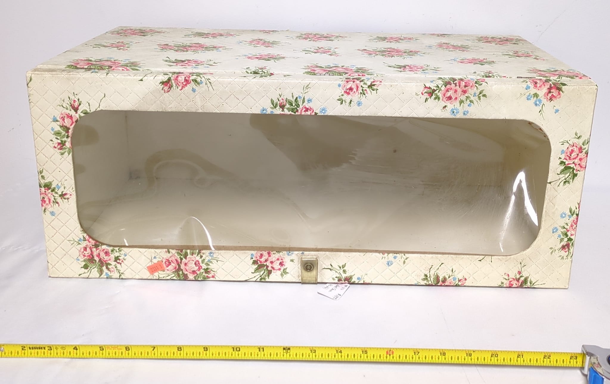 2331 Hat box with plastic viewing window, vinyl & cardboard approximately 25" w