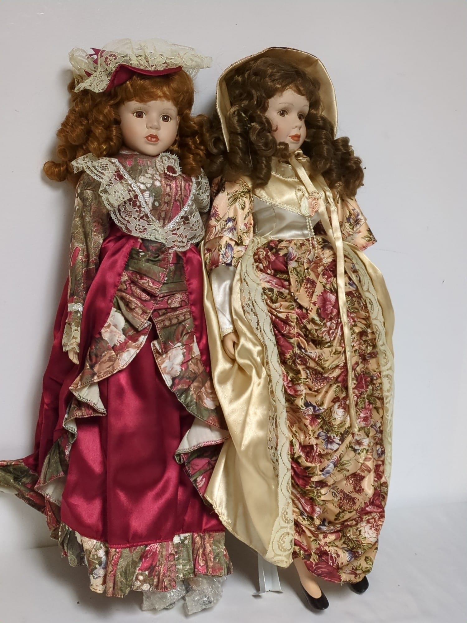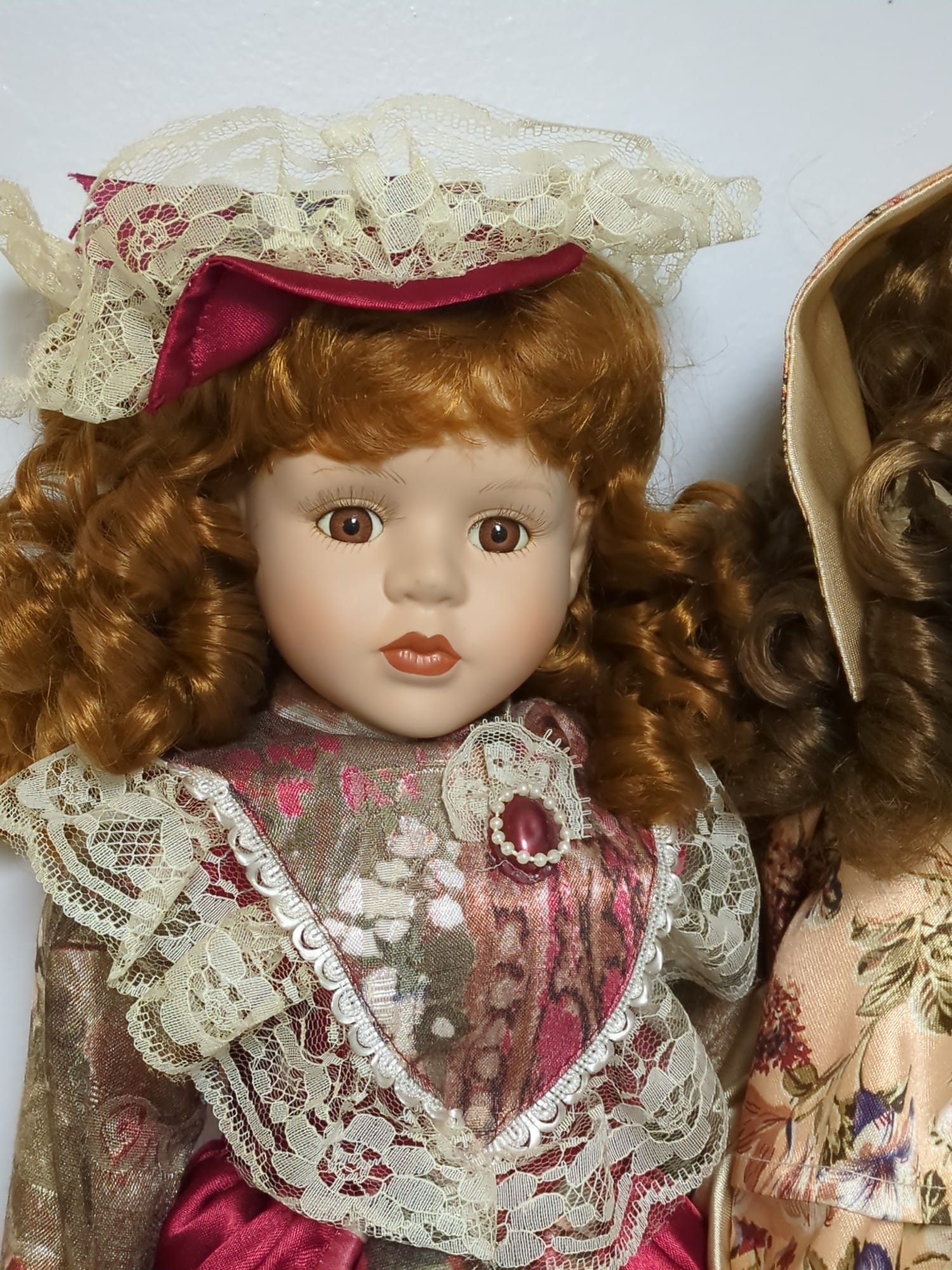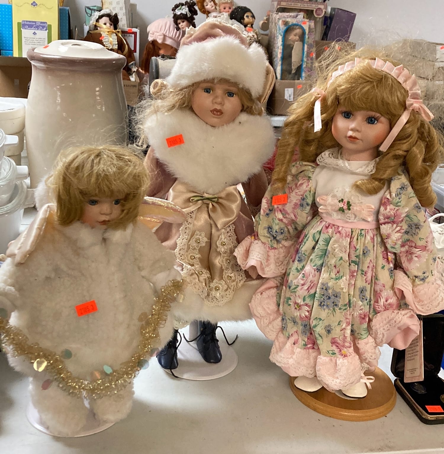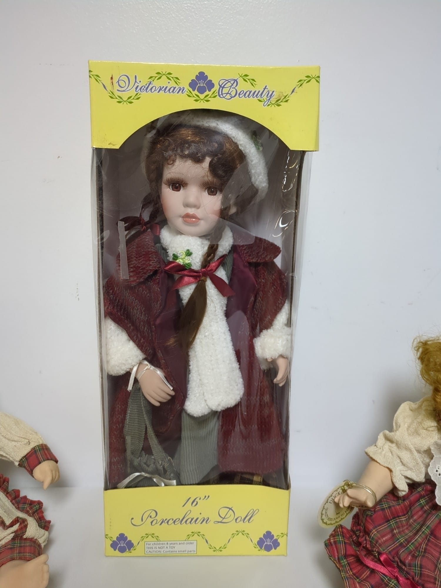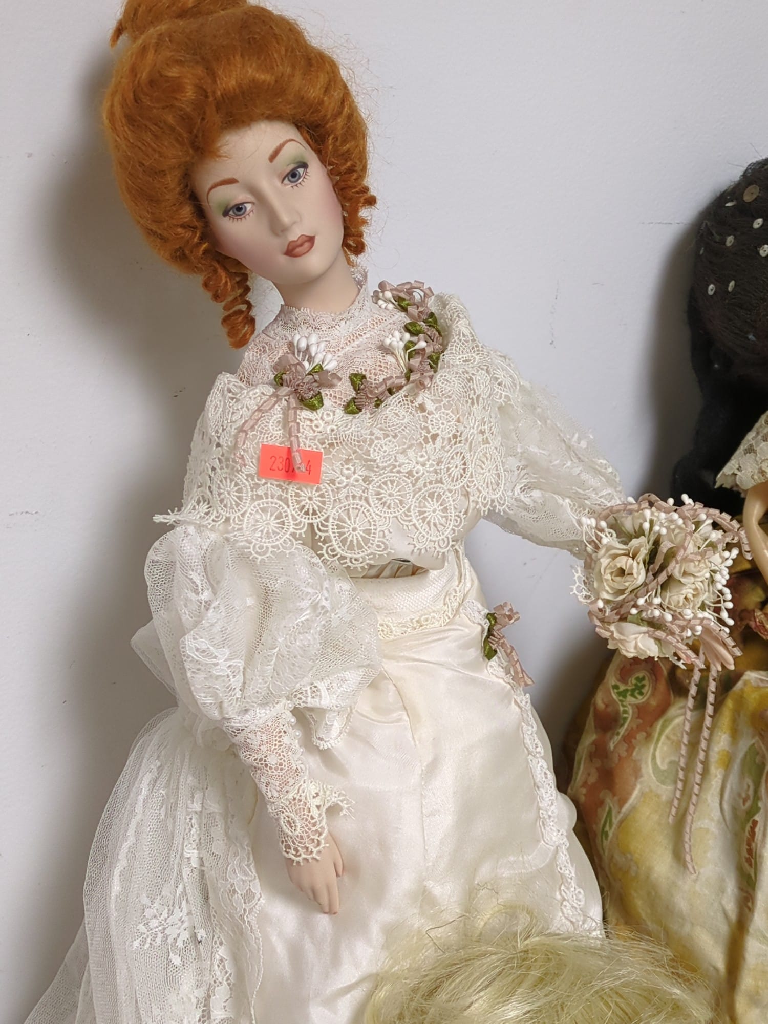 2302 3 Porcelain doll assortment inc. Victorian Beauty 16"