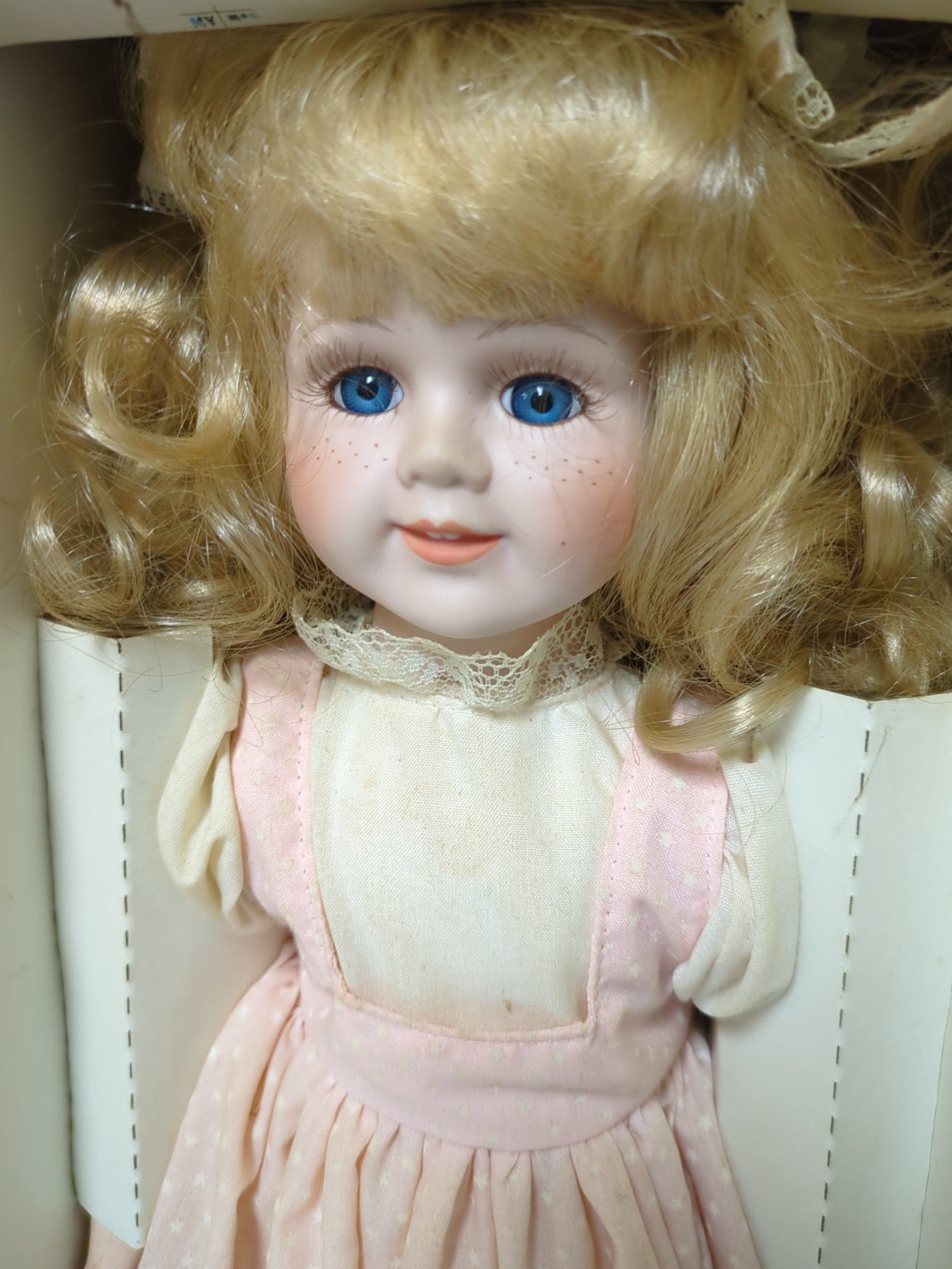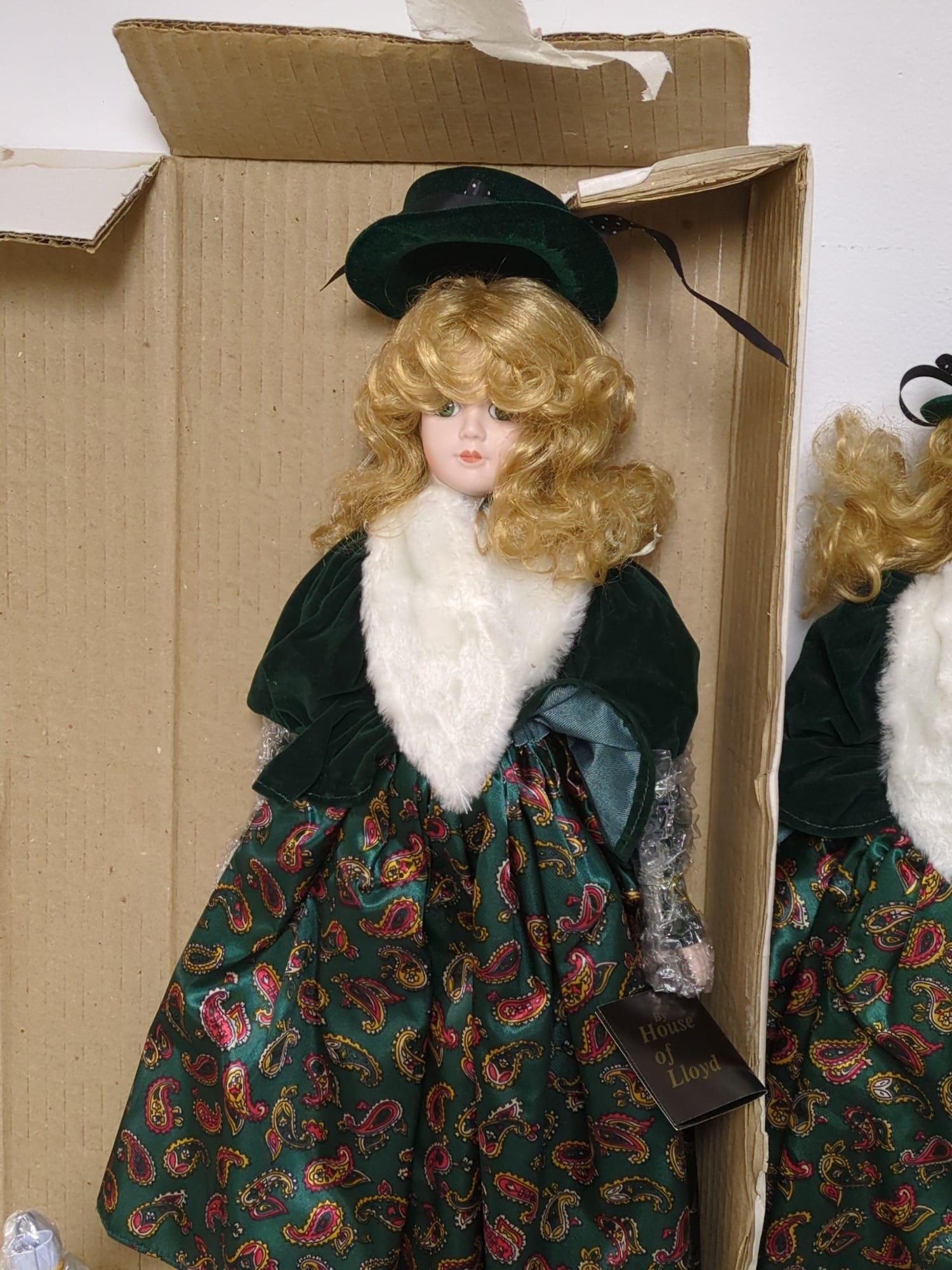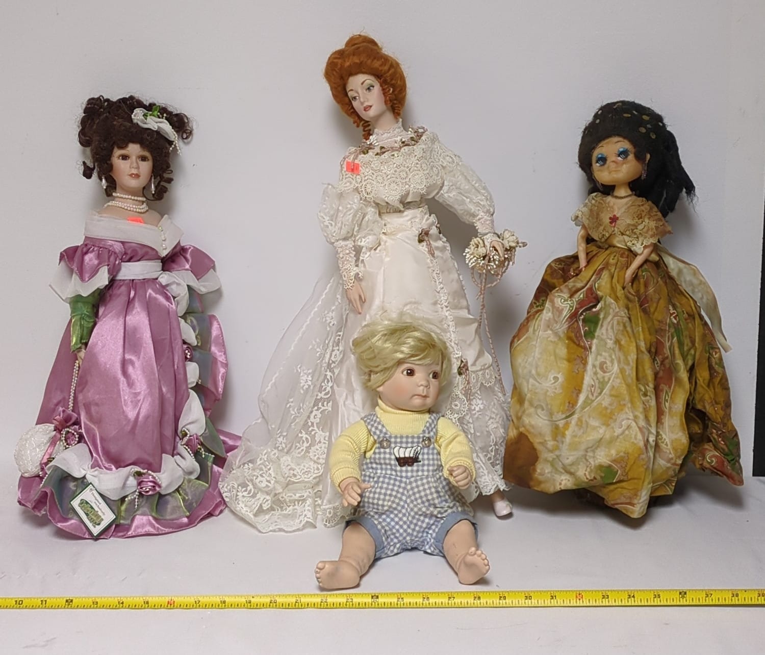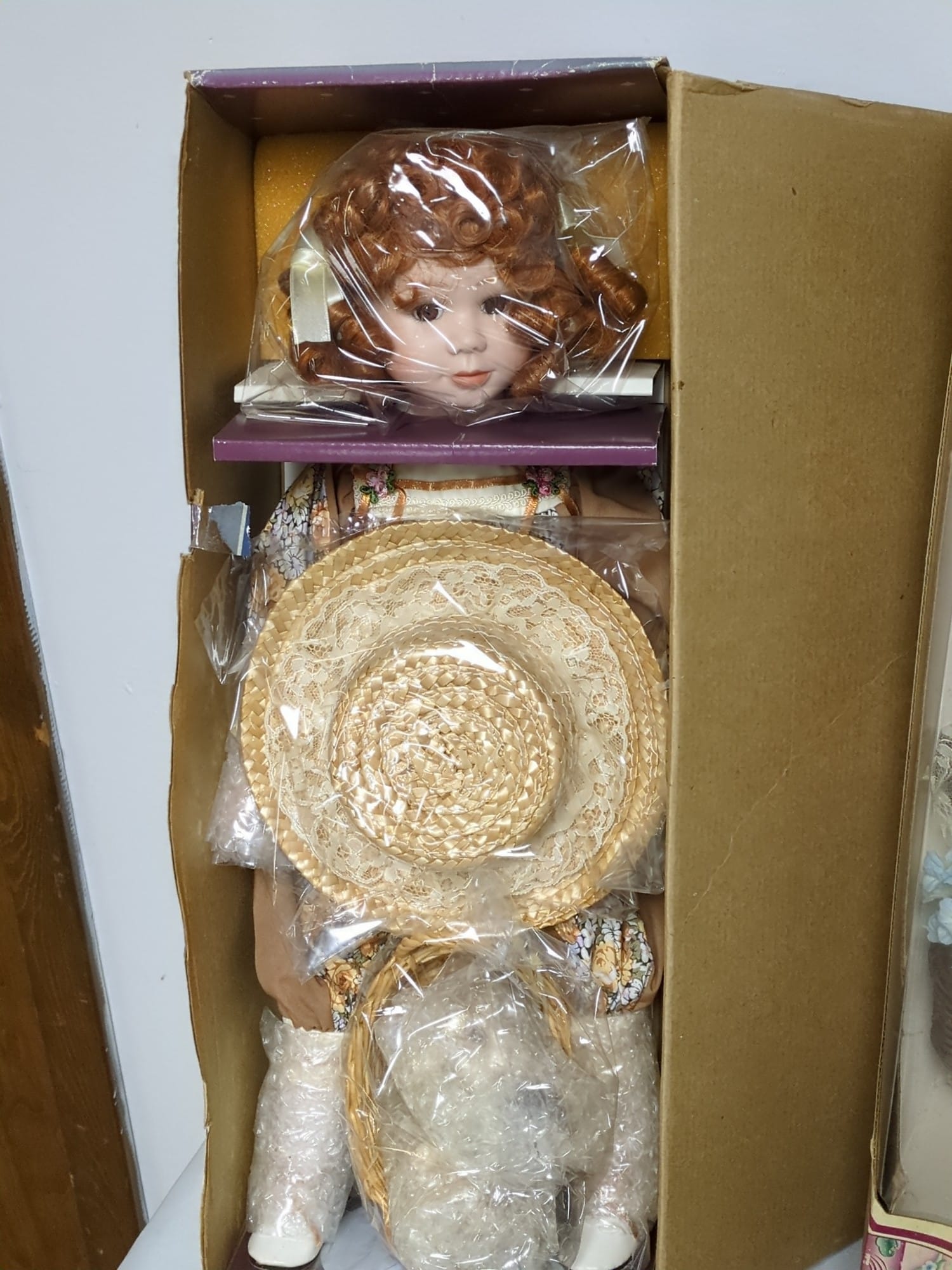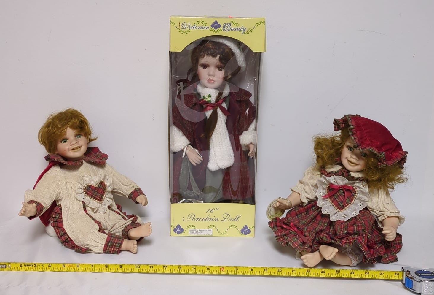 2302 3 Porcelain doll assortment inc. Victorian Beauty 16"
