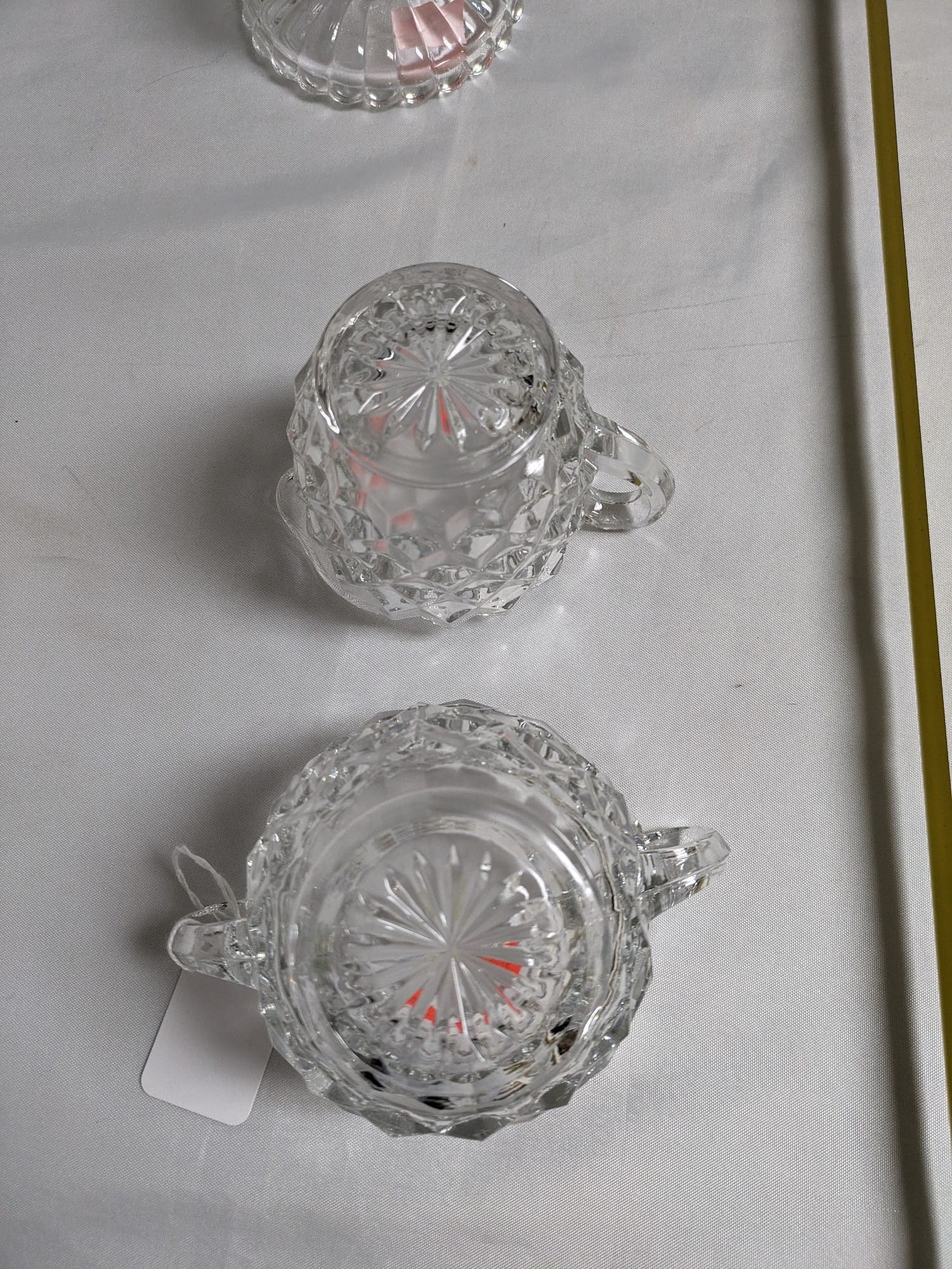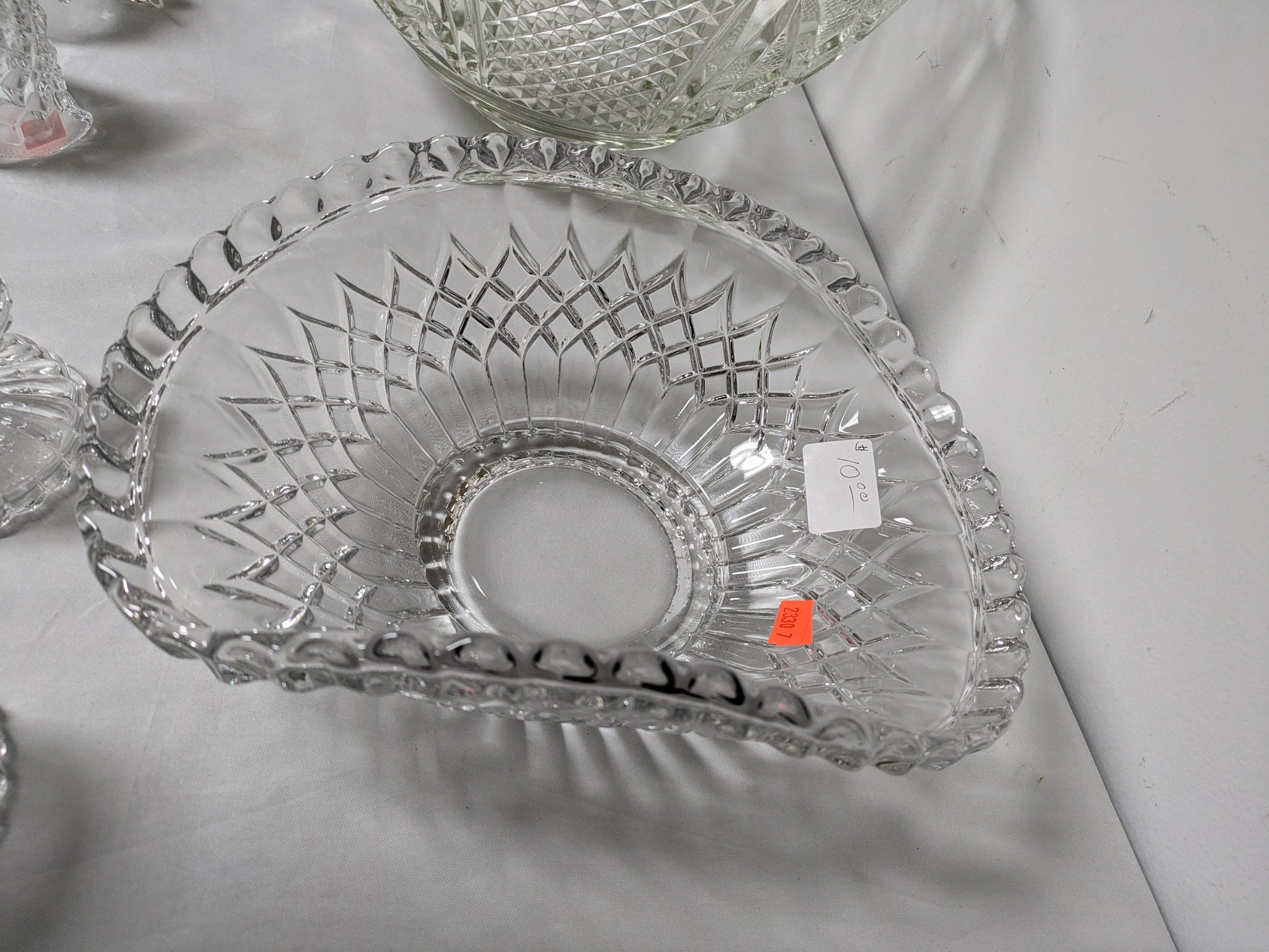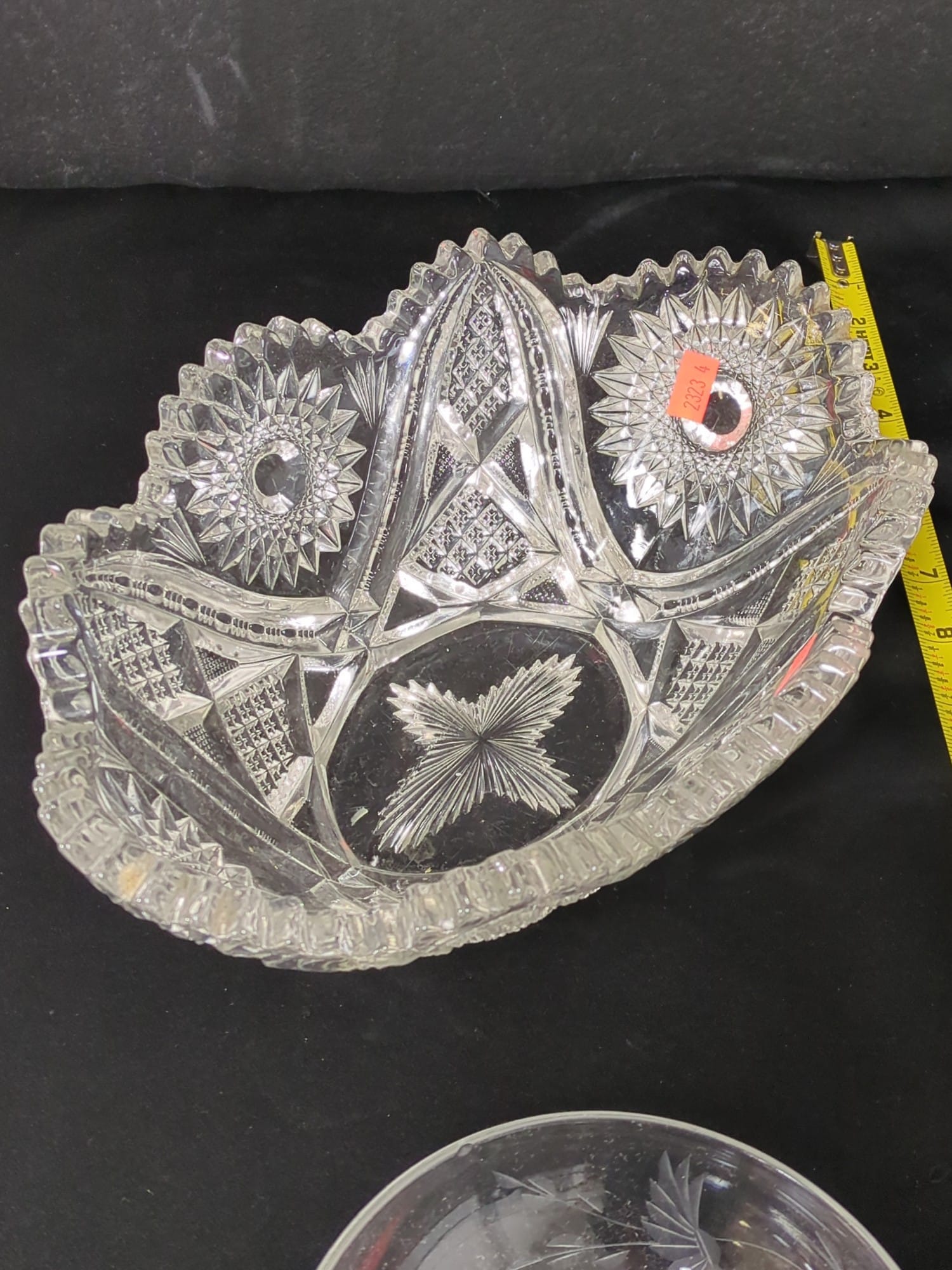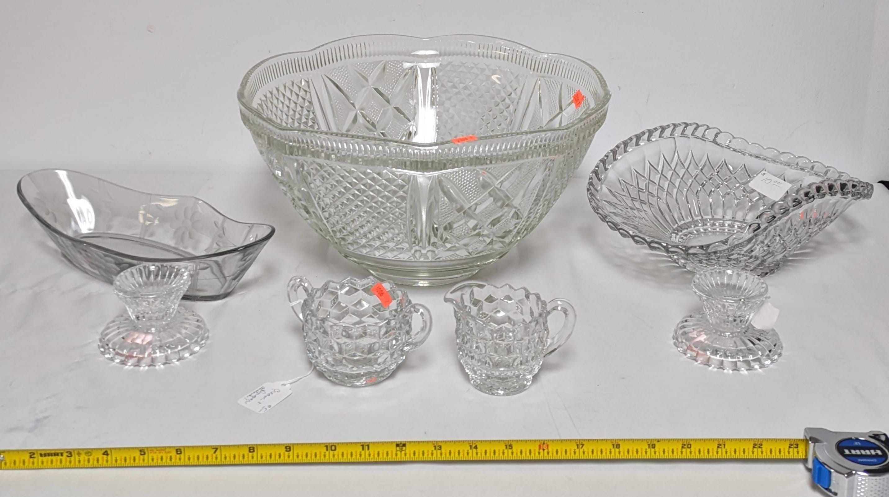 2330 Cut Glass bowls, cream & Sugar, Candlestick holder assortment assorted sizes