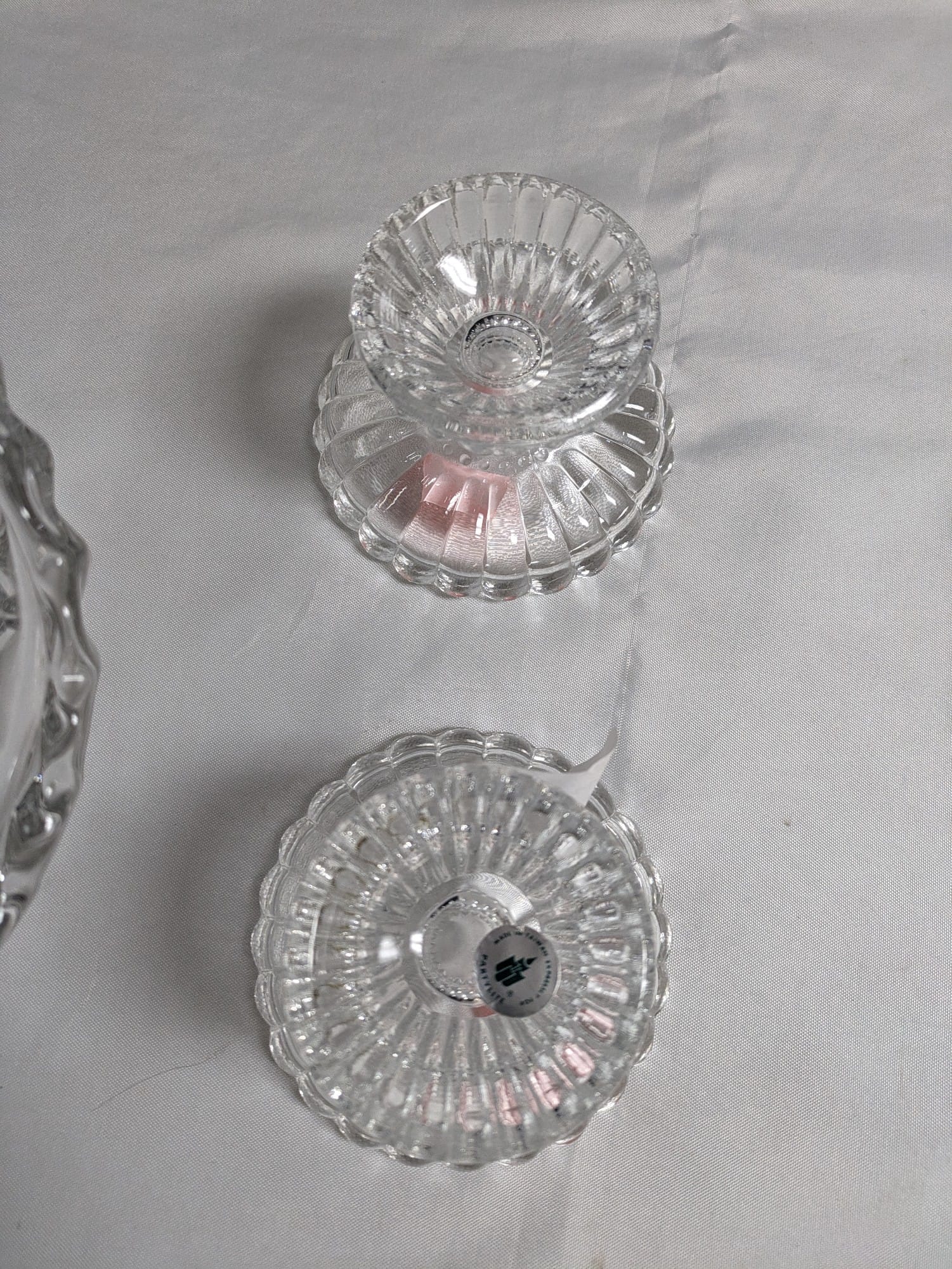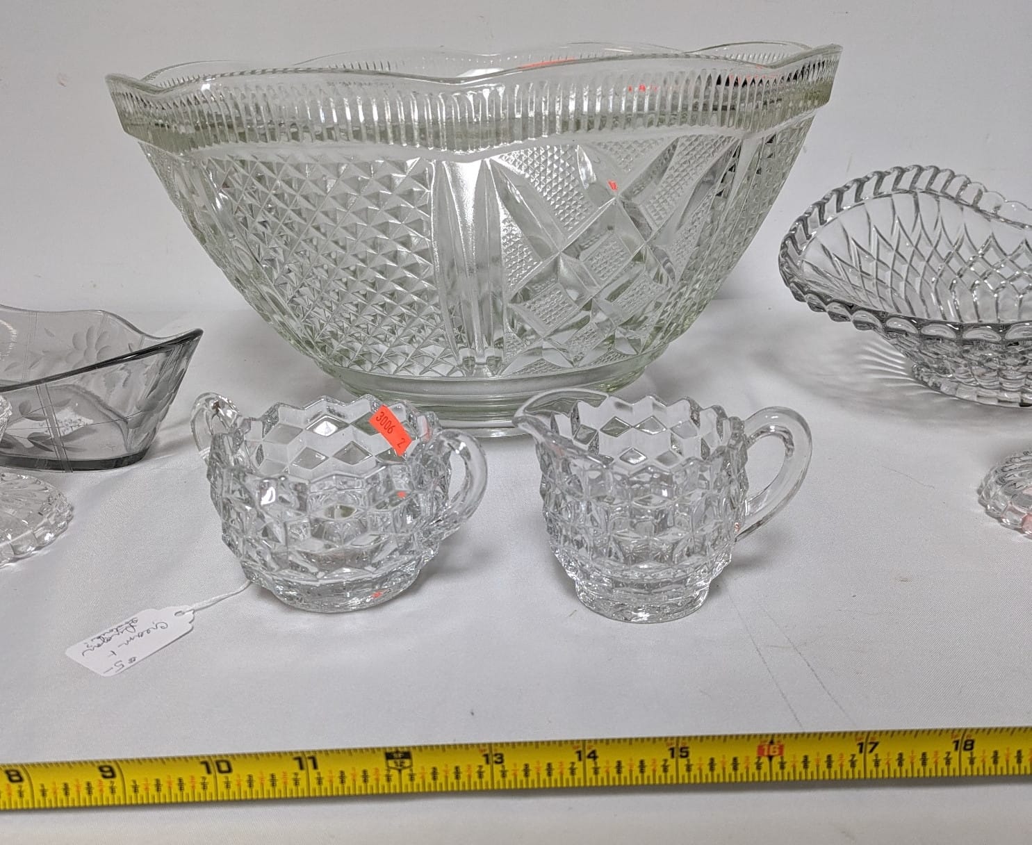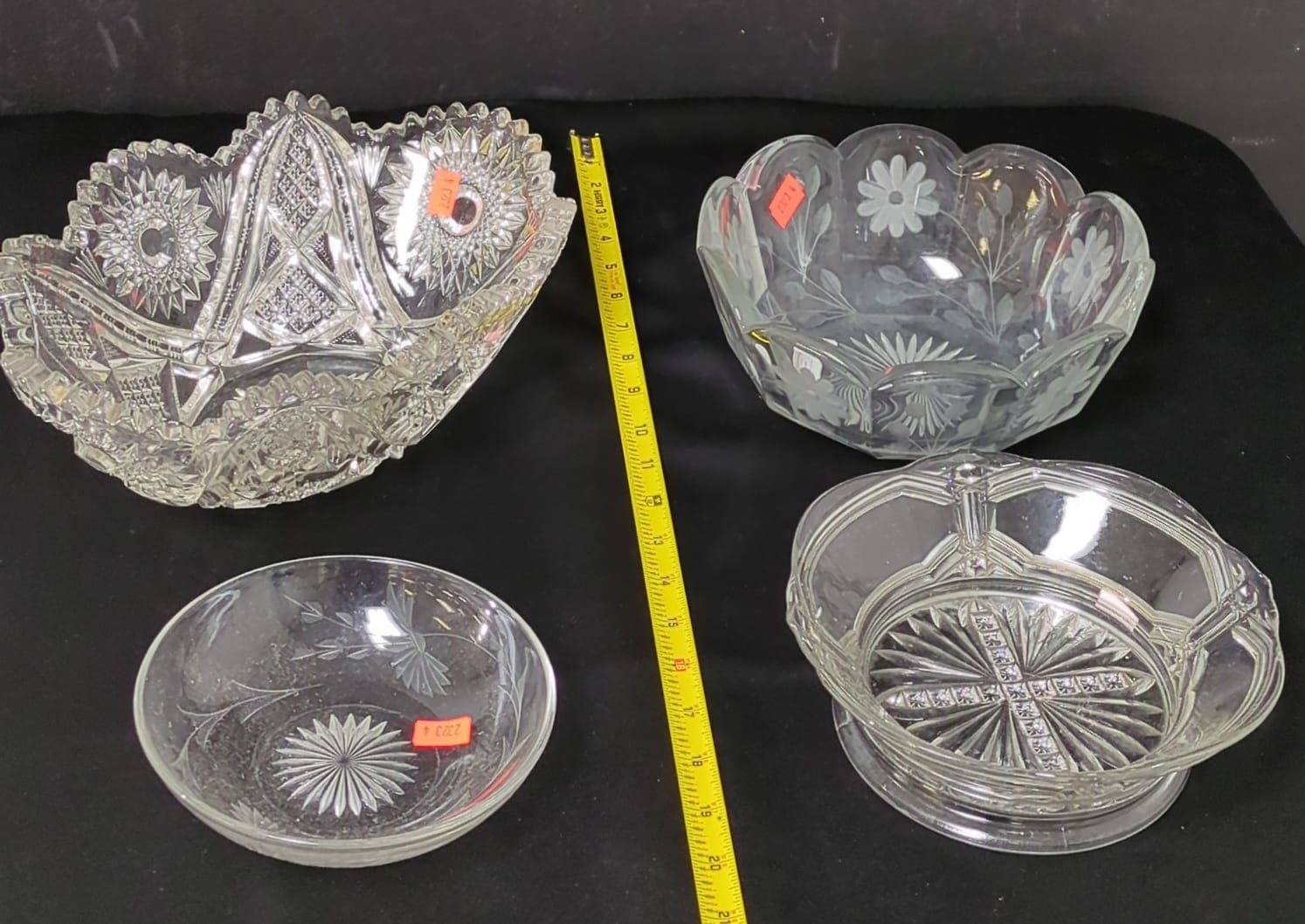 2330 Cut Glass bowls, cream & Sugar, Candlestick holder assortment assorted sizes