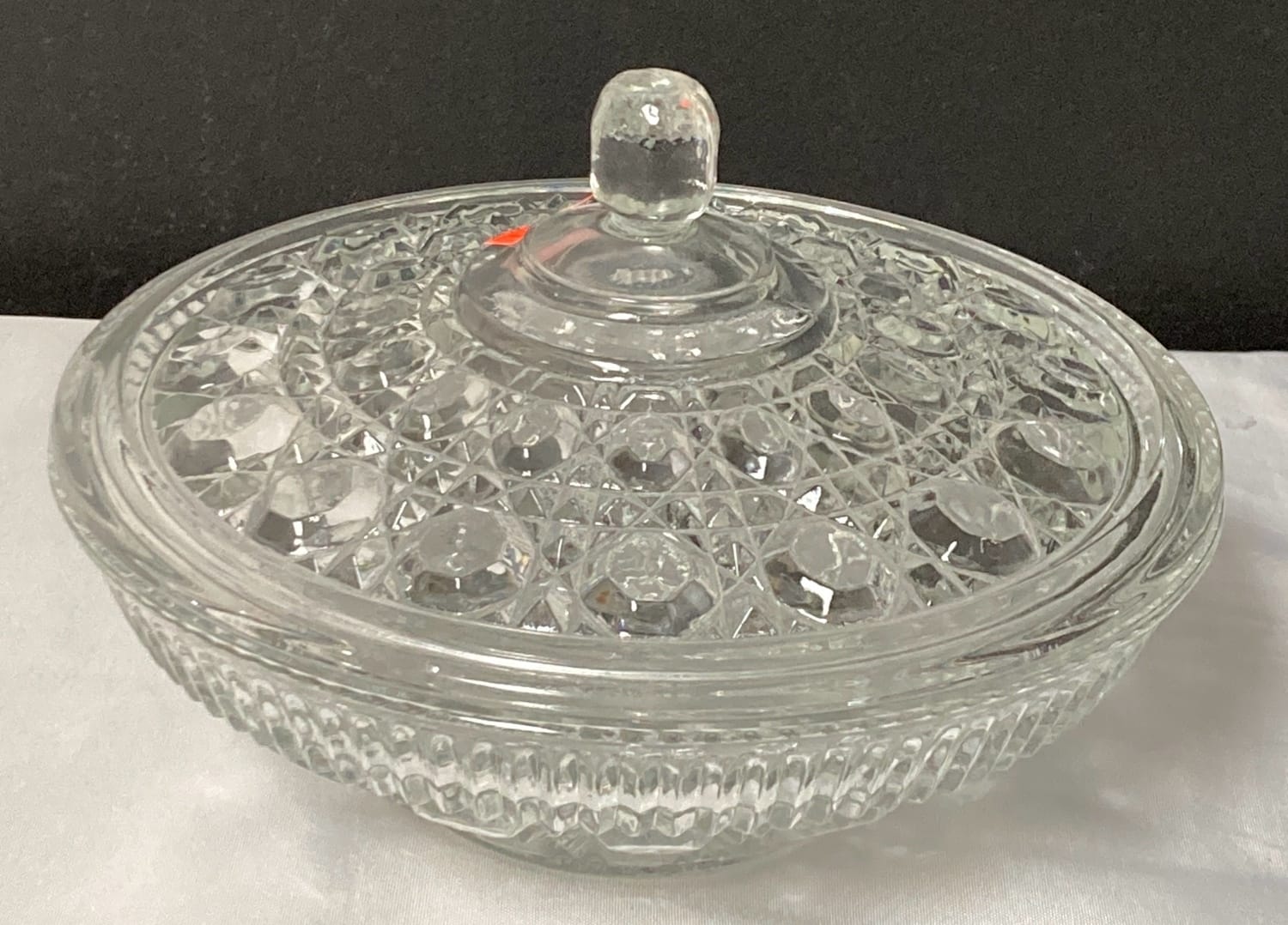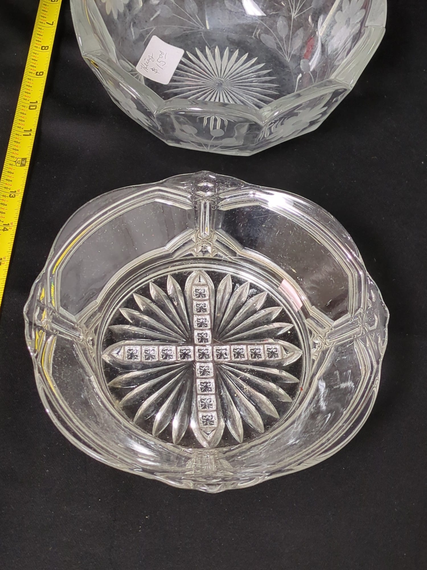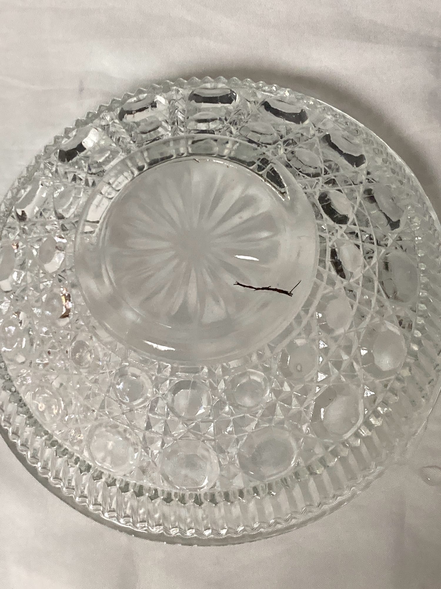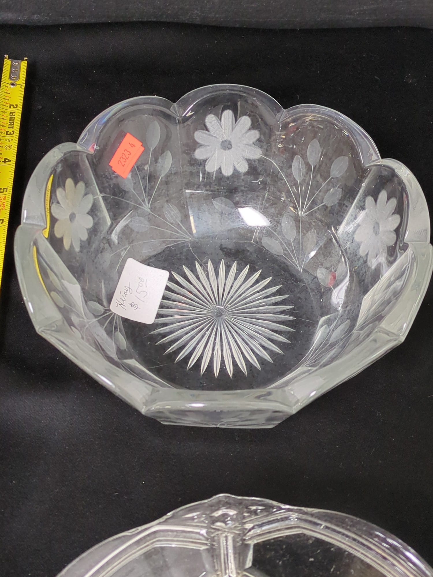 2330 Cut Glass bowls, cream & Sugar, Candlestick holder assortment assorted sizes
