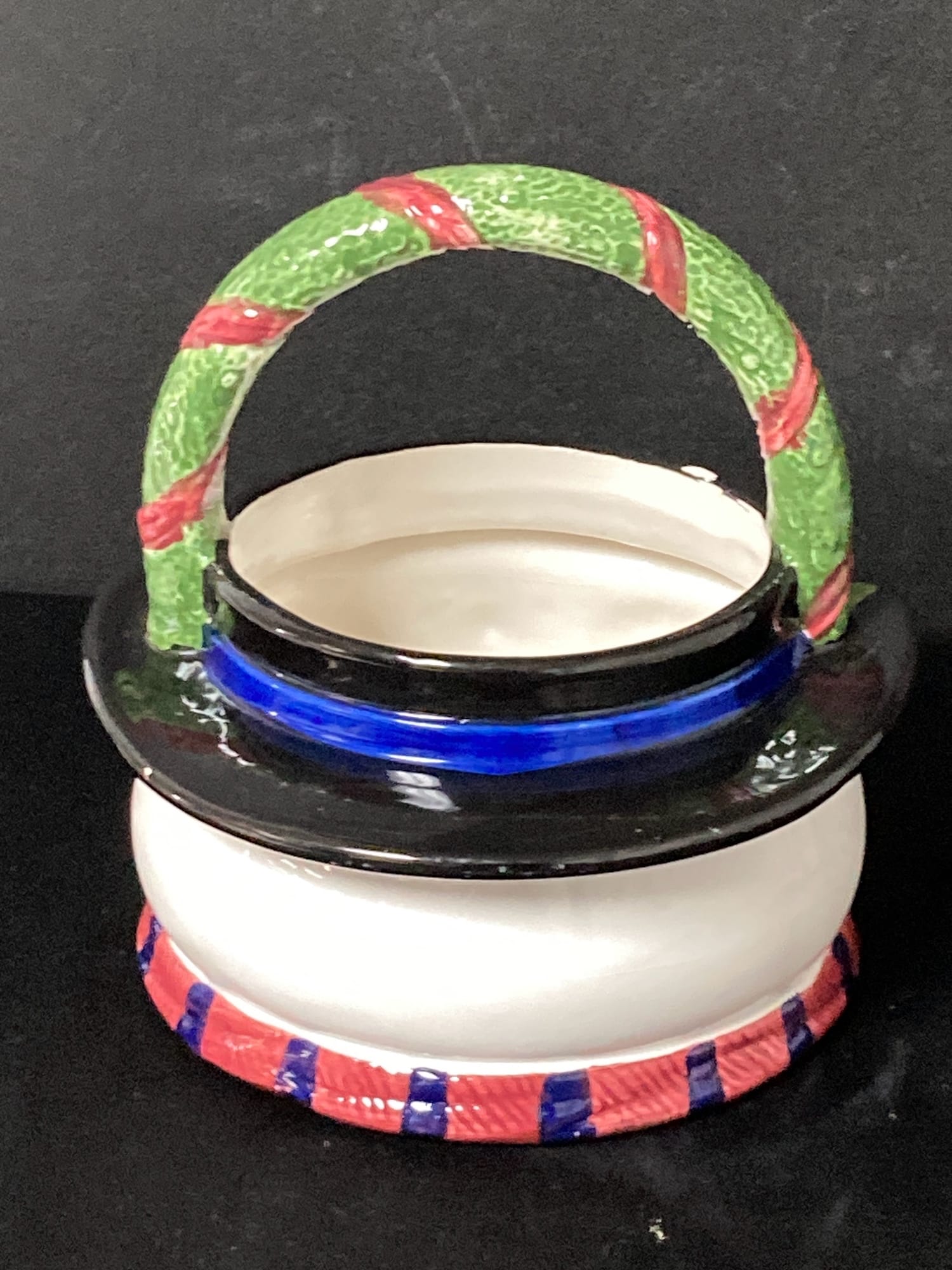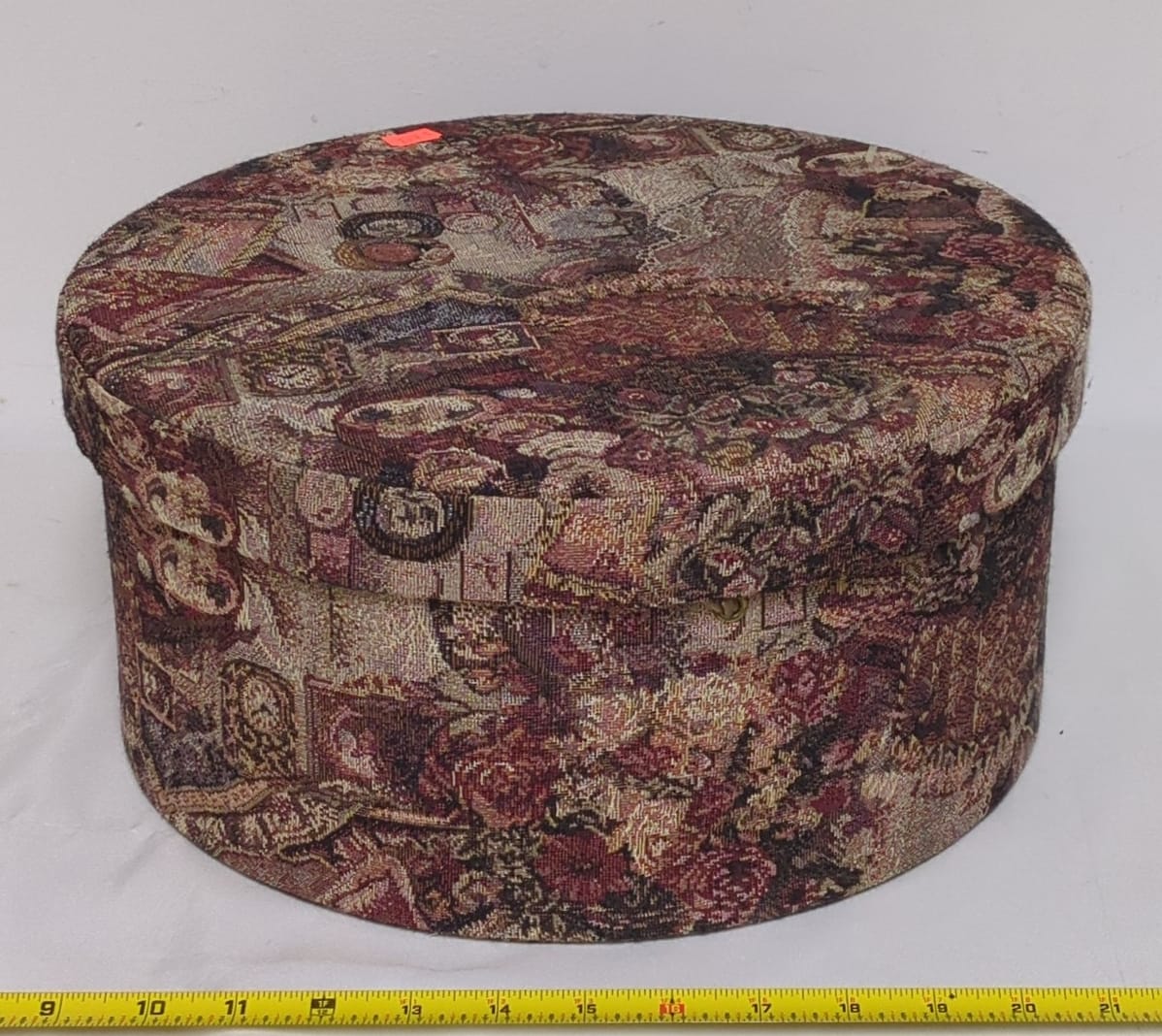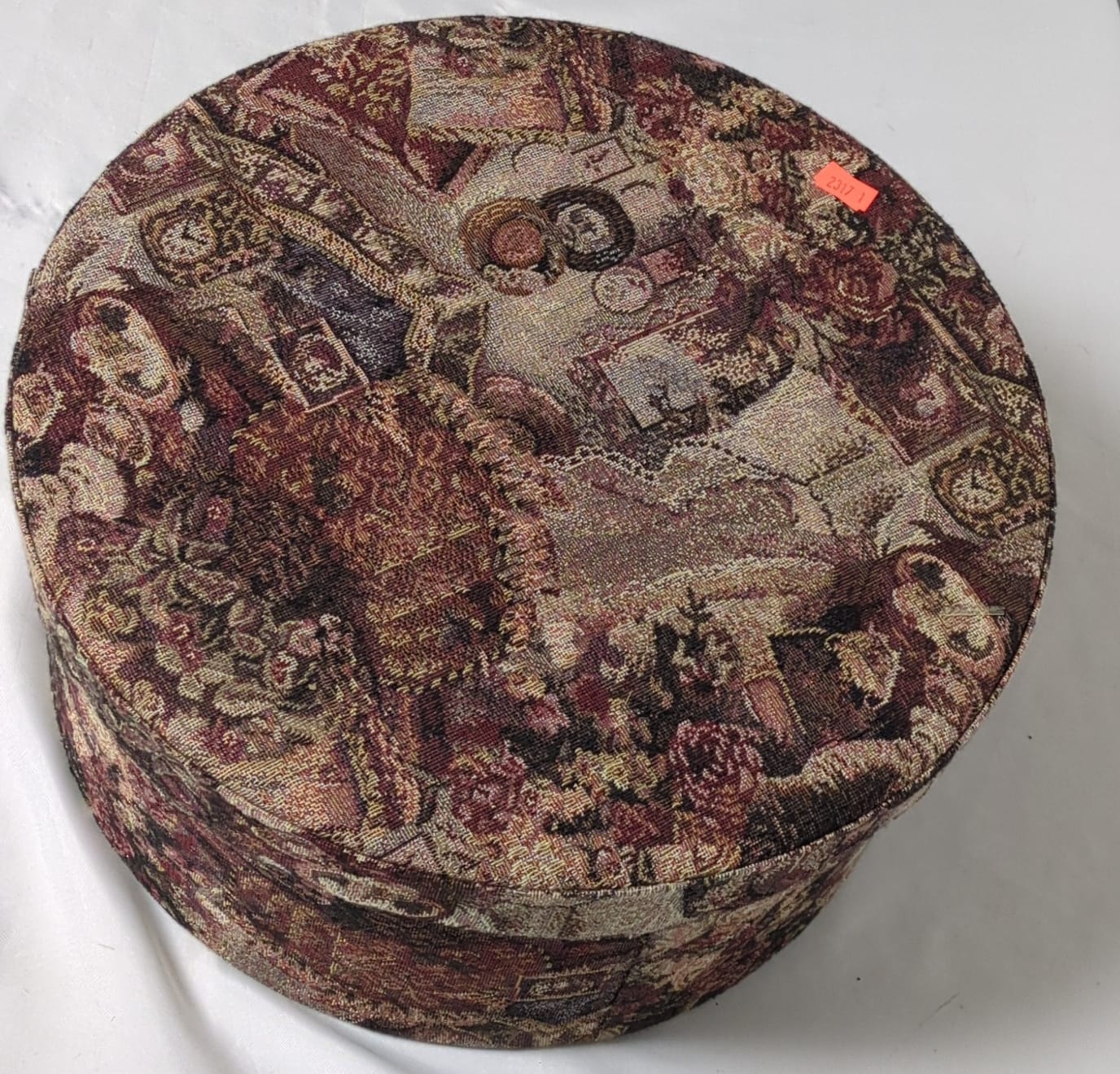 2317 Upholstered Hat box approximately 13" across & 6" tall