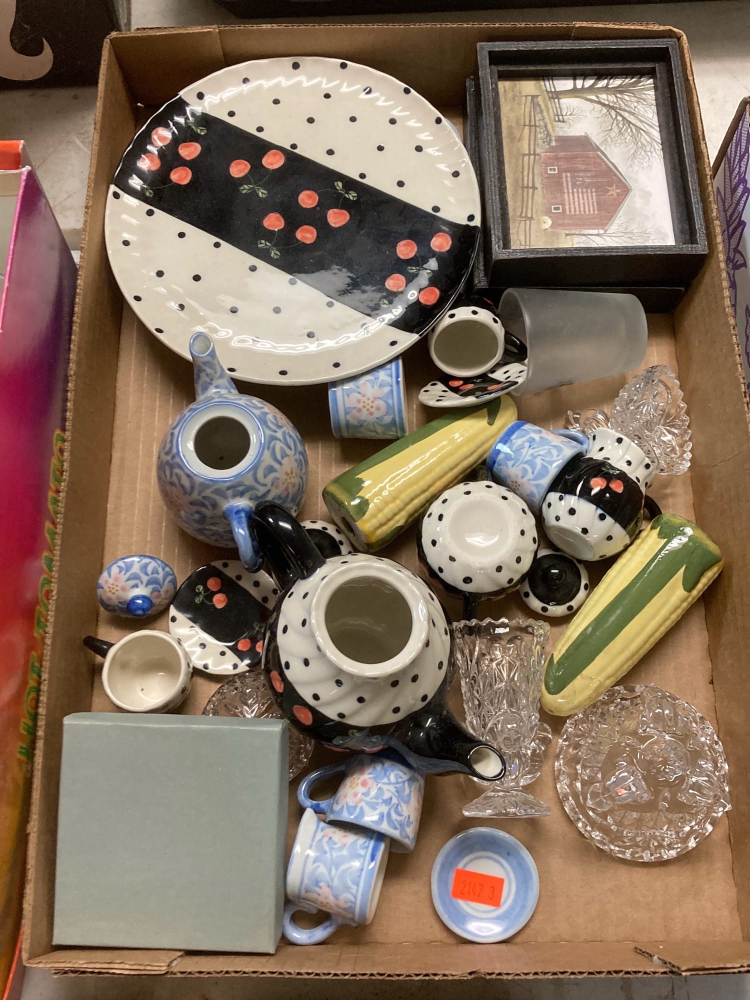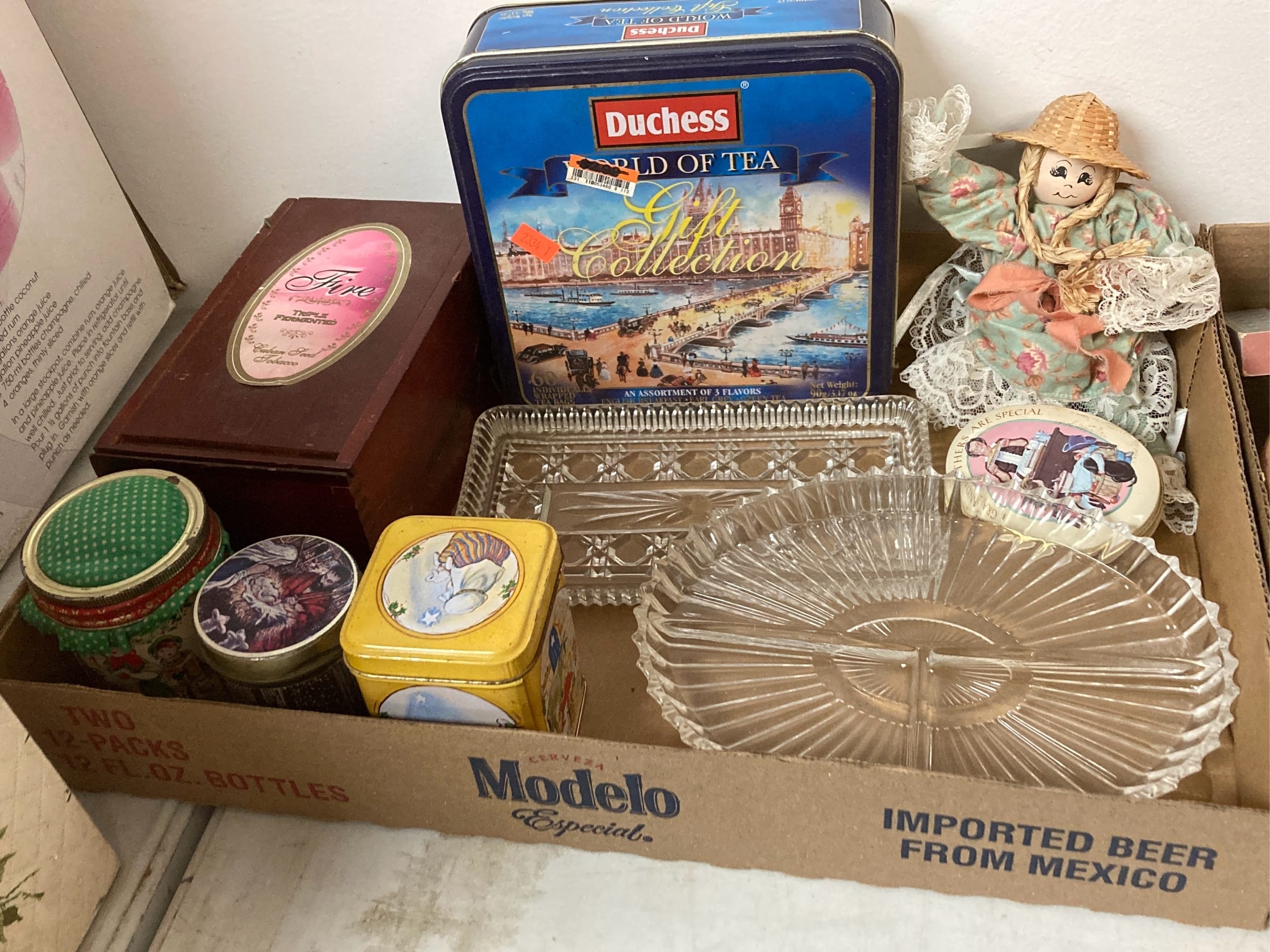 2334 Duchess World of Tea tin, Tobacco Box, tins, doll and glassware assortment