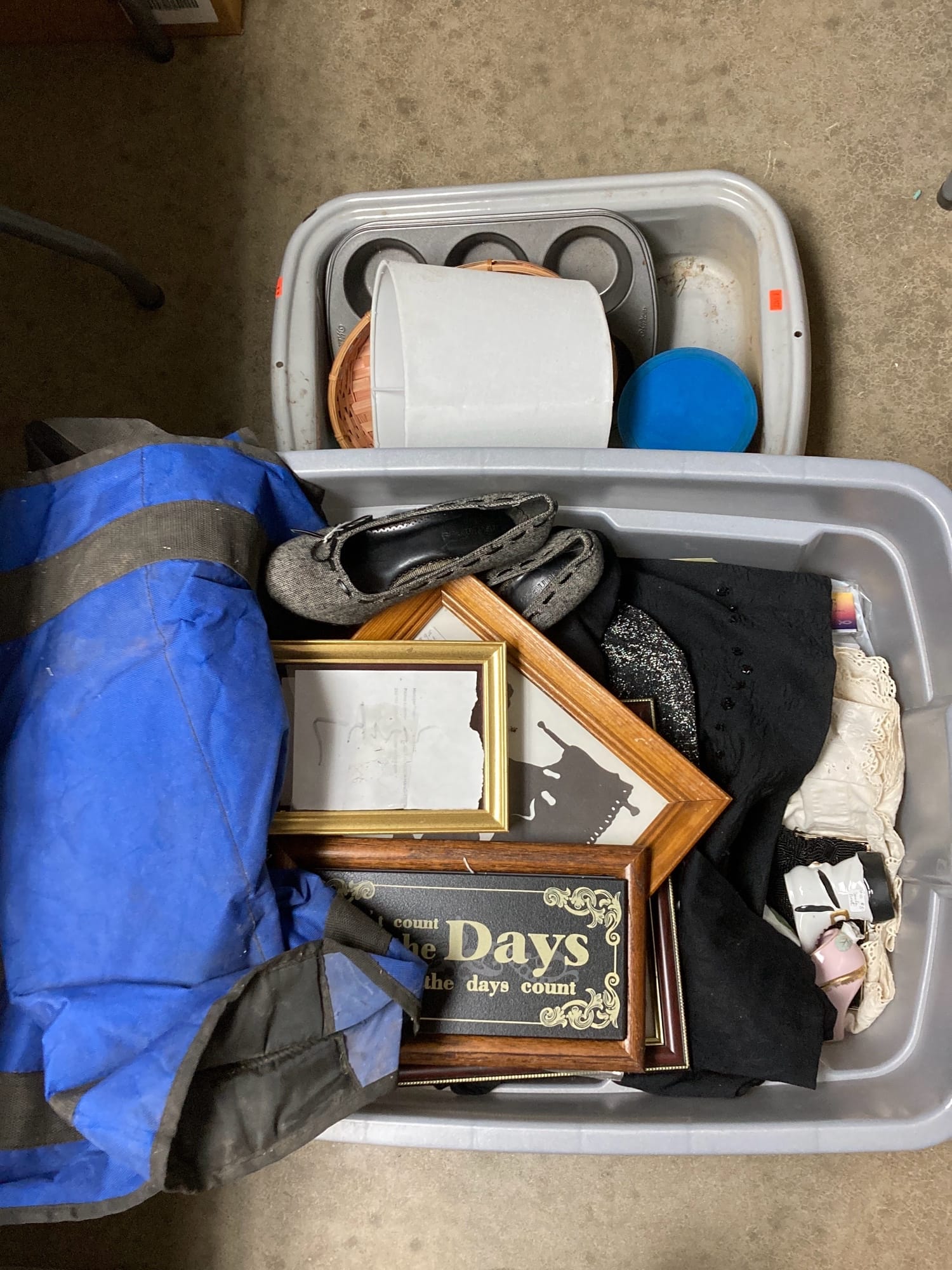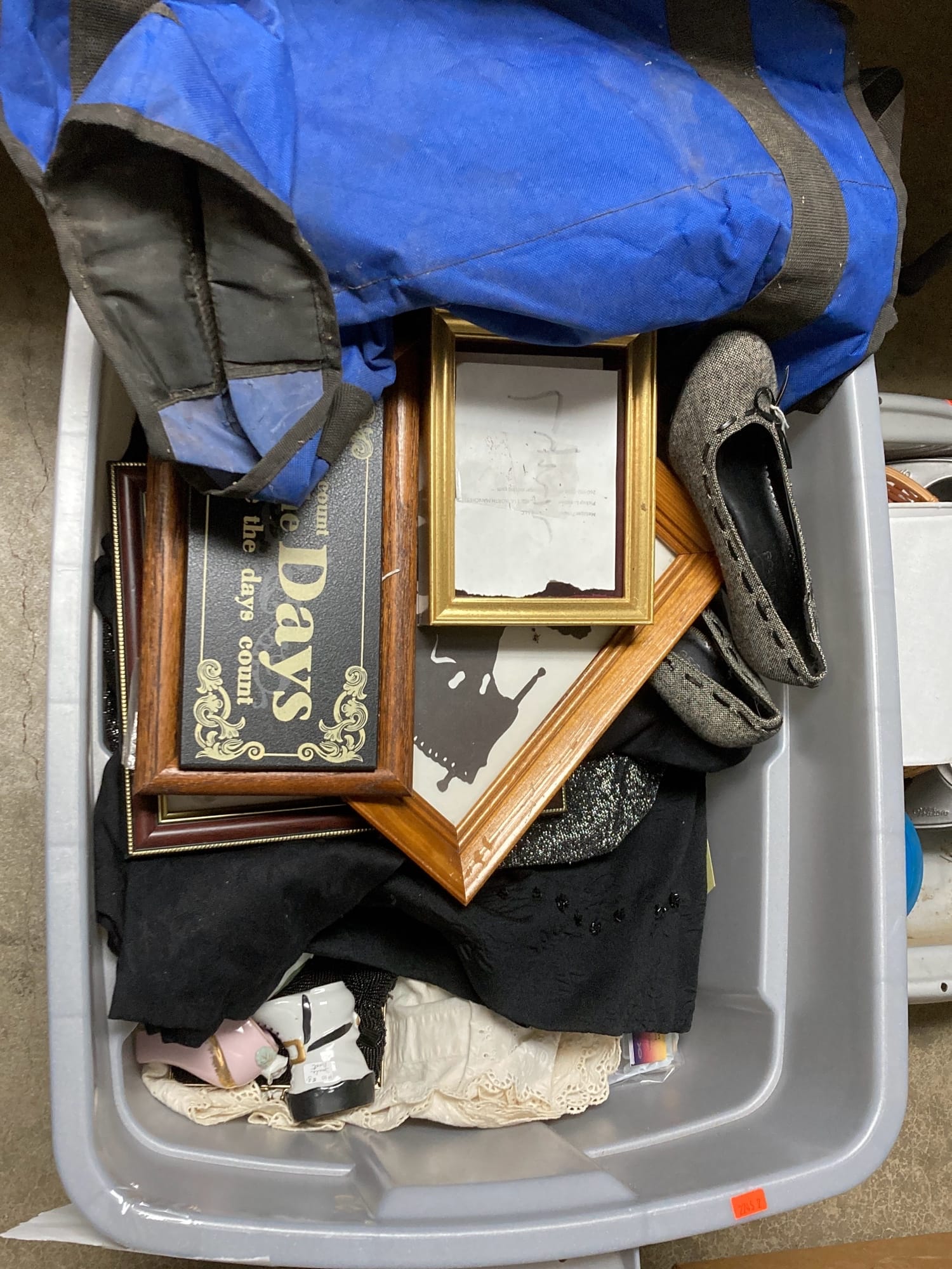 2245 Picture Frames, Clothing, Lamp Shade, Muffin Tin, Figurines & Household Assortment