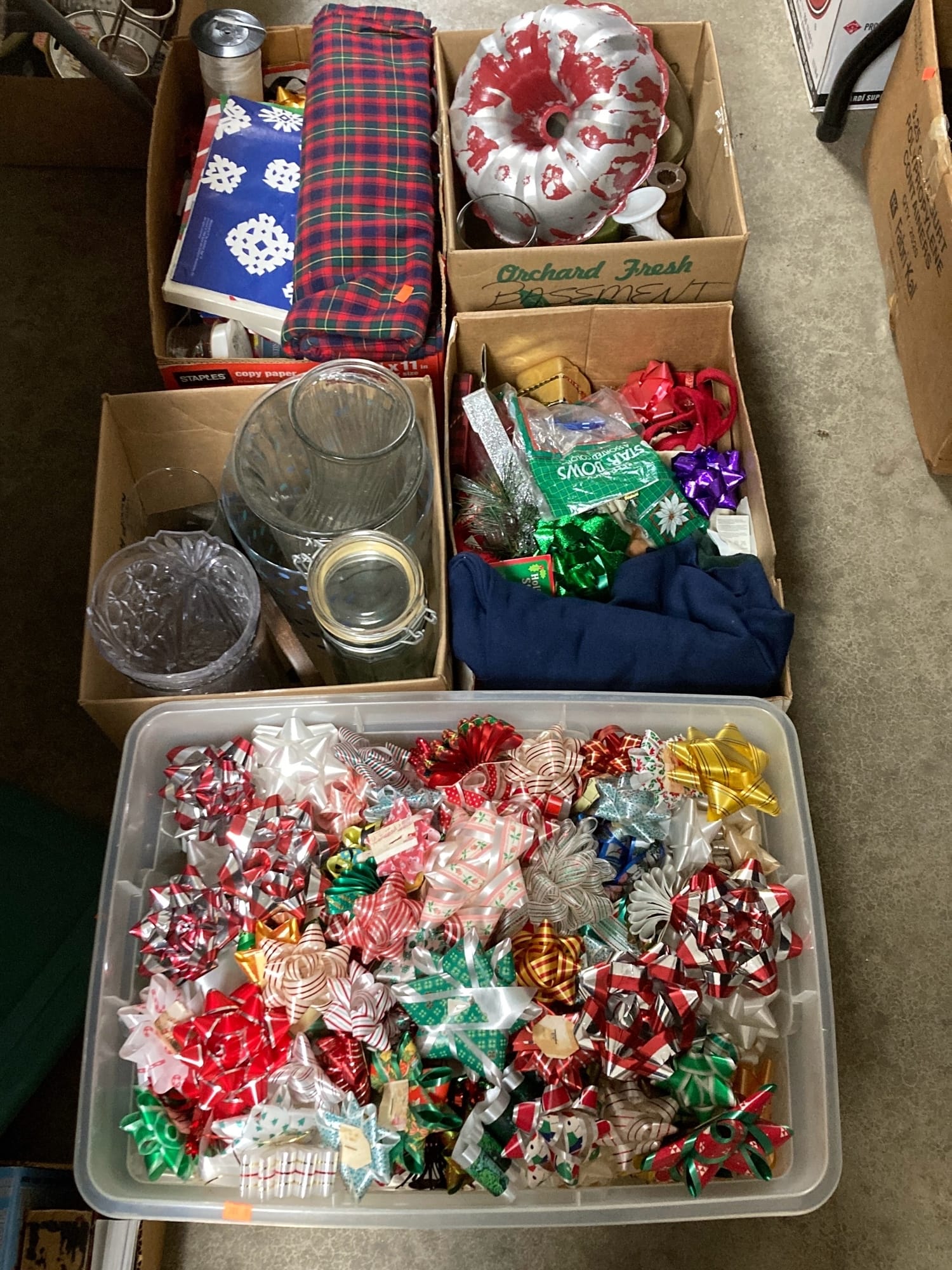 2247 Holiday Bows, Vases, Bundt Pan, Craft Supplies, Blanket & Household Assortment