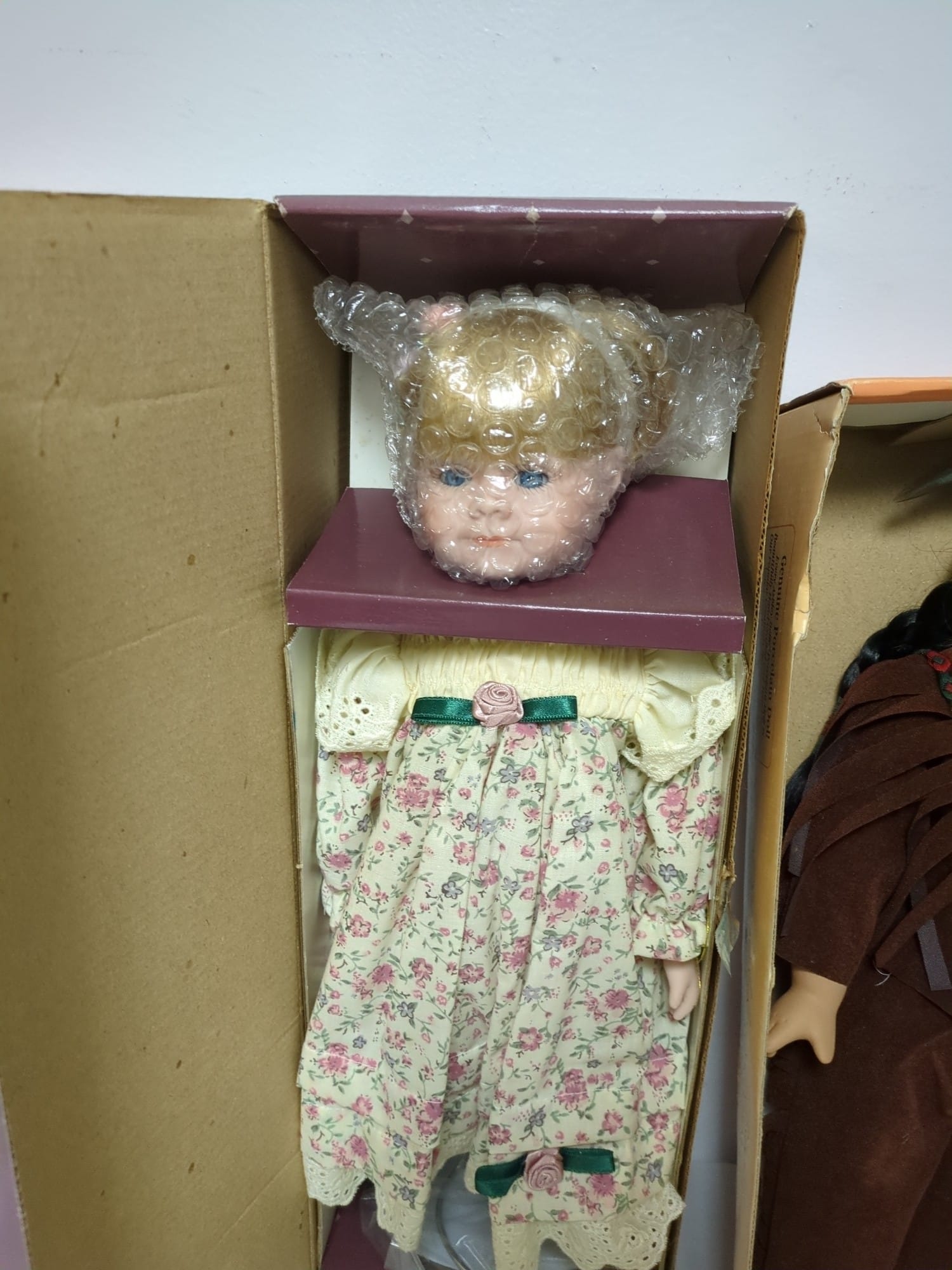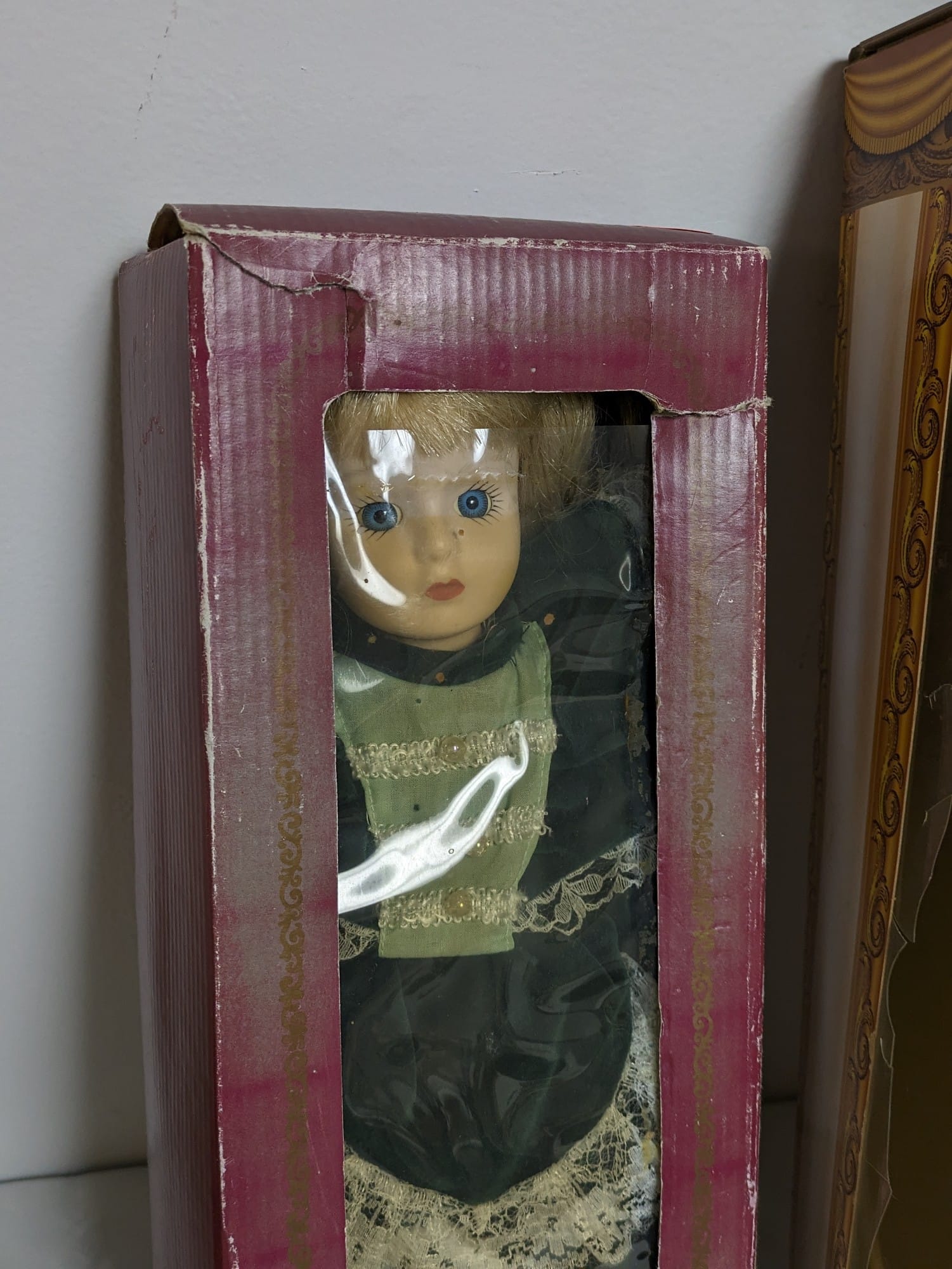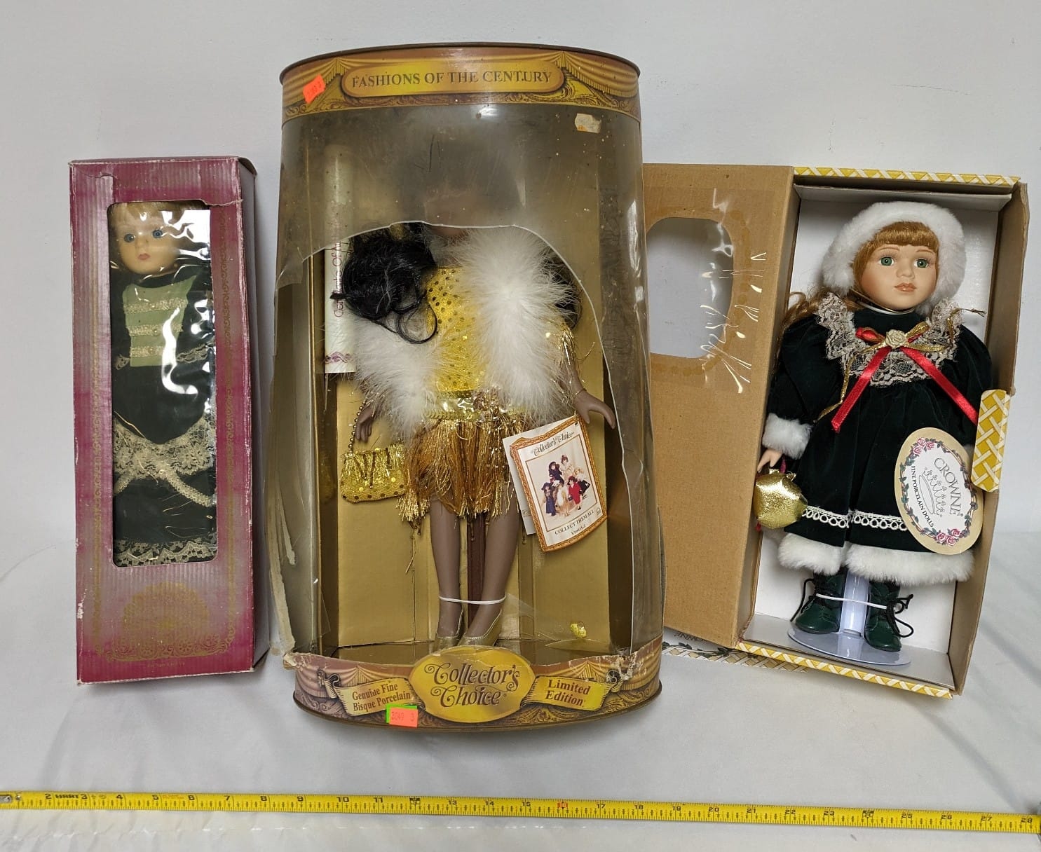 2303 3 Porcelain doll assortment inc. Fashions of the Century, Crowne - some box damage