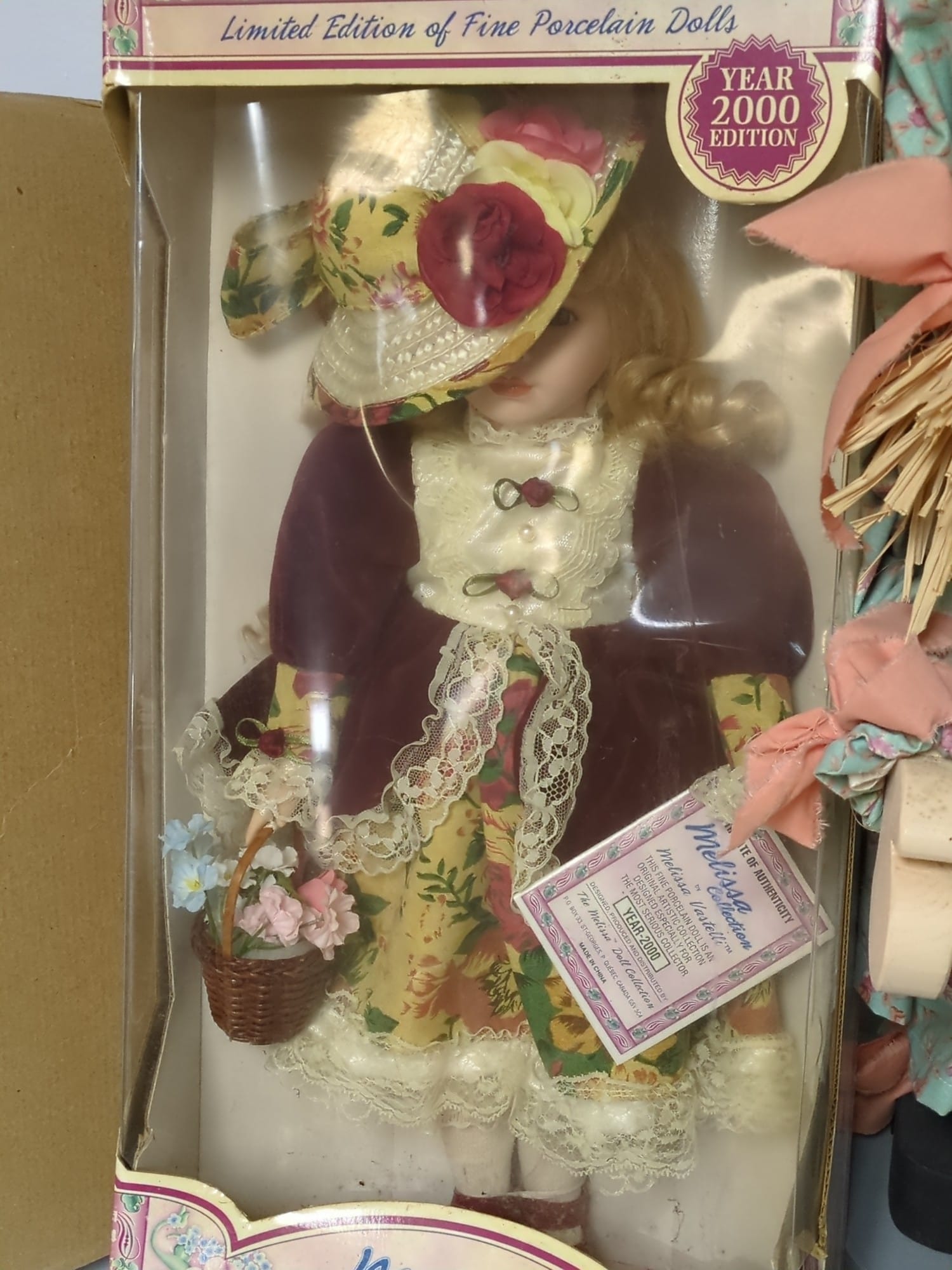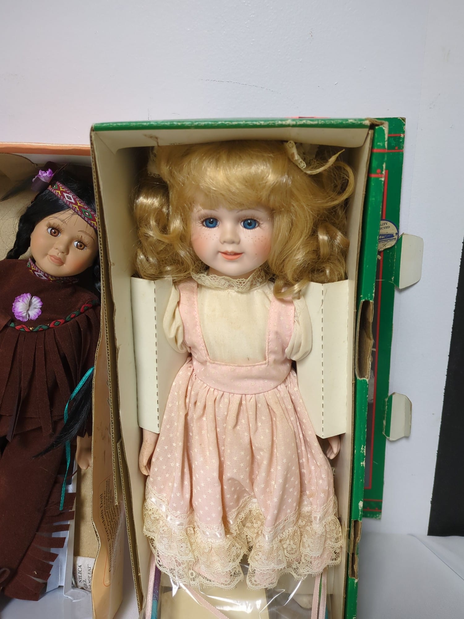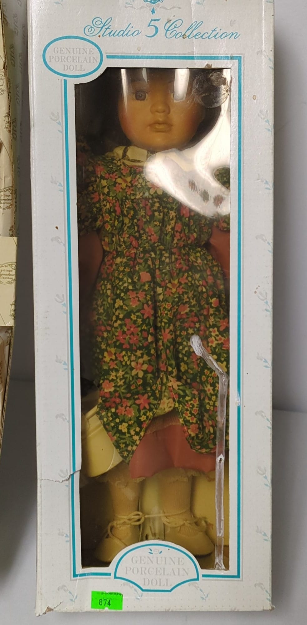 2303 3 Porcelain doll assortment inc. Fashions of the Century, Crowne - some box damage