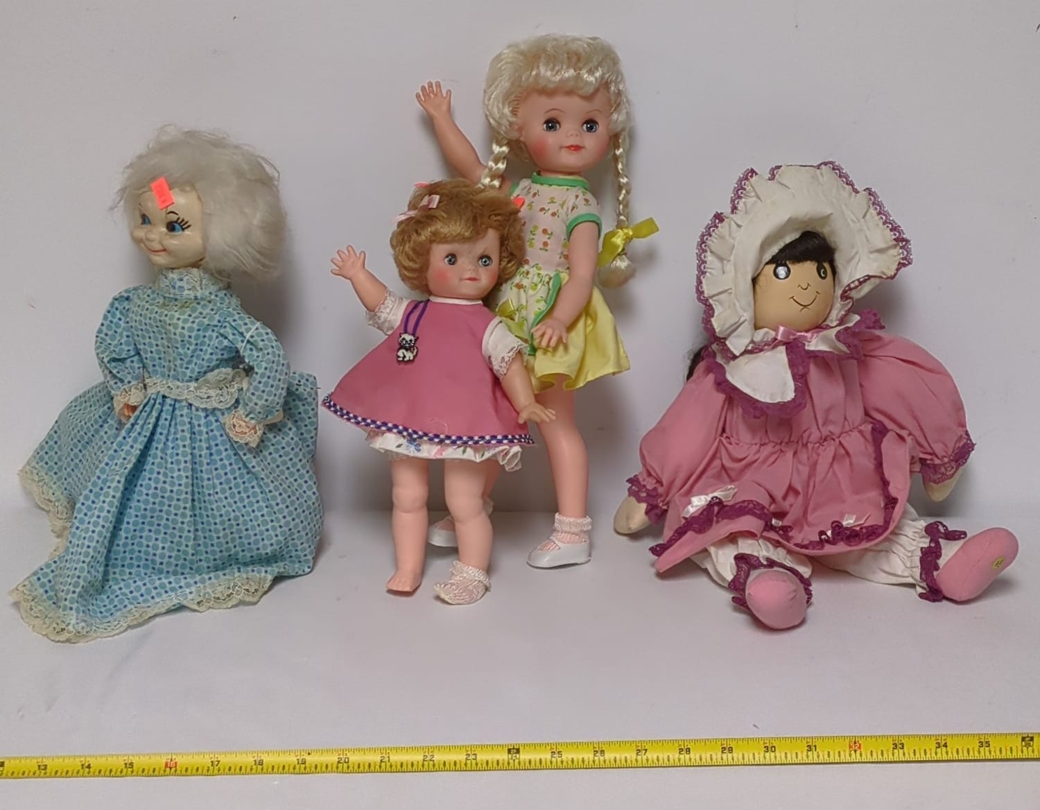 2312 4 House of Lloyd Porcelain dolls - 3 identical approximately 20", Small doll approximately 16"