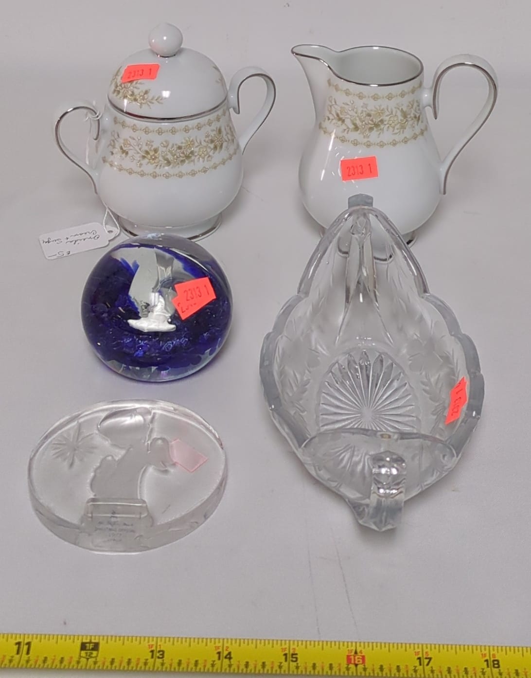 2313 Oneida Cream & Sugar, Gravy Boat, Paperweight