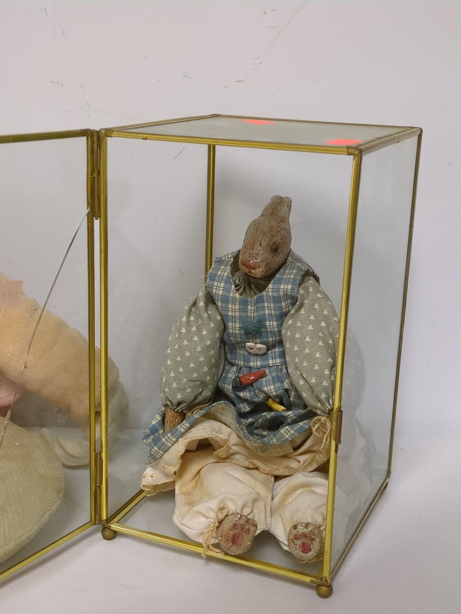 2314 Stuffed Animals, Rabbit Figurine in Broken Glass Display Case
