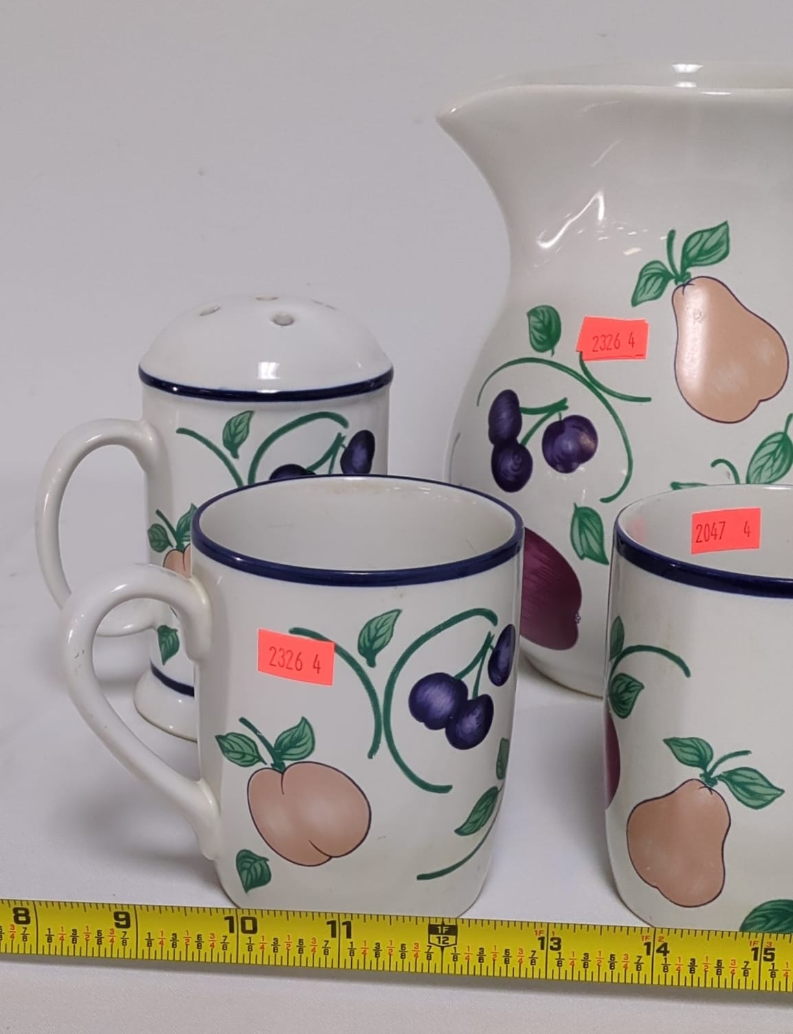 2326 Orchard Medley four piece porcelain set inc. pitcher, cups, shaker
