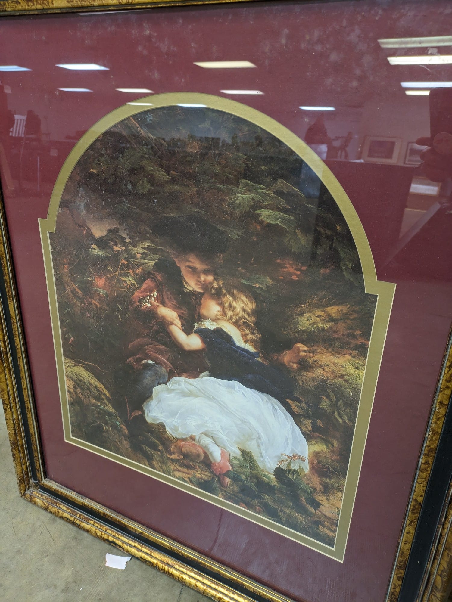 2404 Large framed picture of Children in woods, approximately 35" x 28"