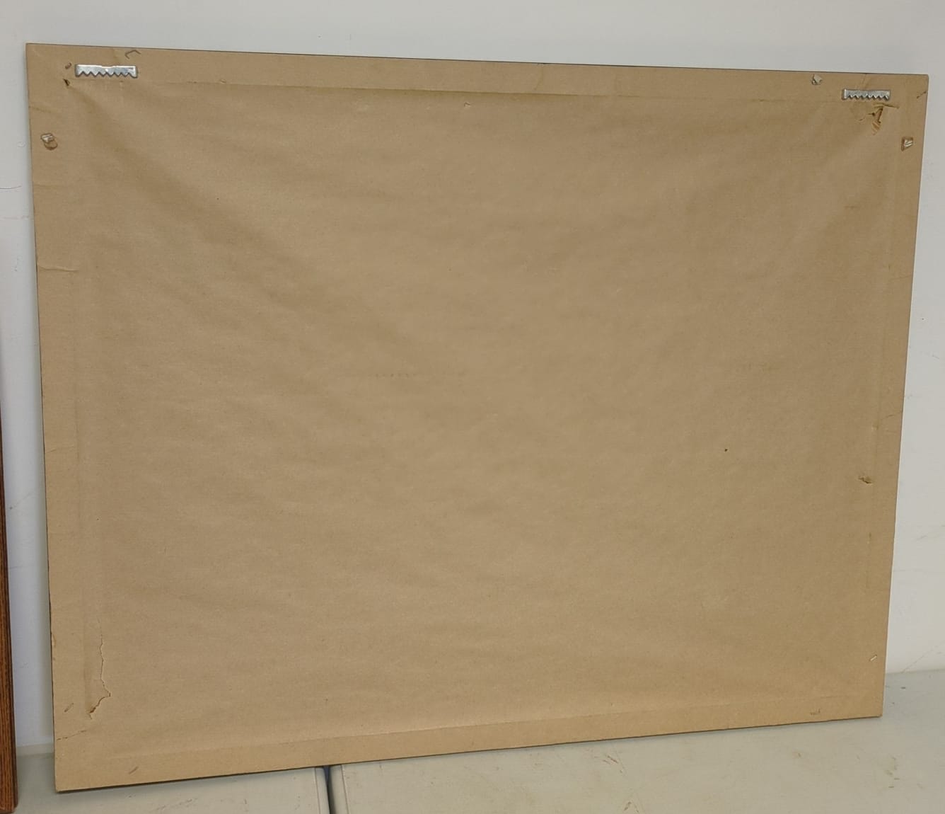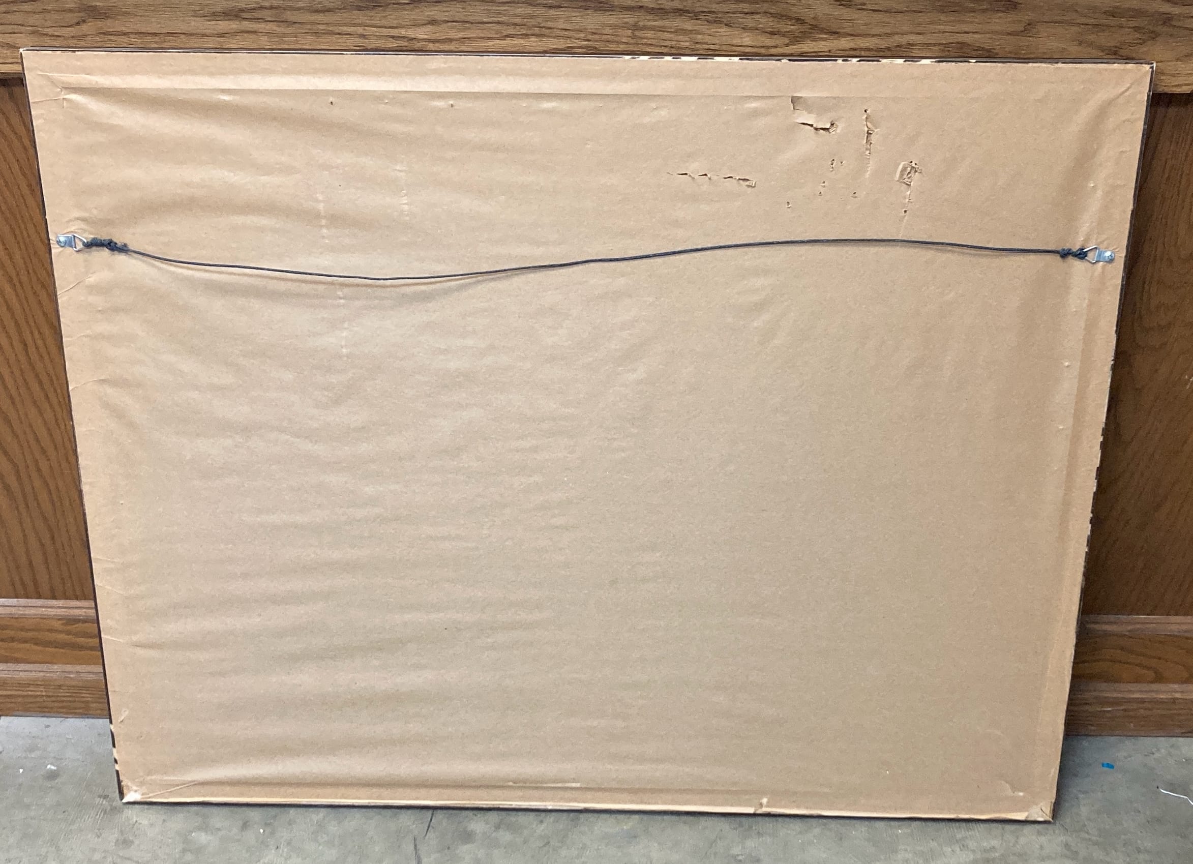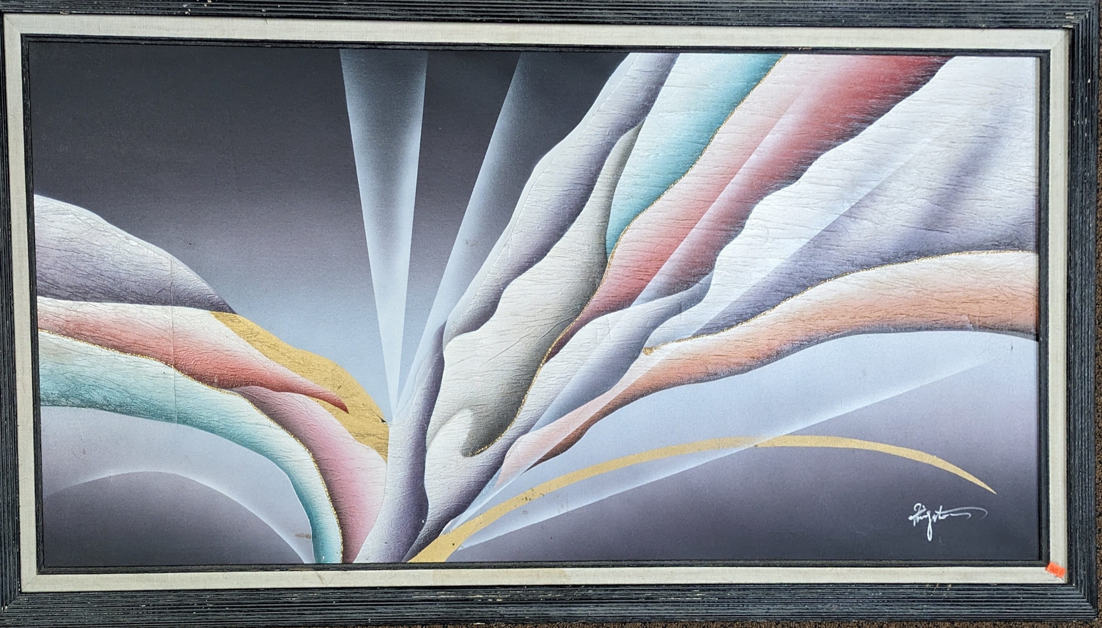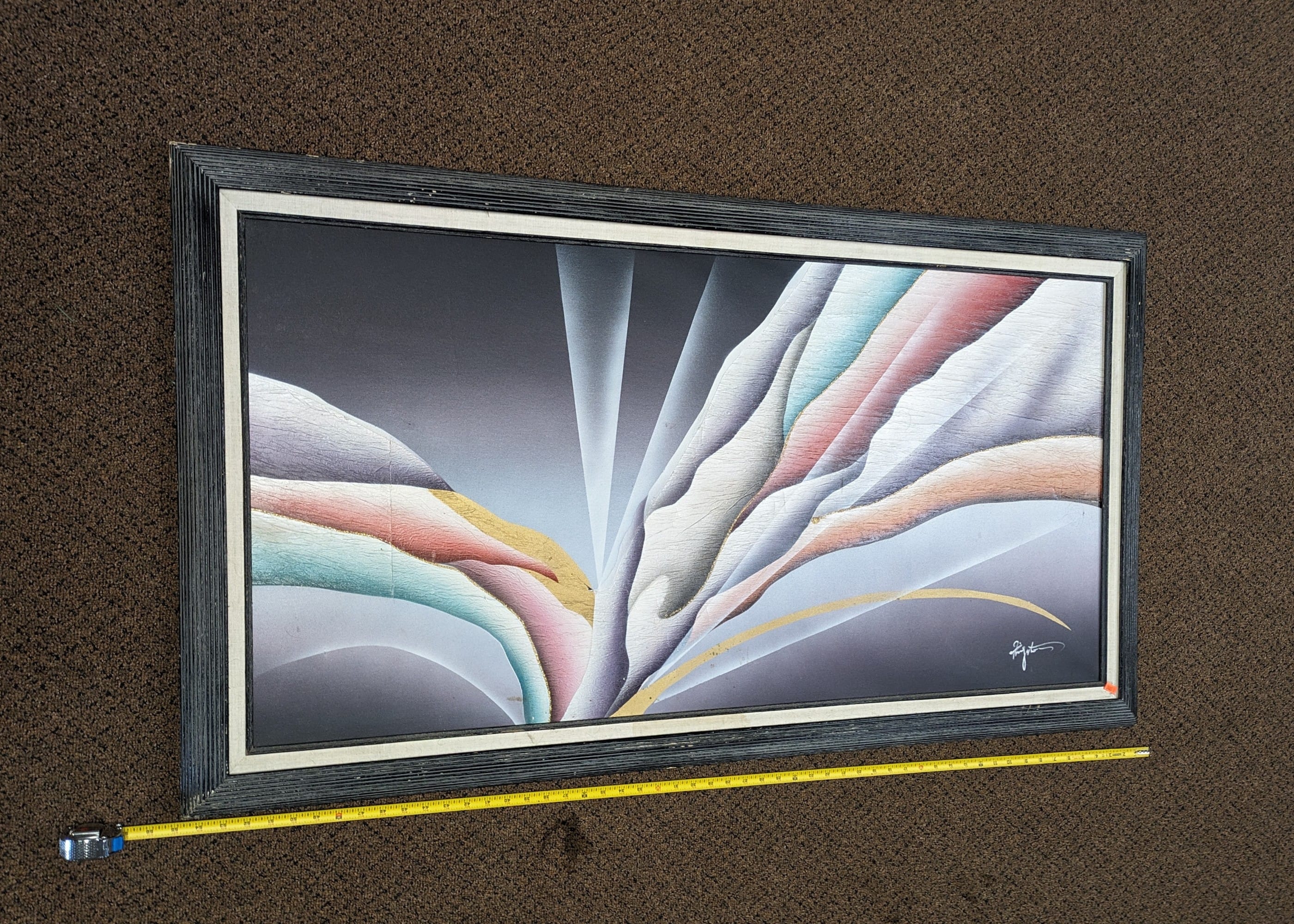 2405 Large framed abstract painting with some paint loss, artist signed 54"L x 29" tall