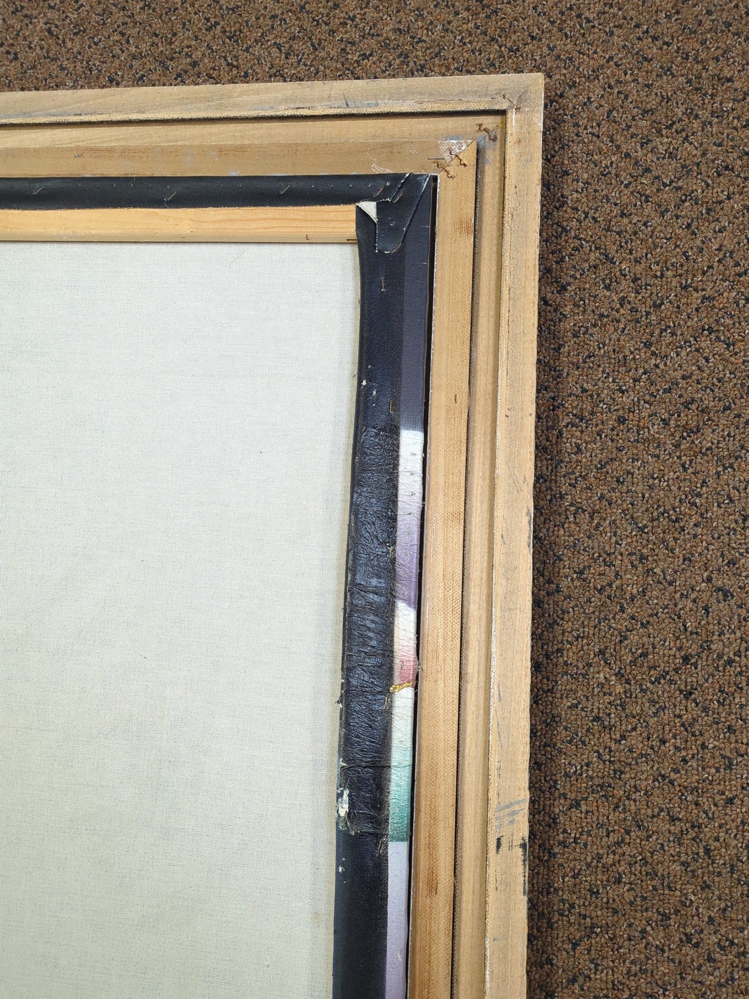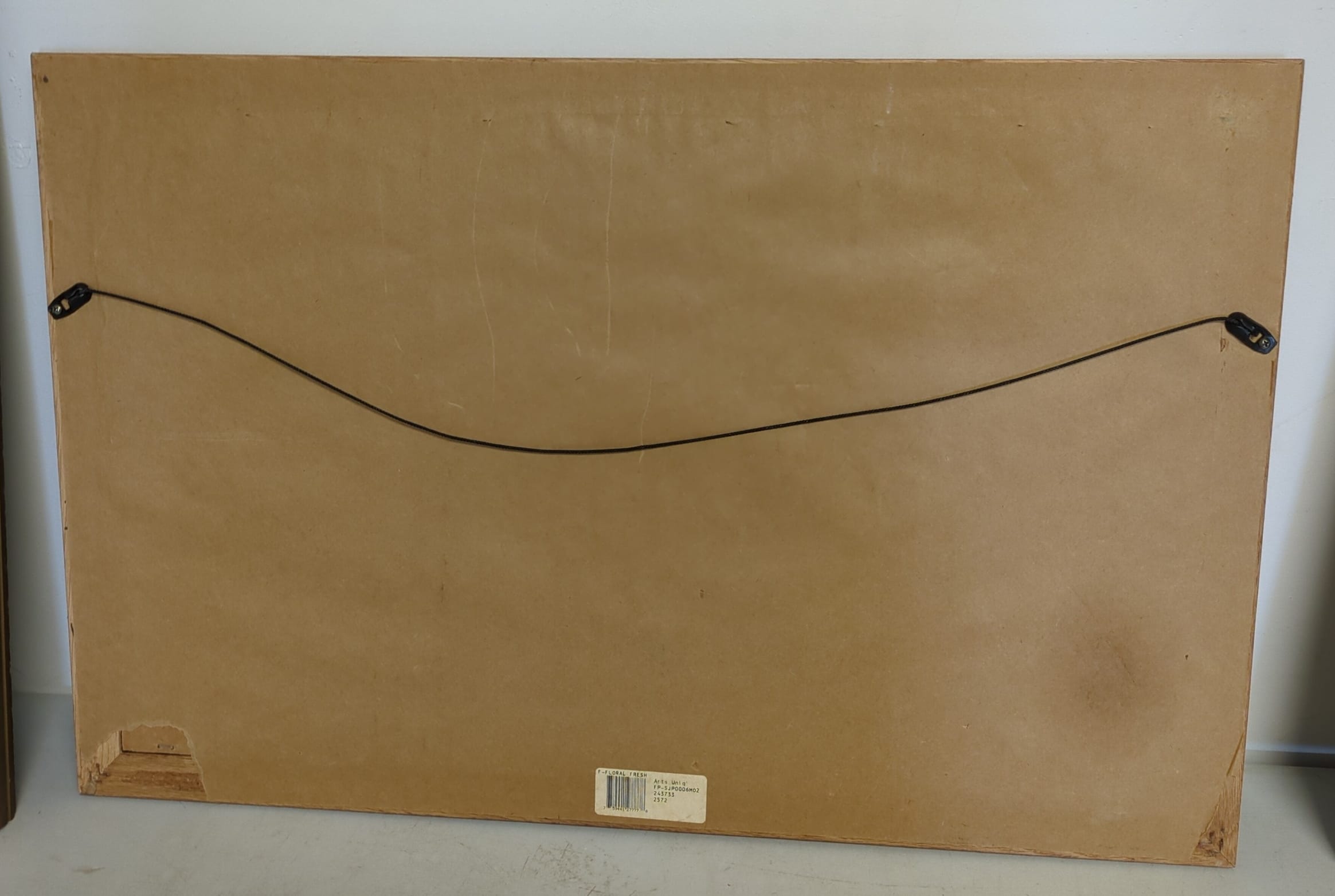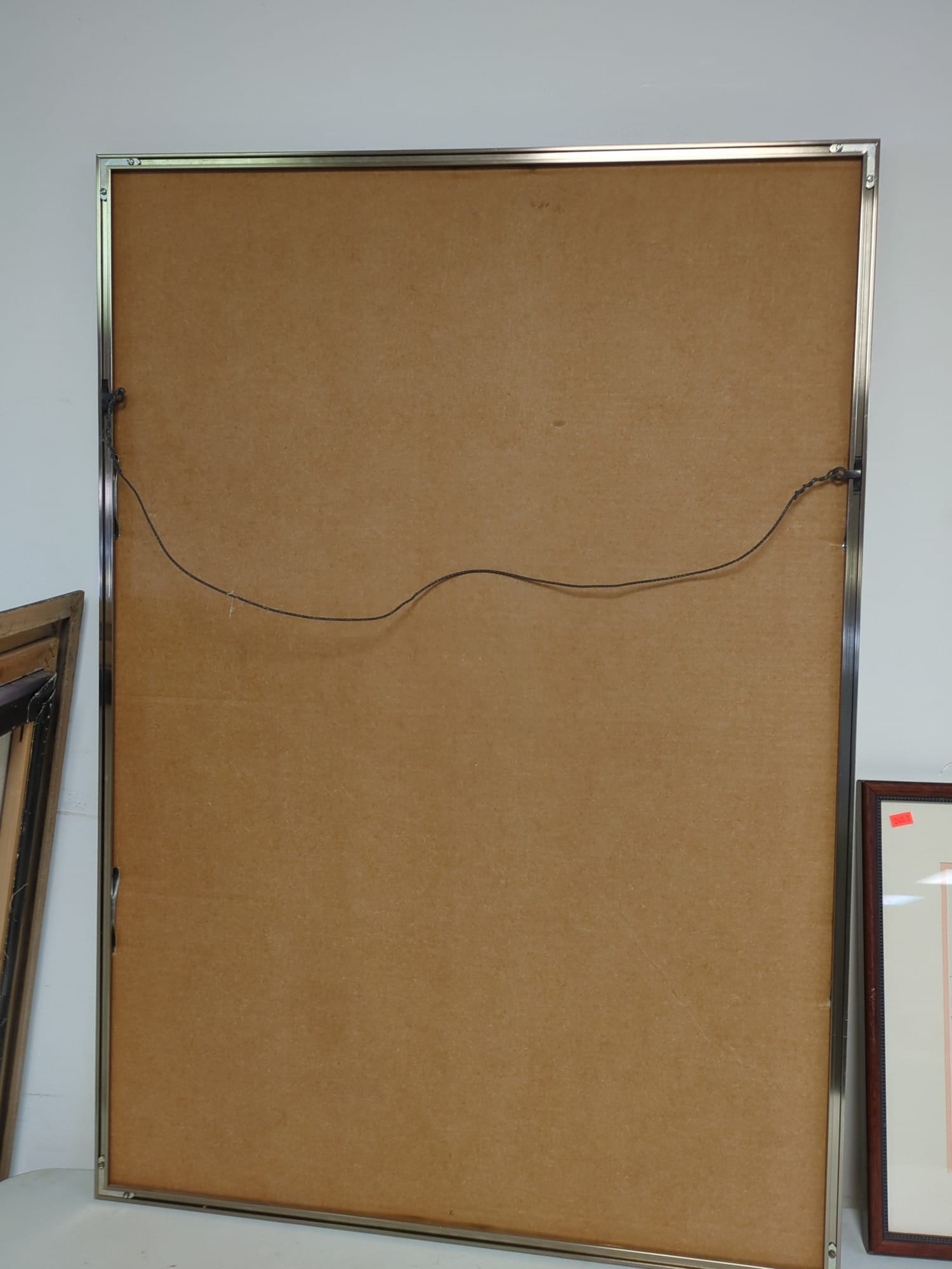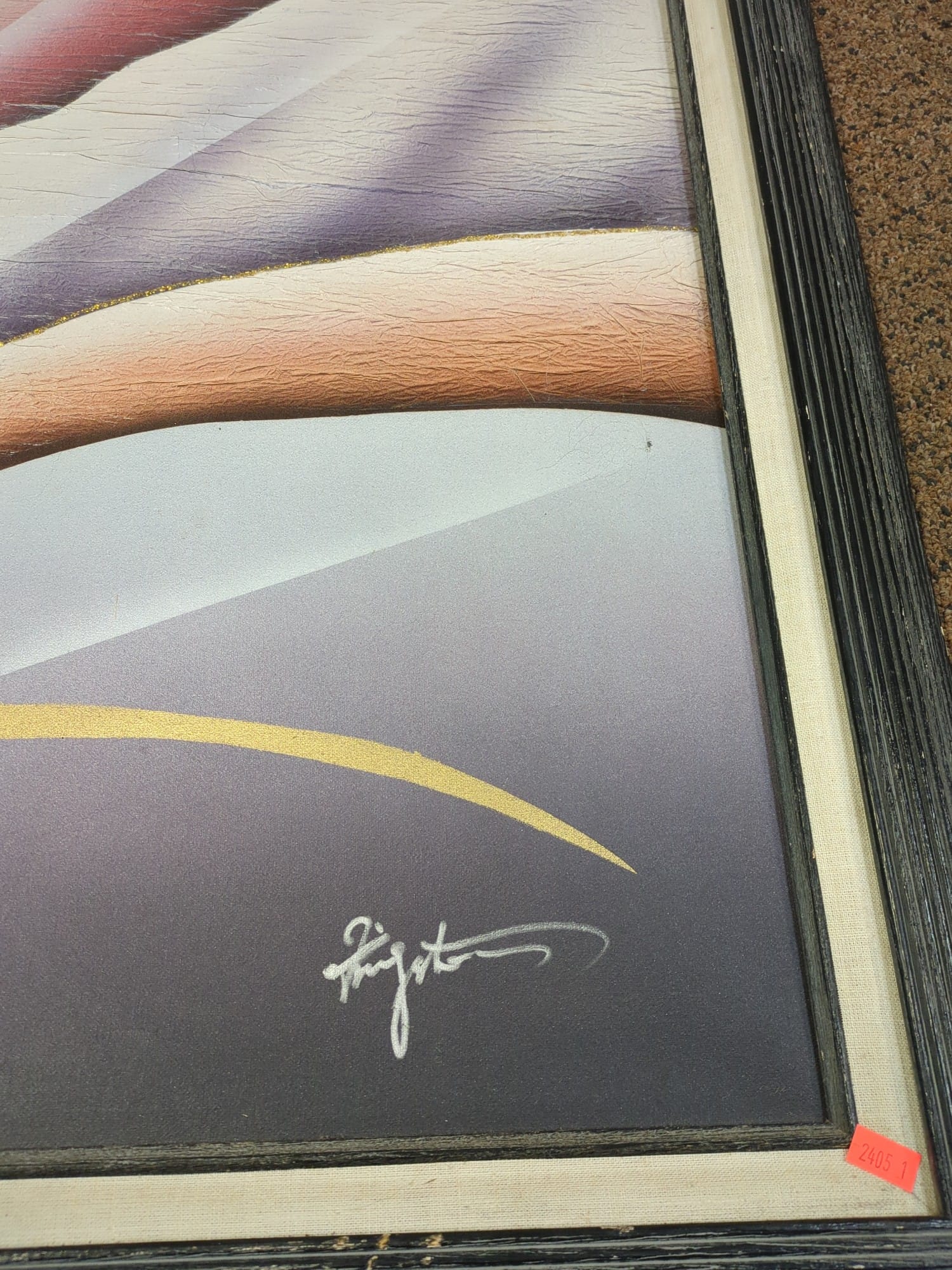 2405 Large framed abstract painting with some paint loss, artist signed 54"L x 29" tall