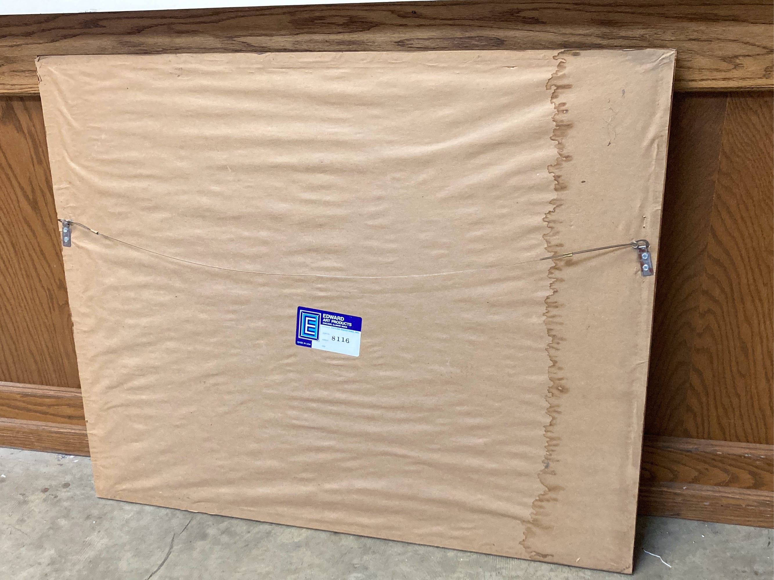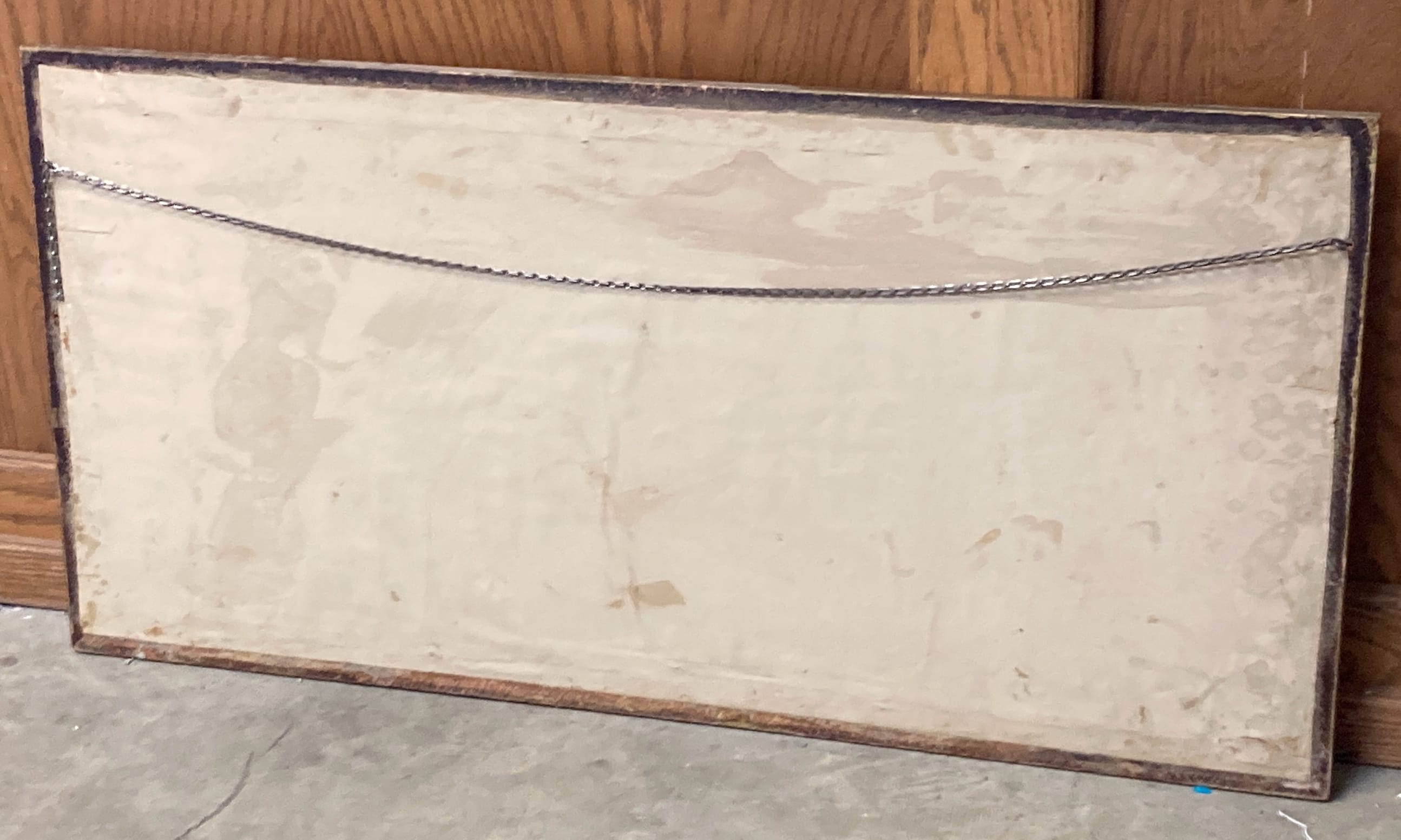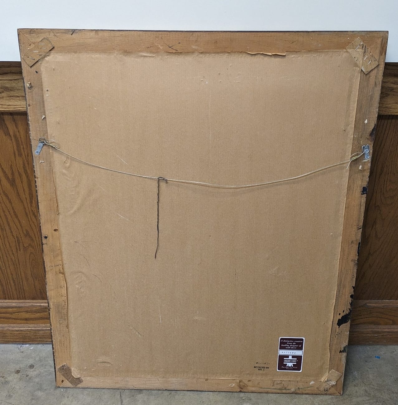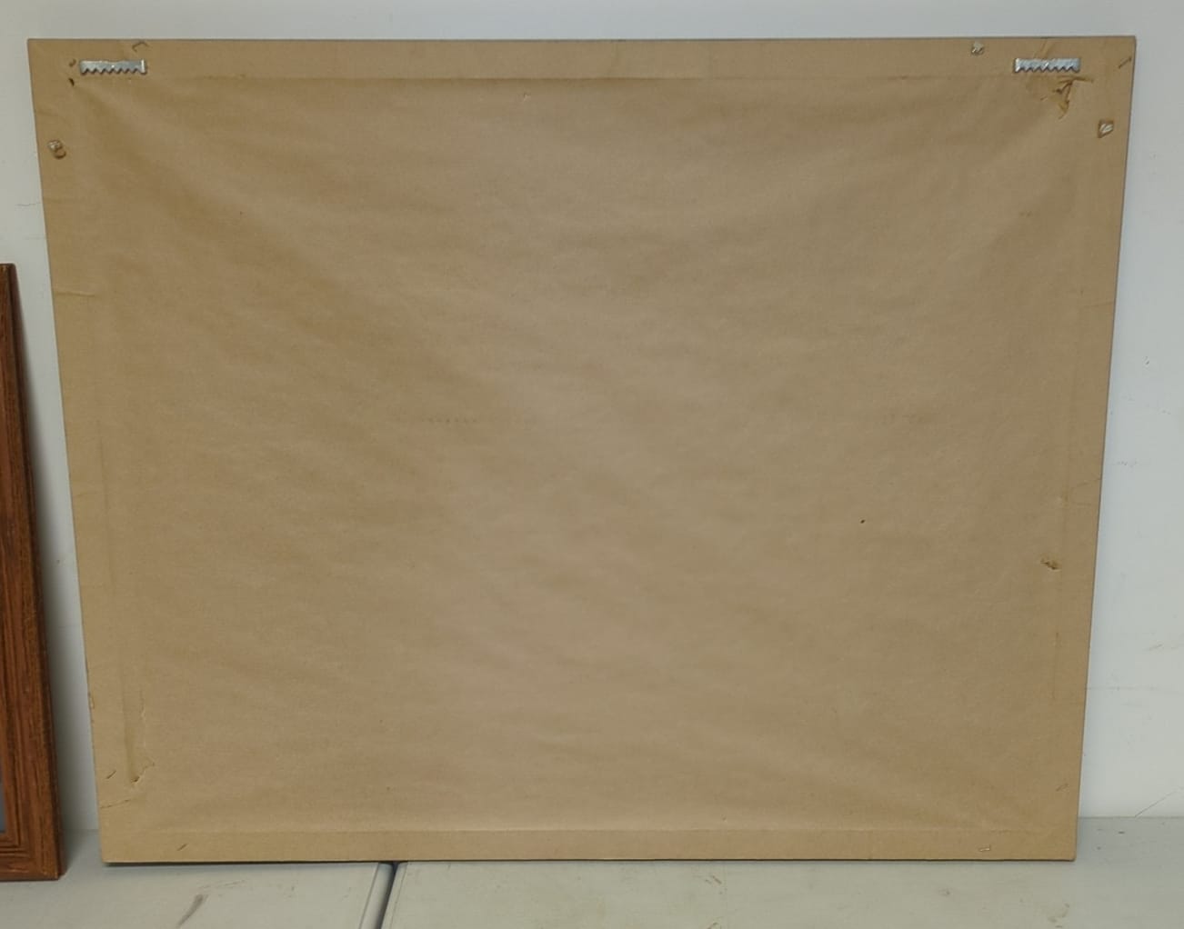 2405 Large framed abstract painting with some paint loss, artist signed 54"L x 29" tall