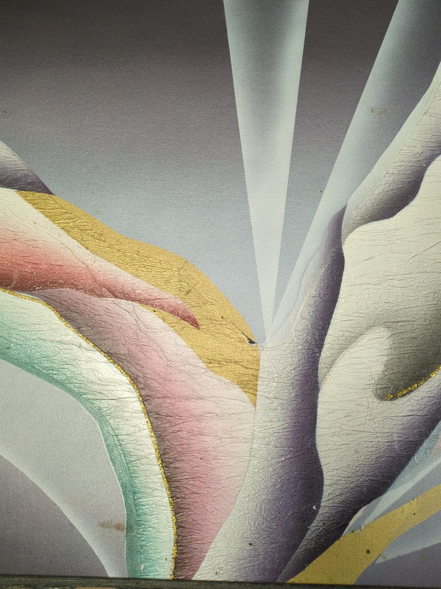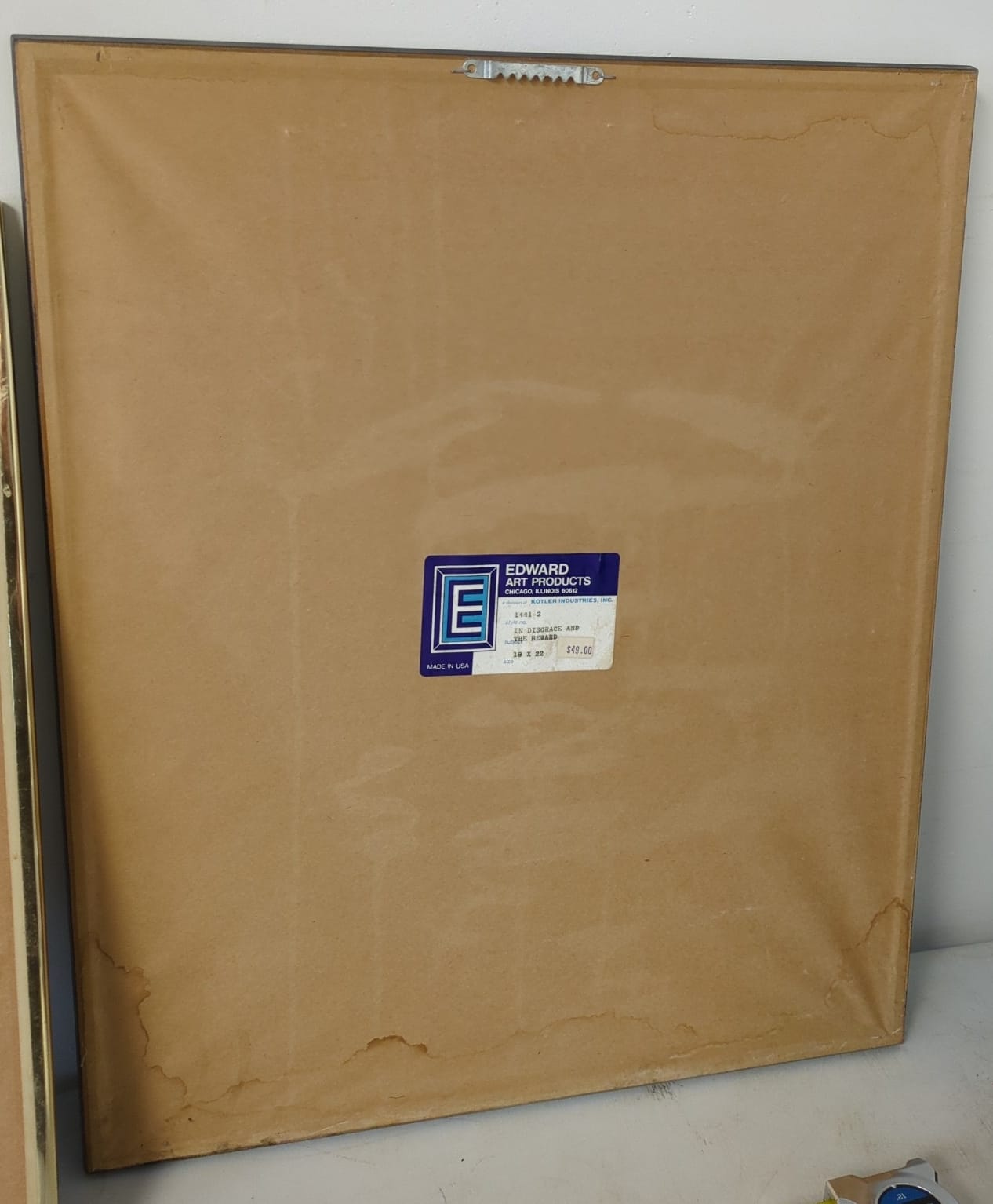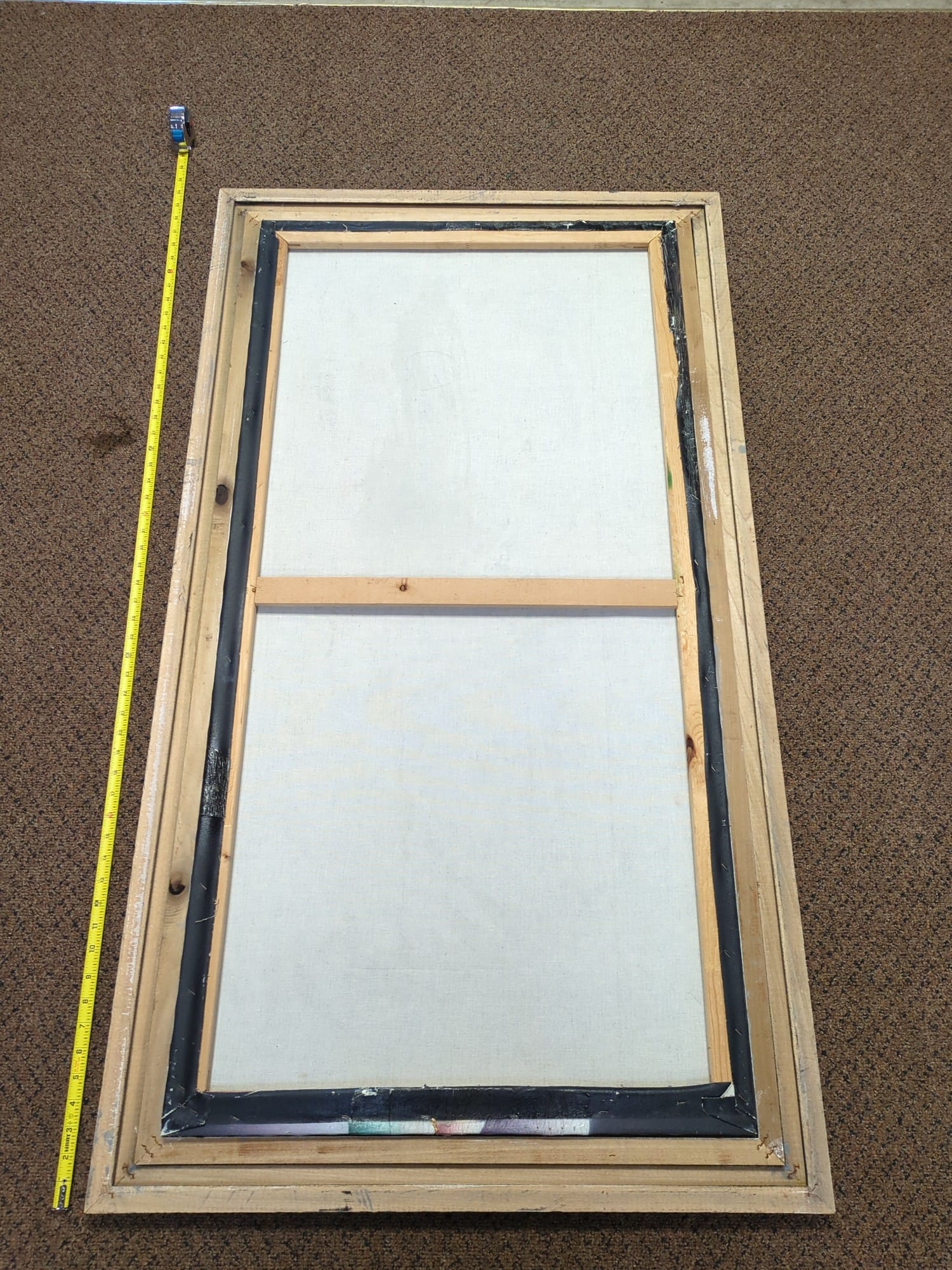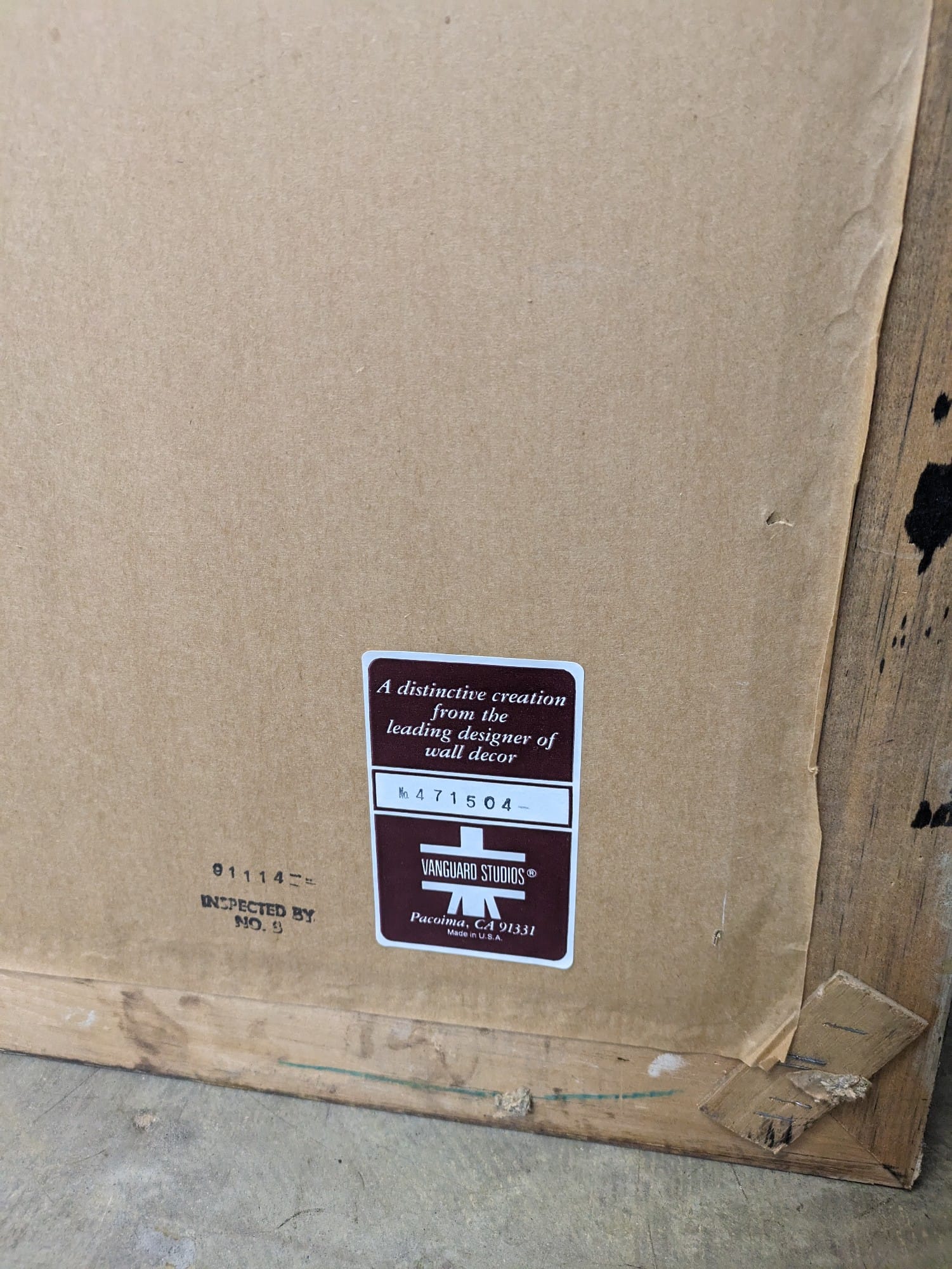 2405 Large framed abstract painting with some paint loss, artist signed 54"L x 29" tall