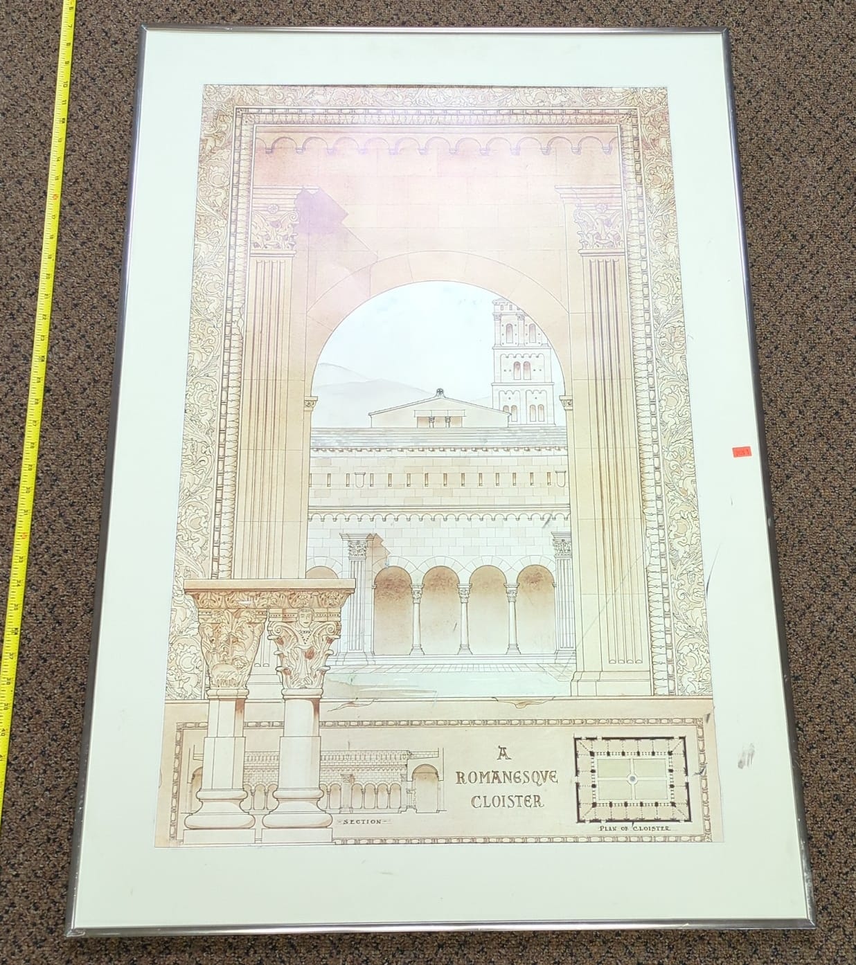 2406 Large Framed Romanesque Cloister poster approximately 41" x 28"