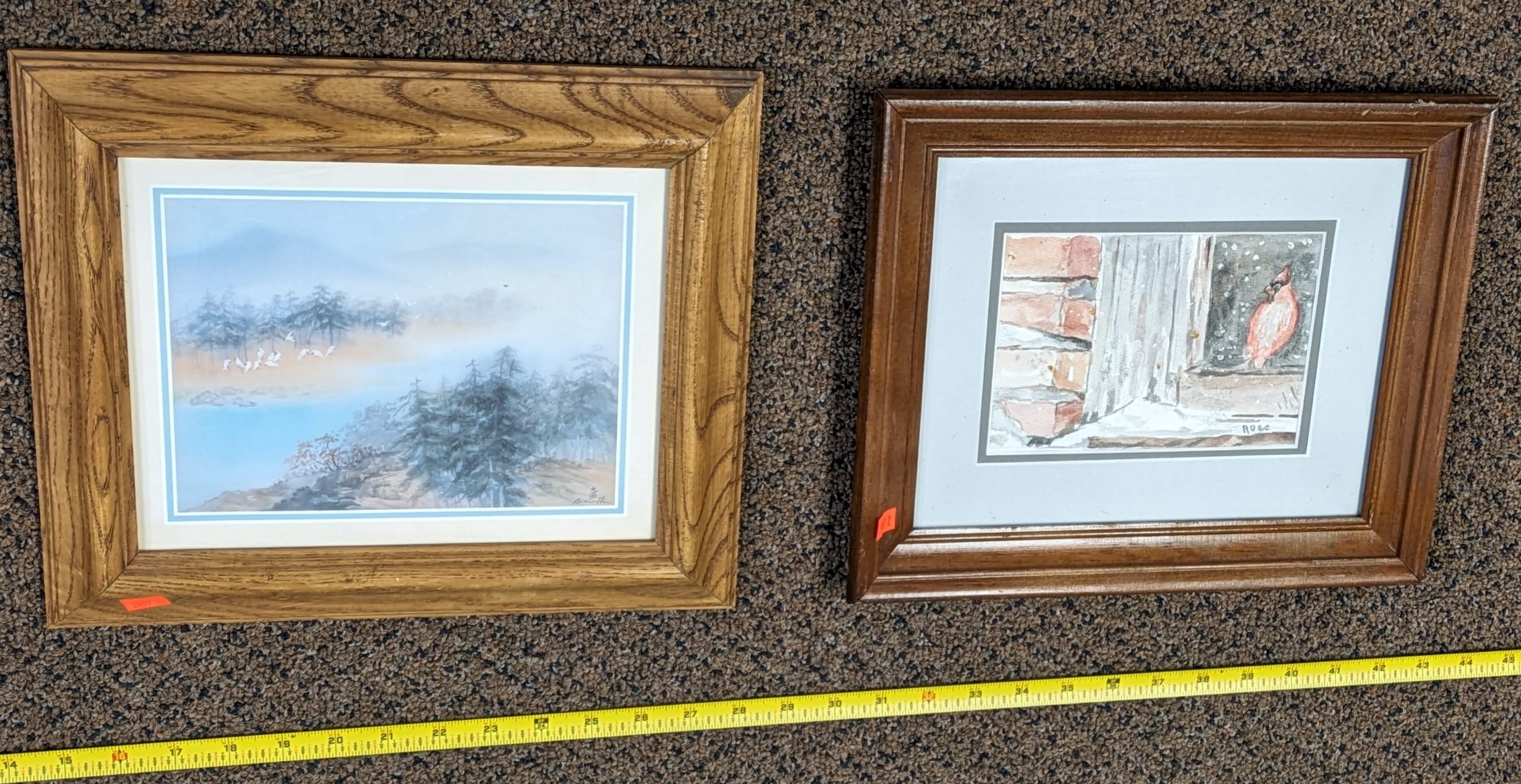 2407 Two small framed prints, artist signed - both approximately 15"L x 12" W