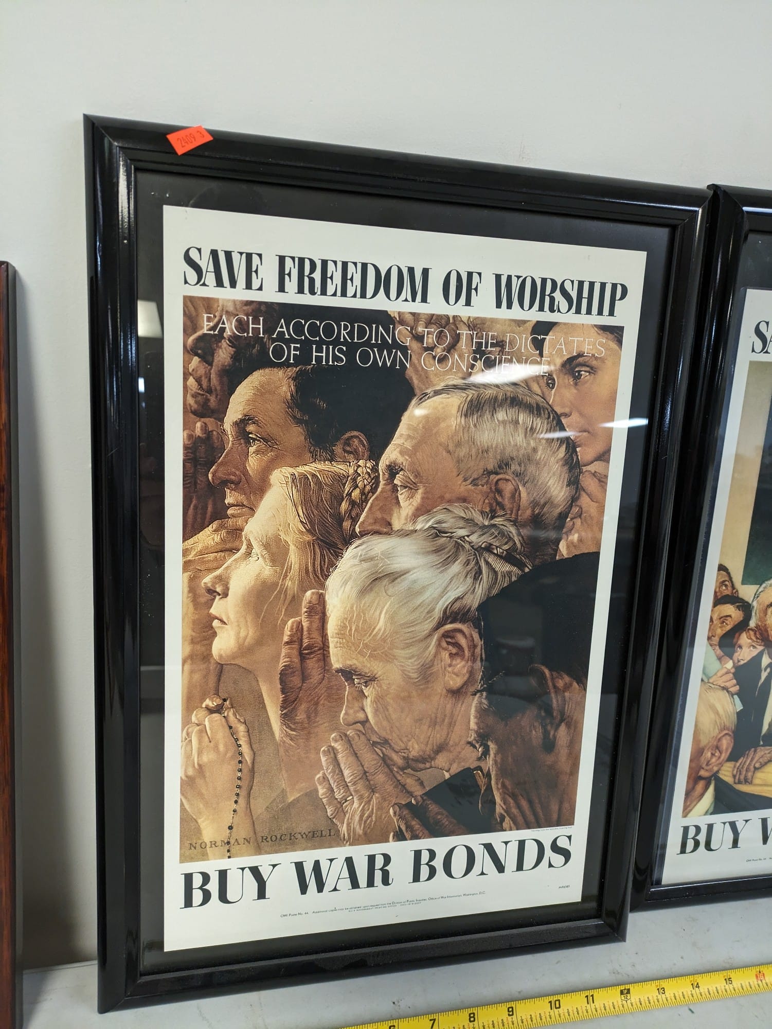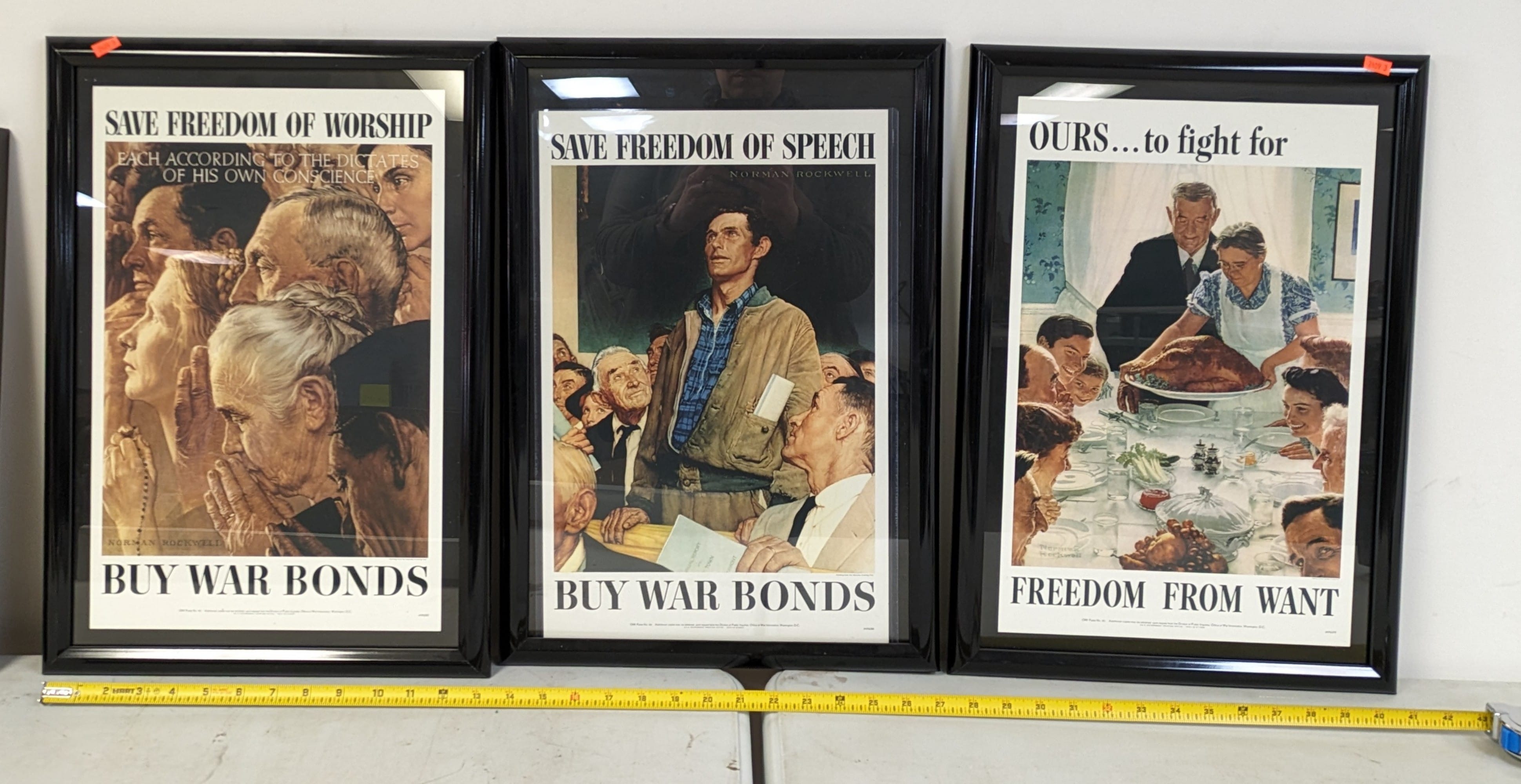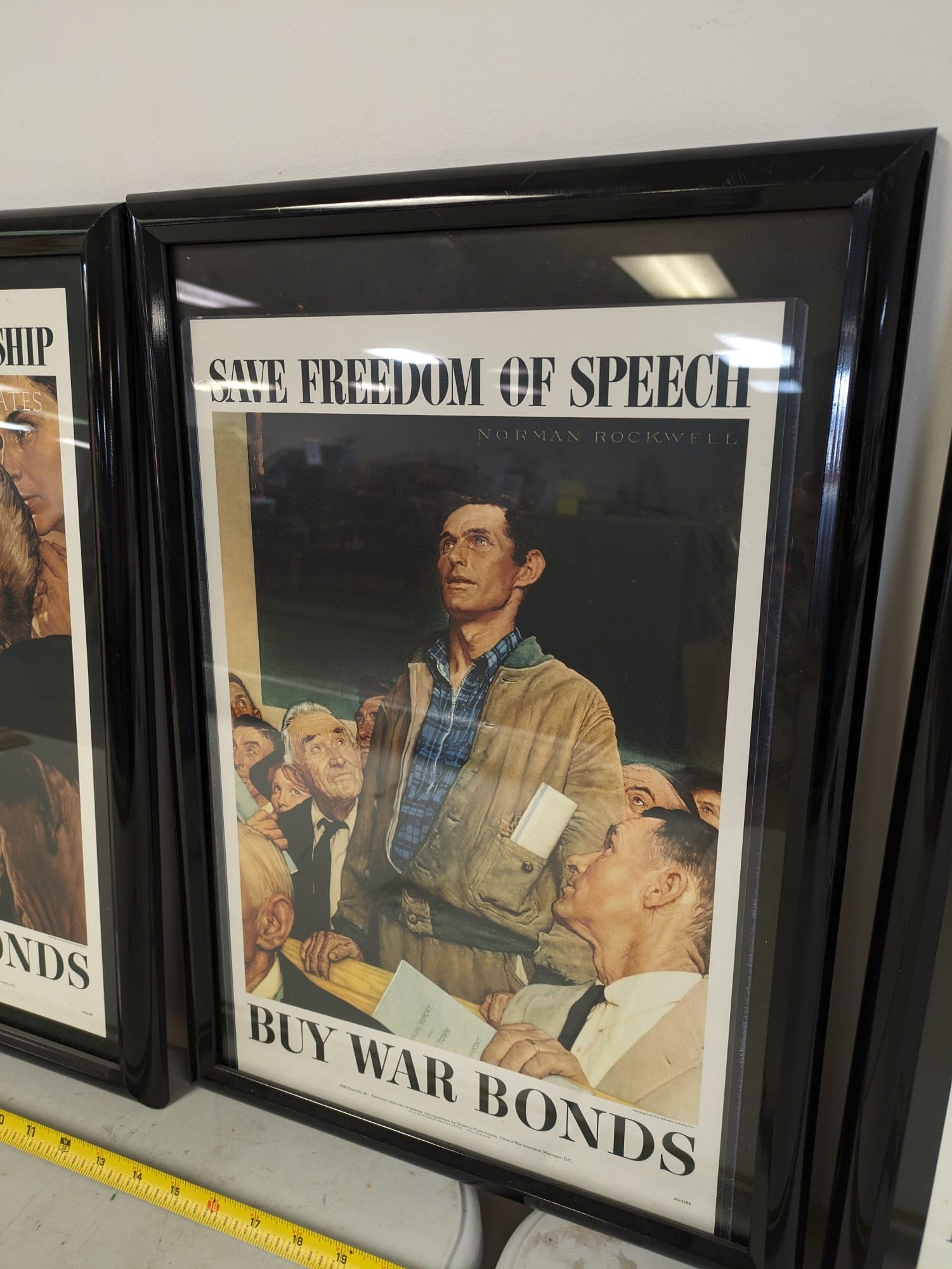 2409 3 Norman Rockwell framed freedom posters 20"x13"