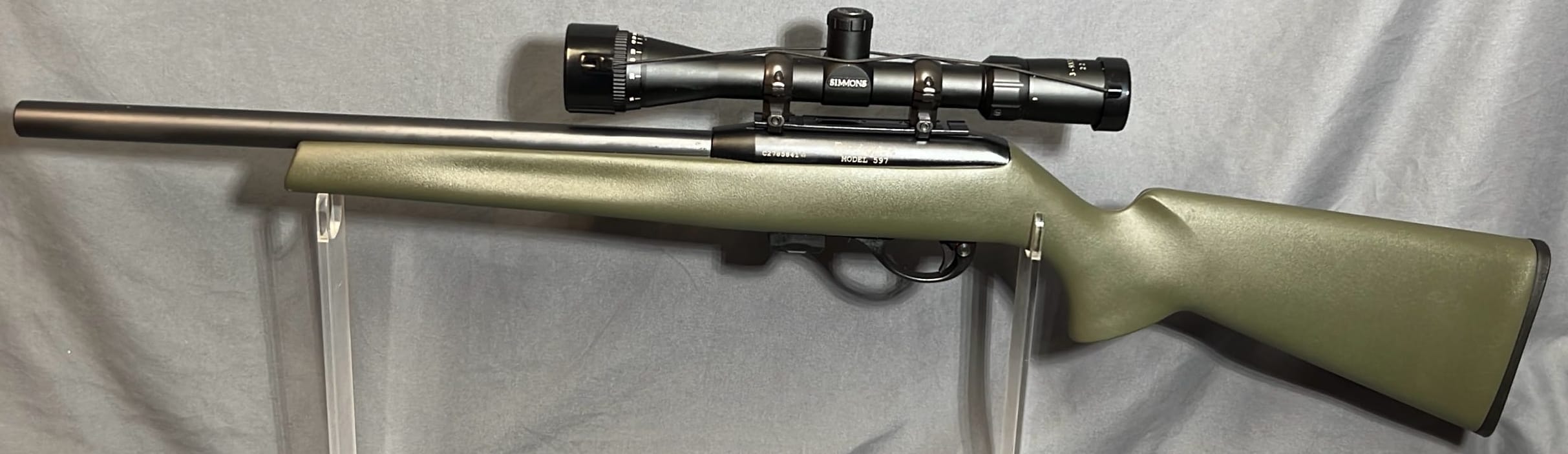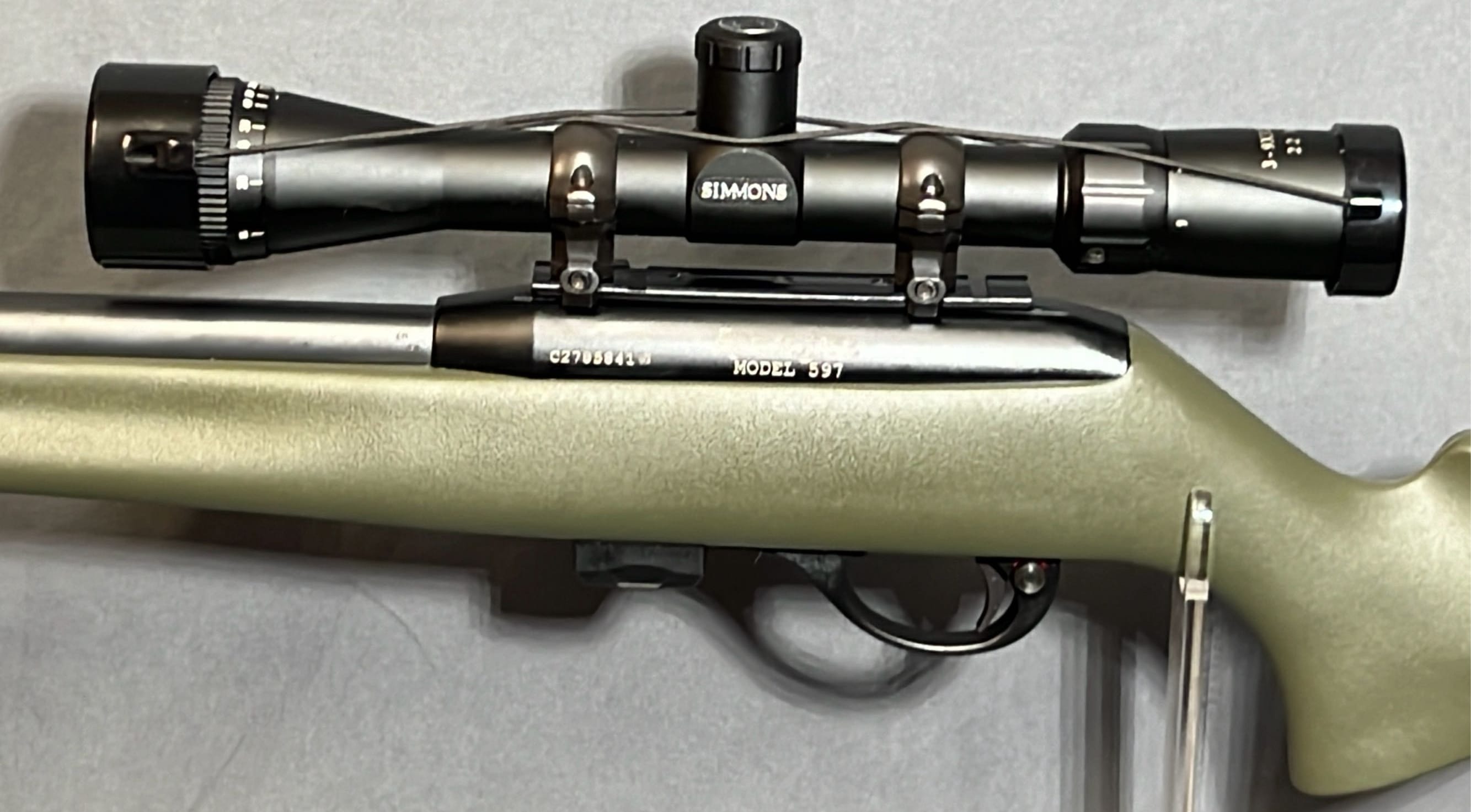 6 Remington 597 .22 long Rifle semi automatic with clip, ser.# c2785841, synthetic stock, Simmons scope 3-9x32 wa/ao, 35” length overall - - PICK UP AT KING AND COUNTRY ARMORY IN NORTH MANCHESTER, IN