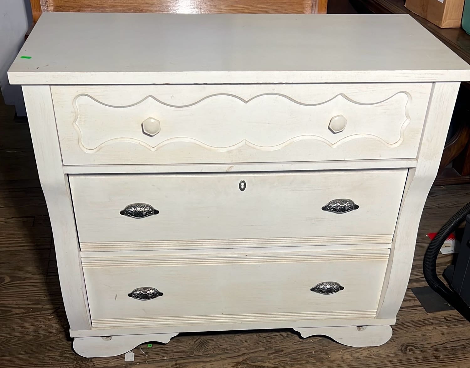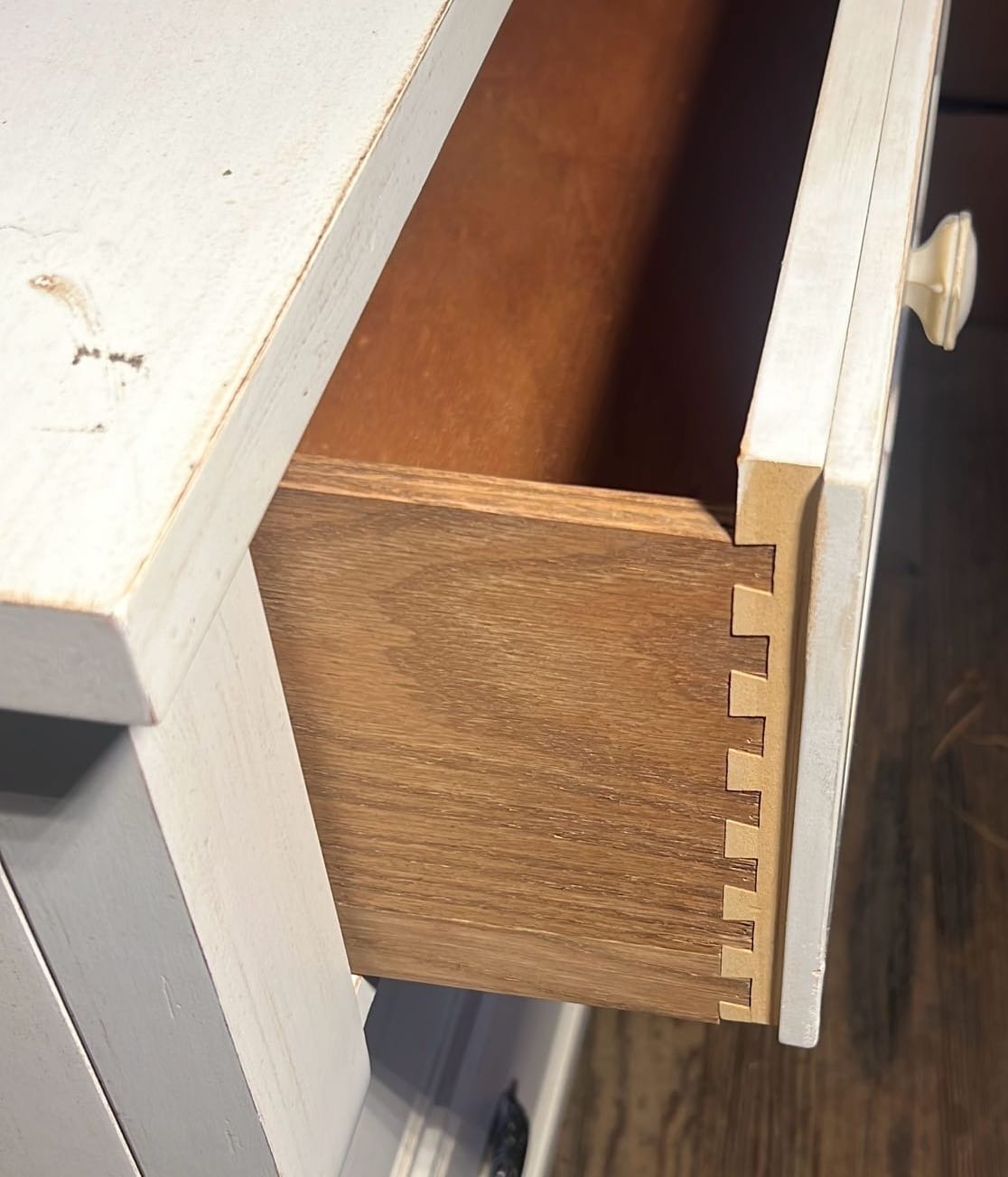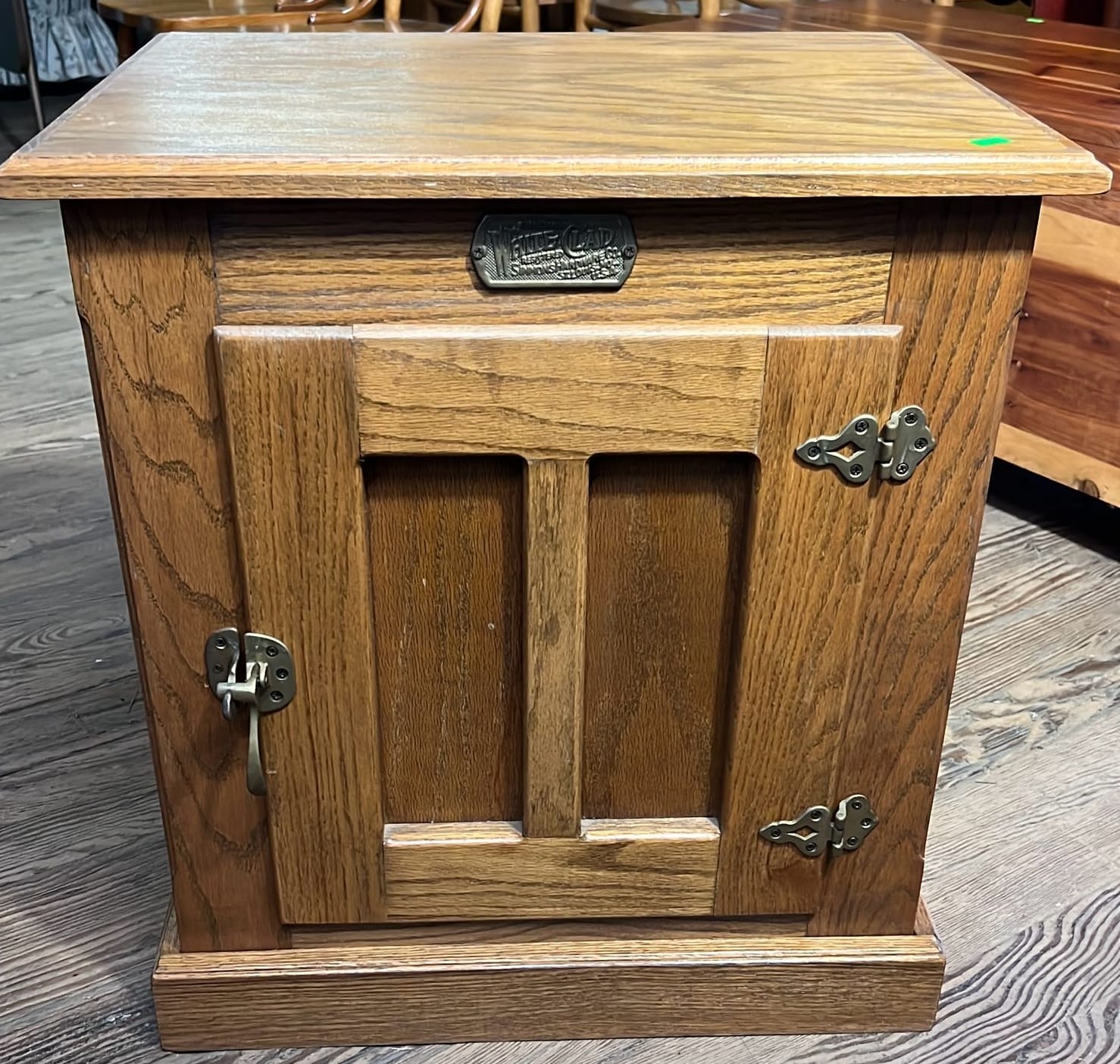 24 White Clad Ice Box style Oak Wood End Coffee Table Simmons Hardware St Louis Missouri 22.75”x24.5”x16.5”