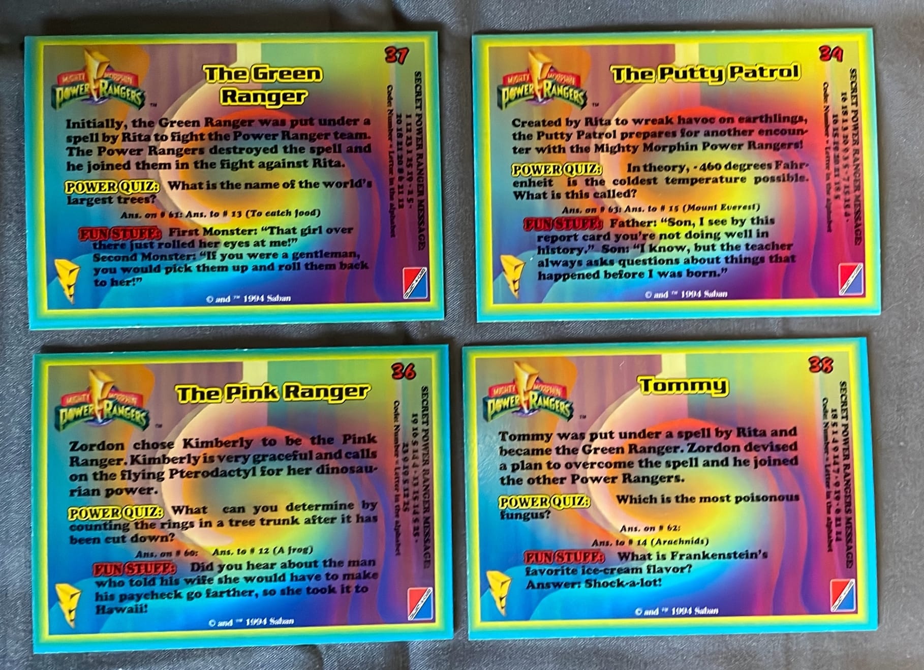 37 Mighty Morphin Power Rangers 1994 Card Set