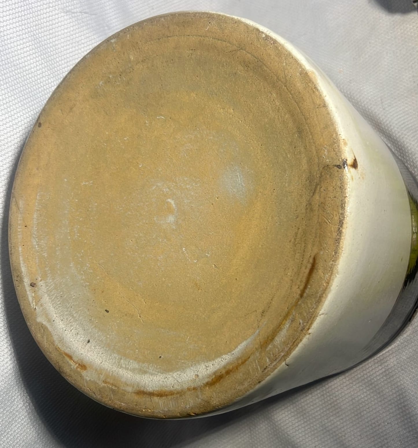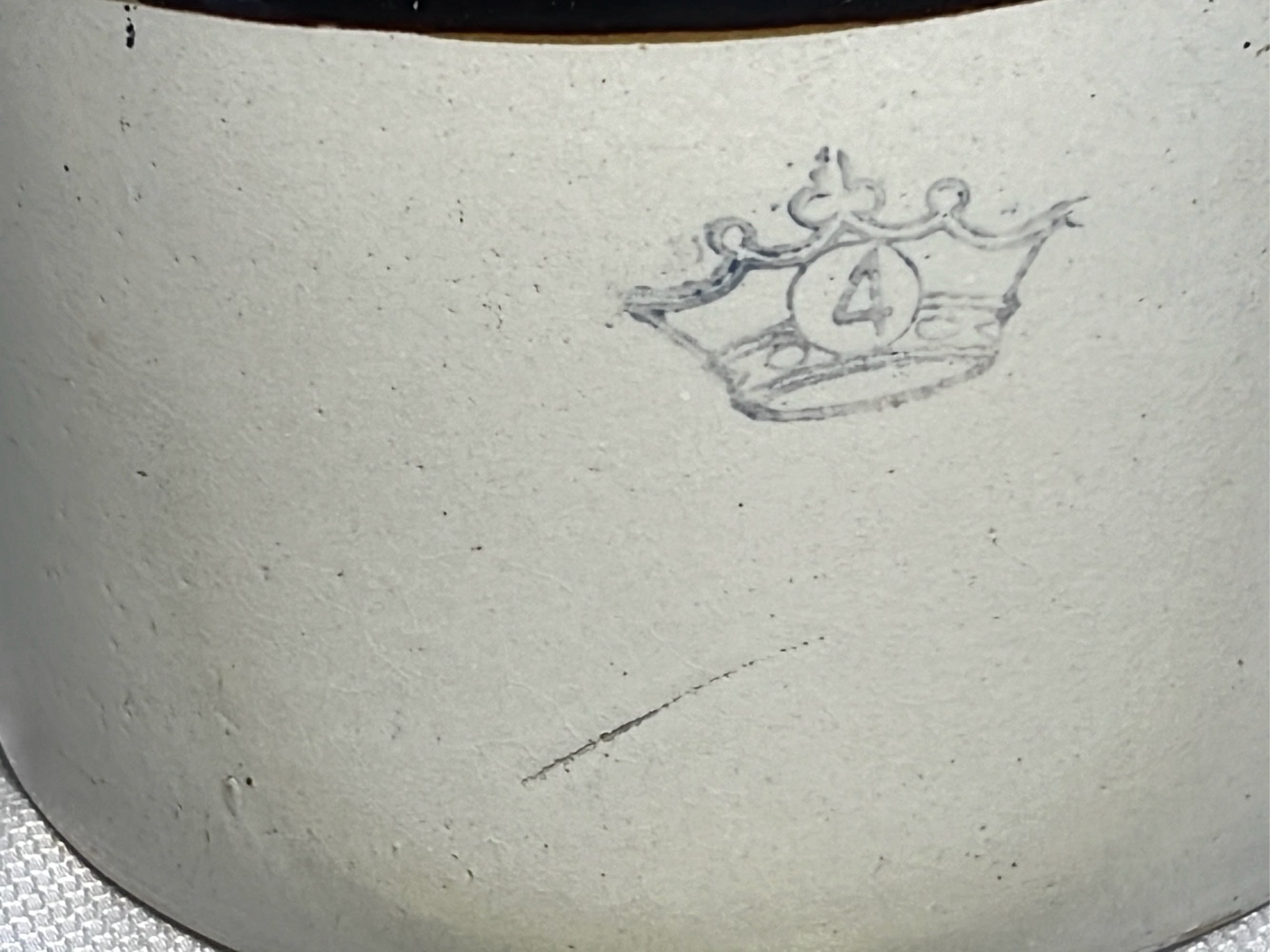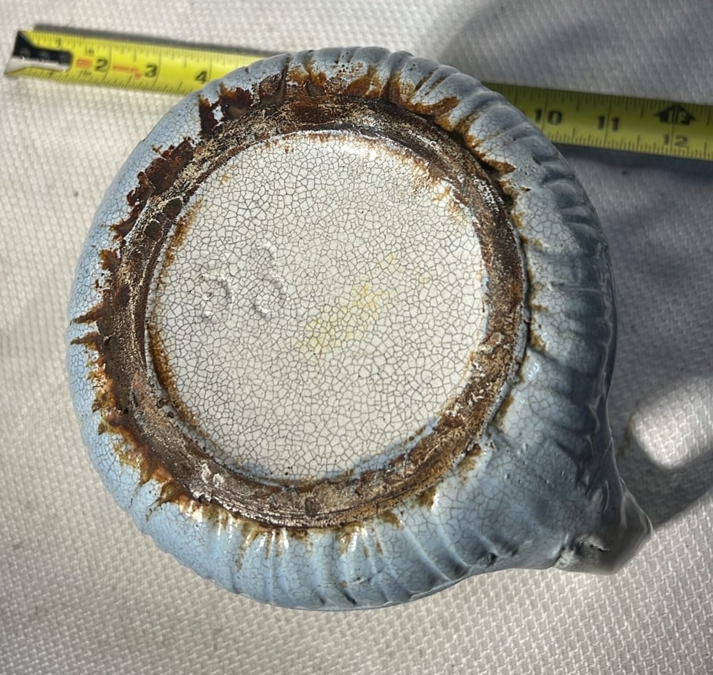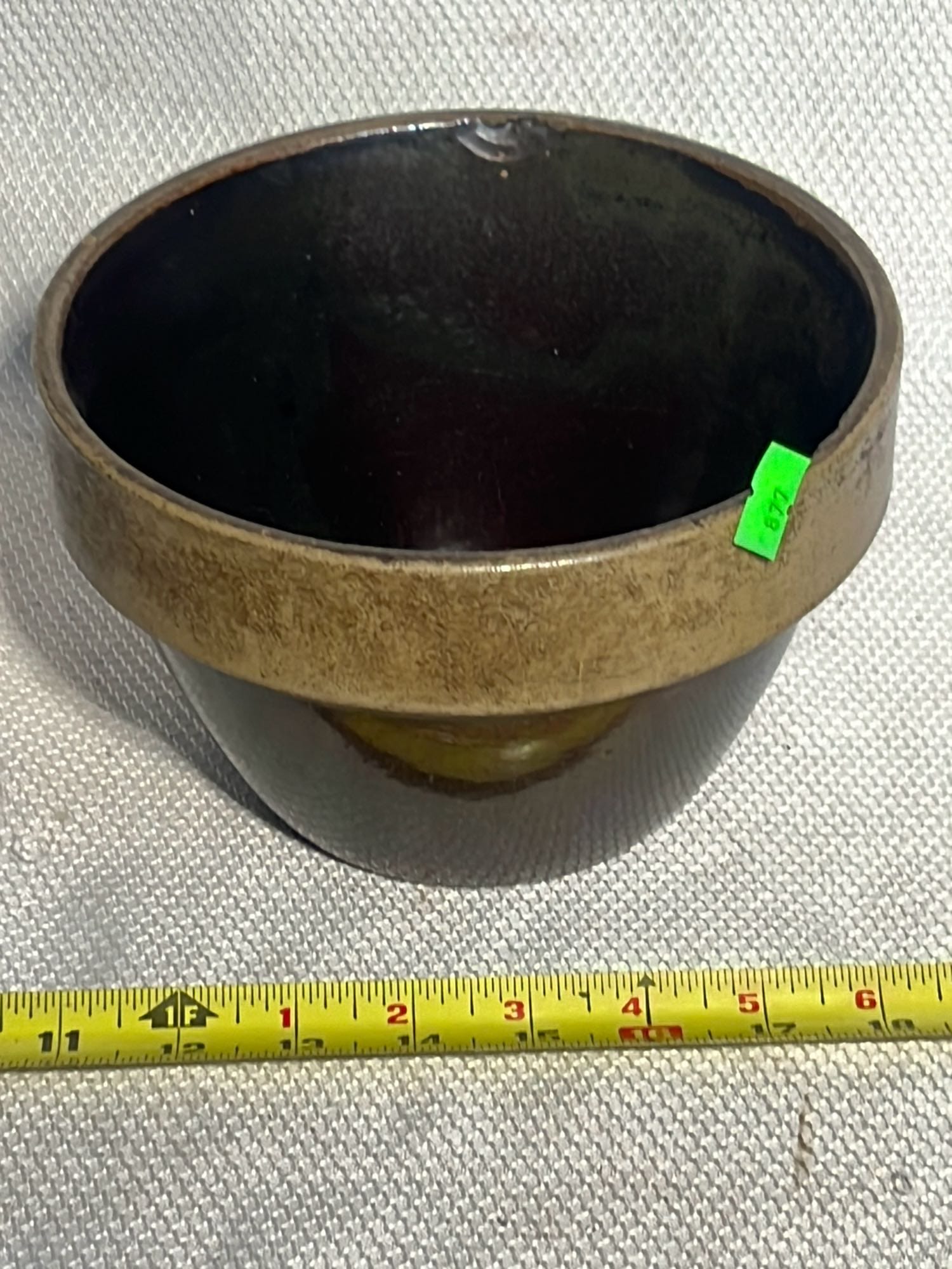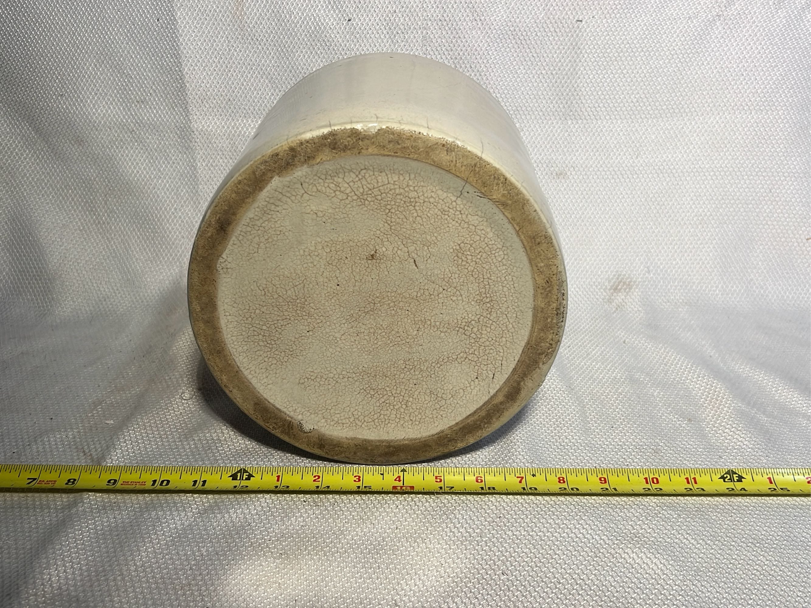 877 Stoneware Crock Bowl/Planter 4.75”, has small chip