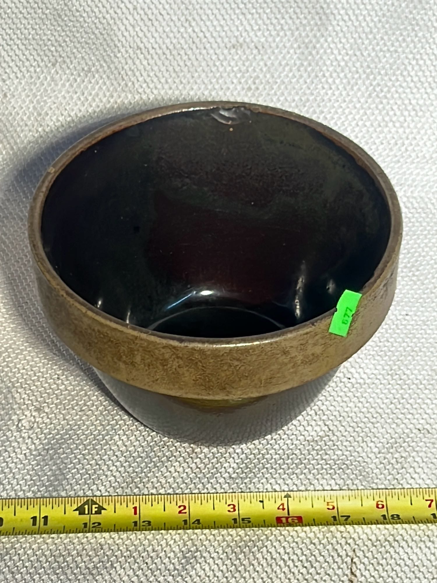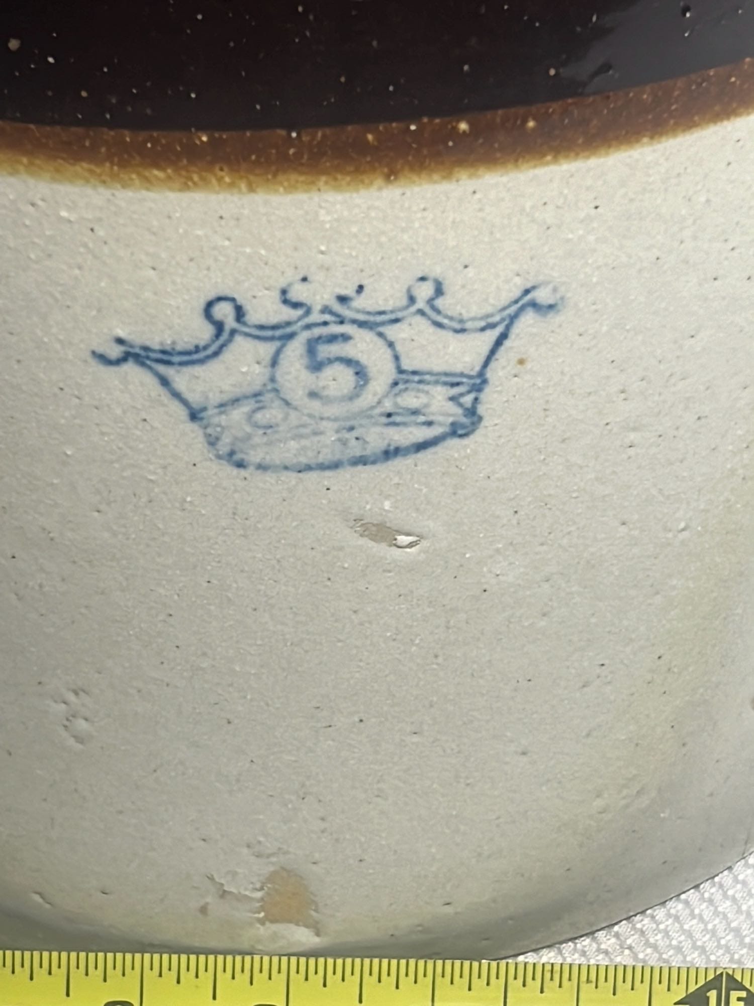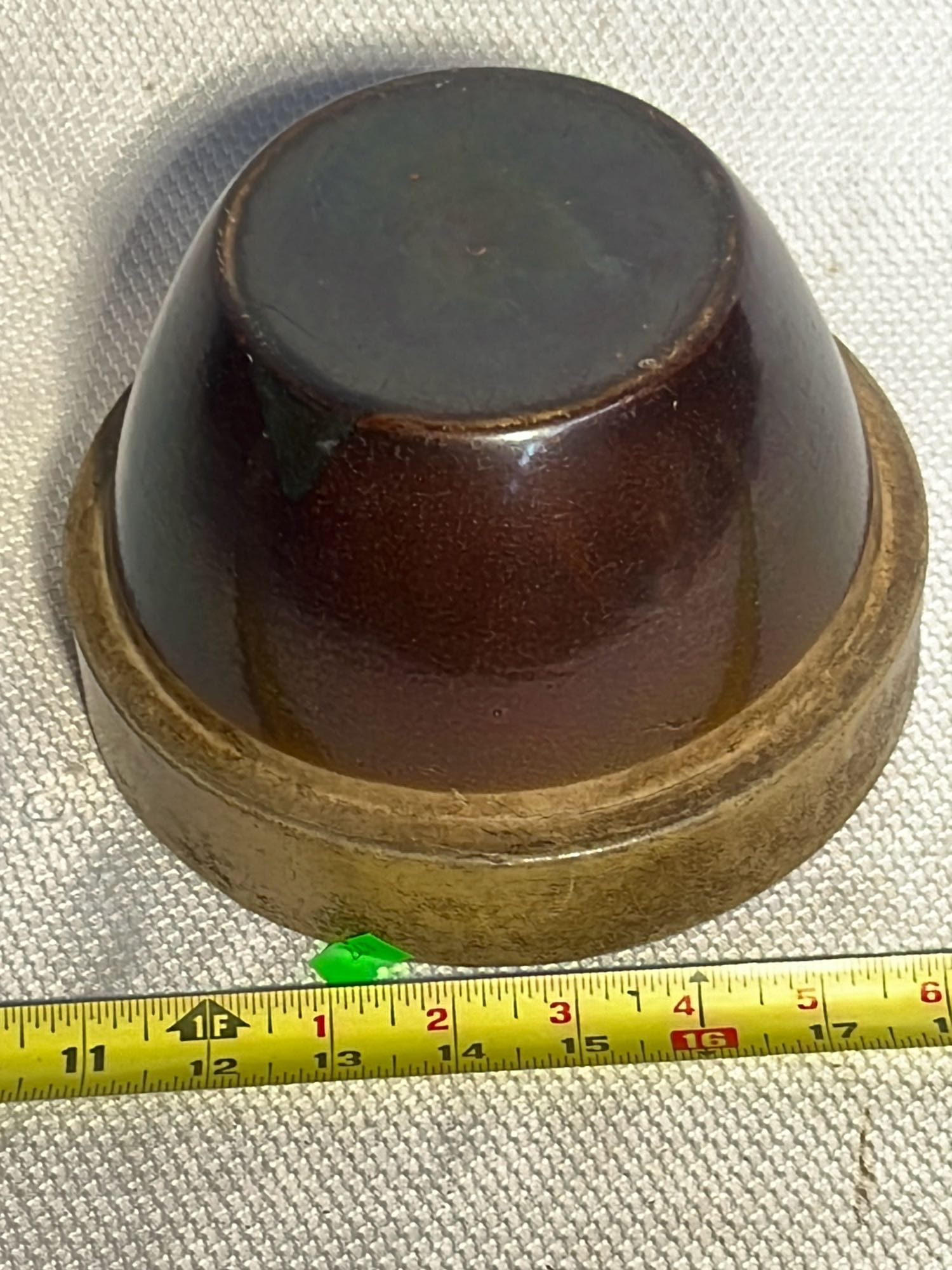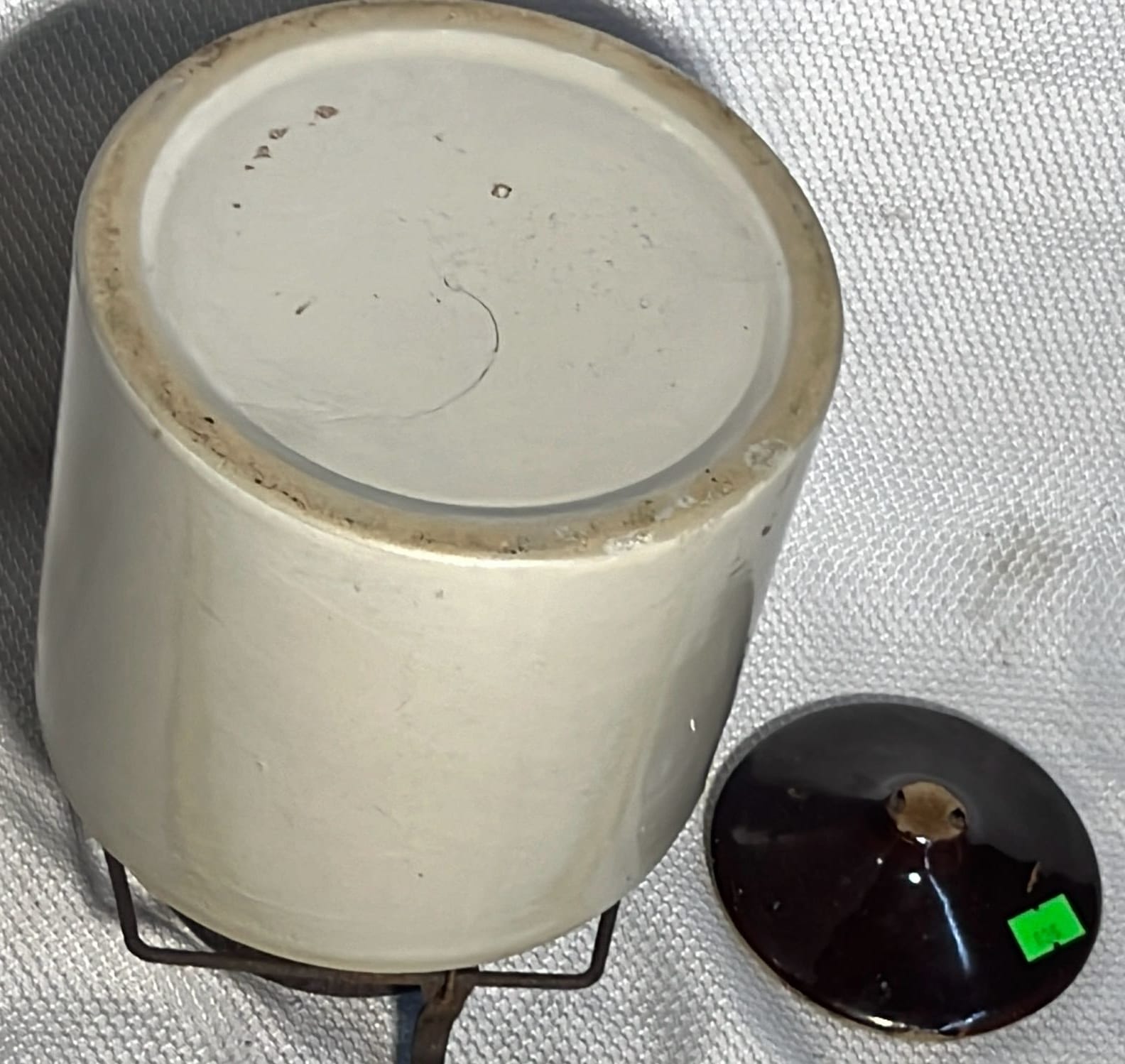 877 Stoneware Crock Bowl/Planter 4.75”, has small chip