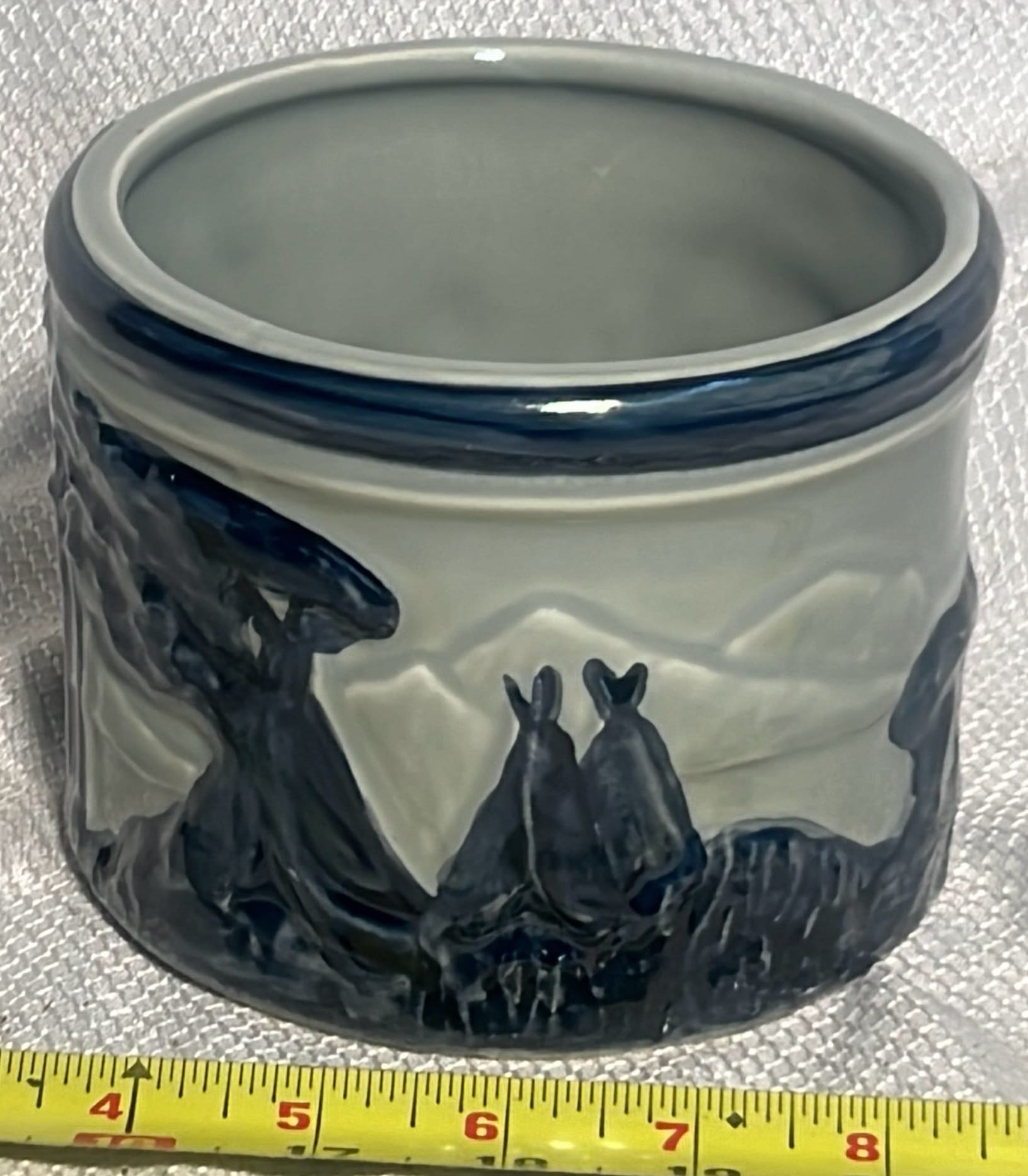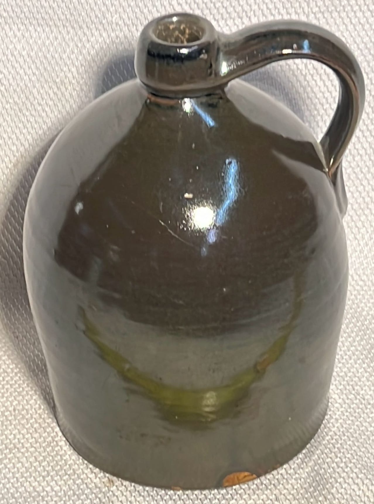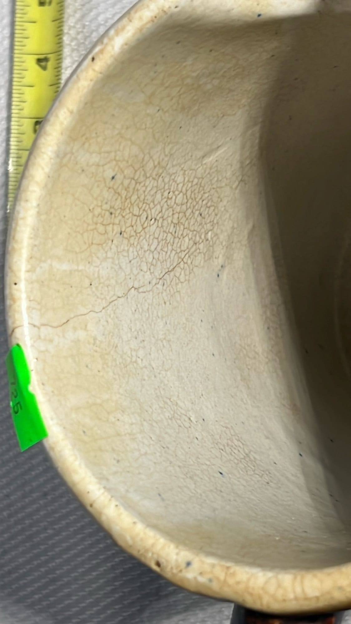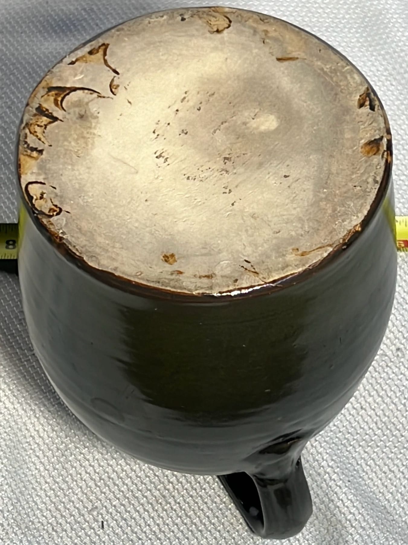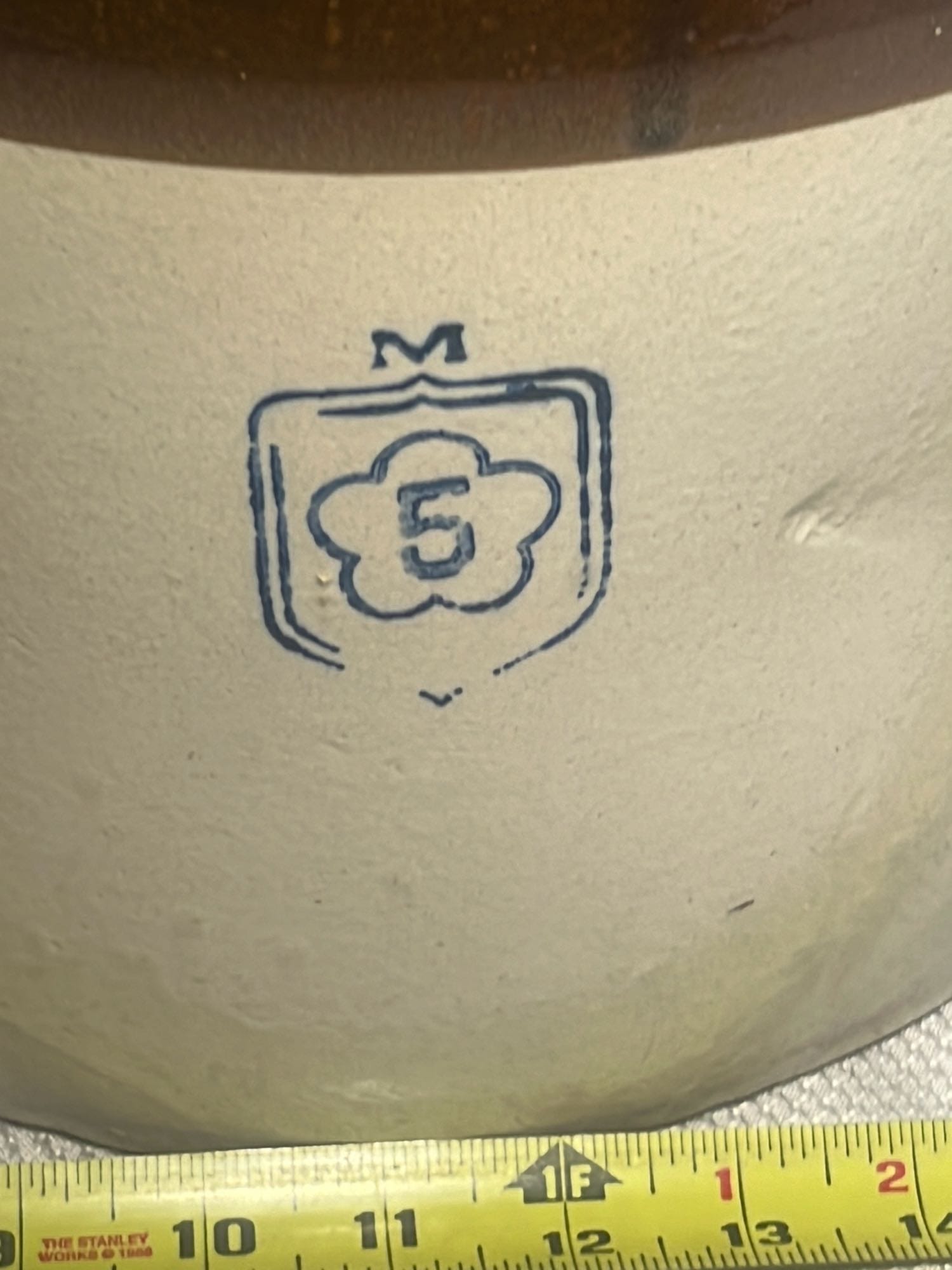 877 Stoneware Crock Bowl/Planter 4.75”, has small chip