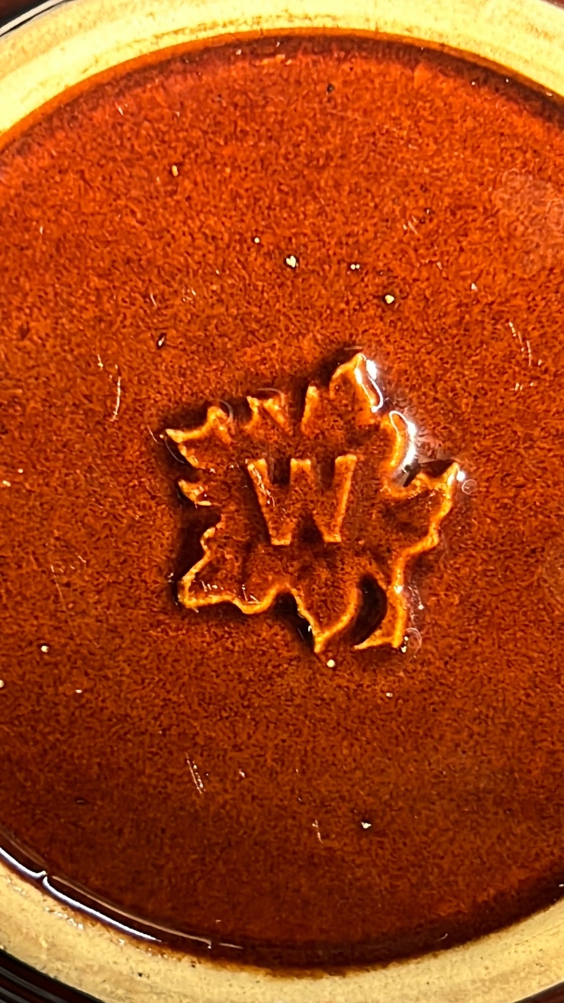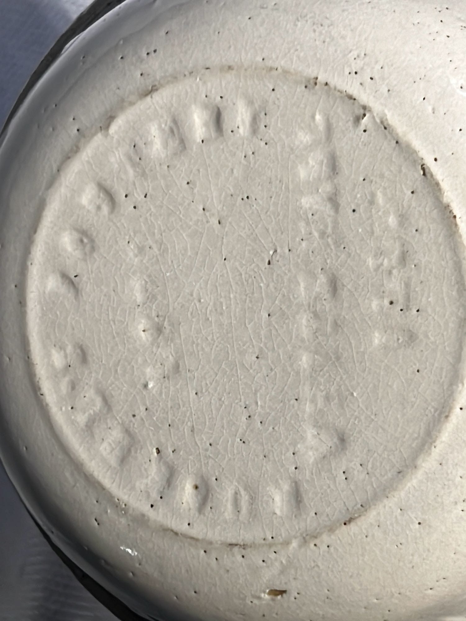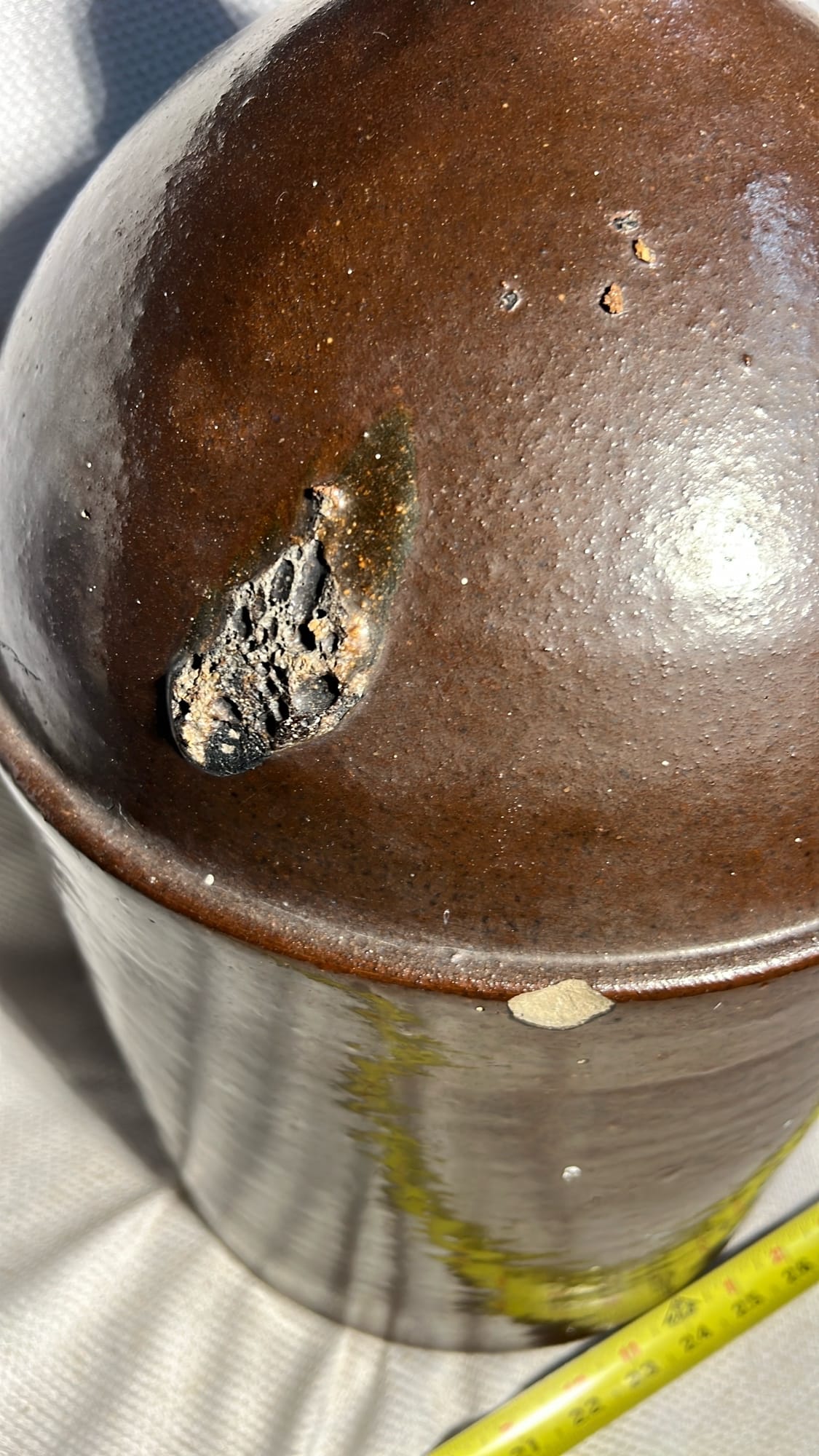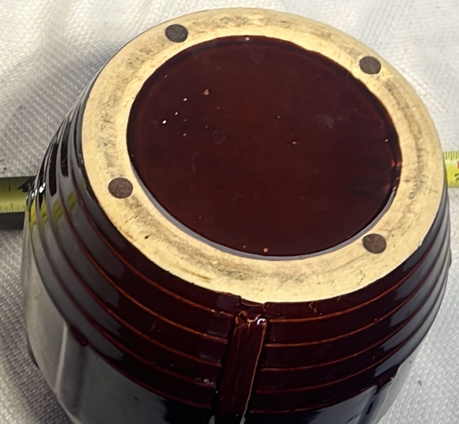 877 Stoneware Crock Bowl/Planter 4.75”, has small chip