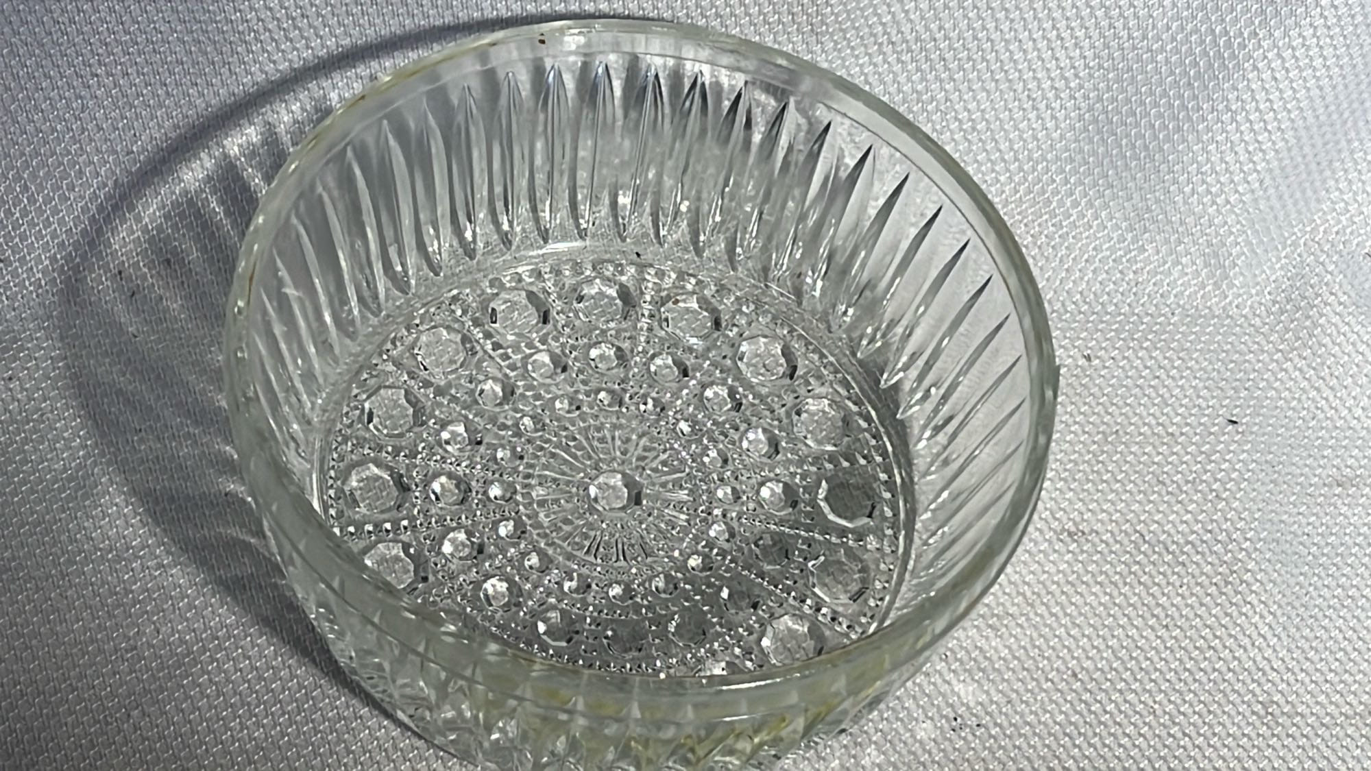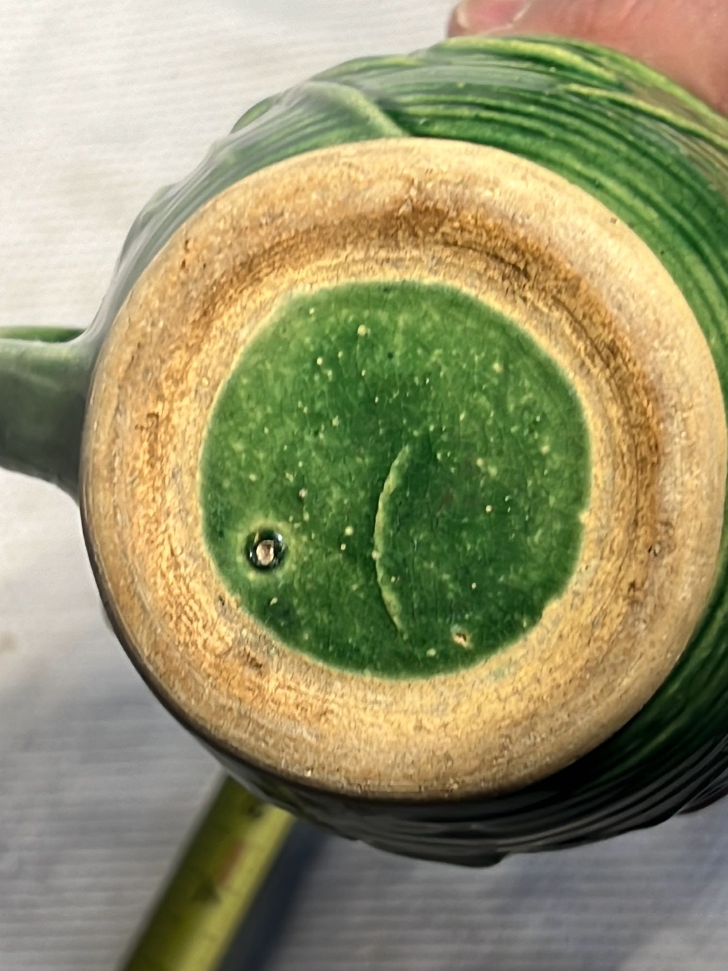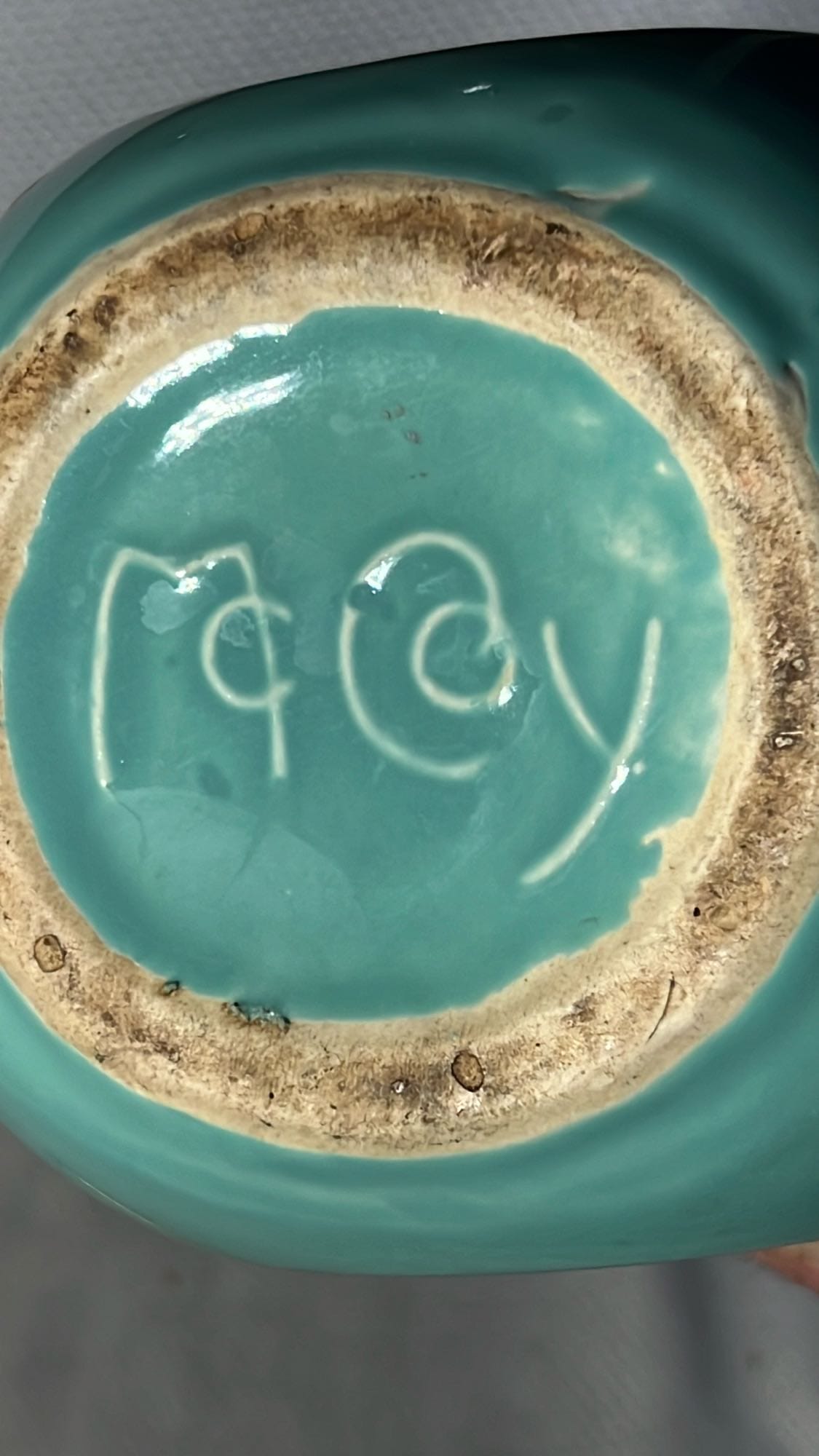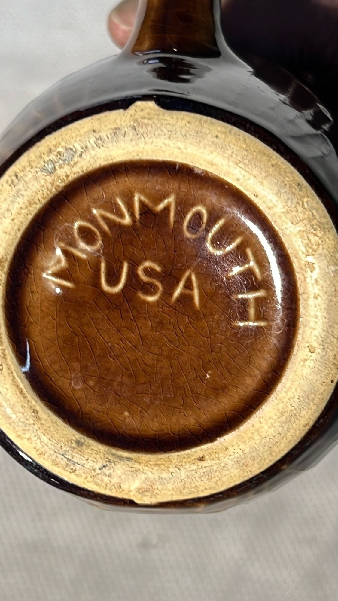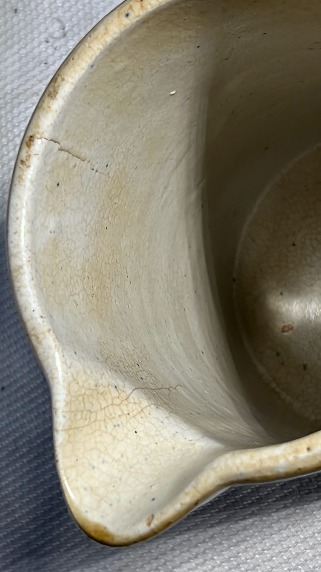 877 Stoneware Crock Bowl/Planter 4.75”, has small chip