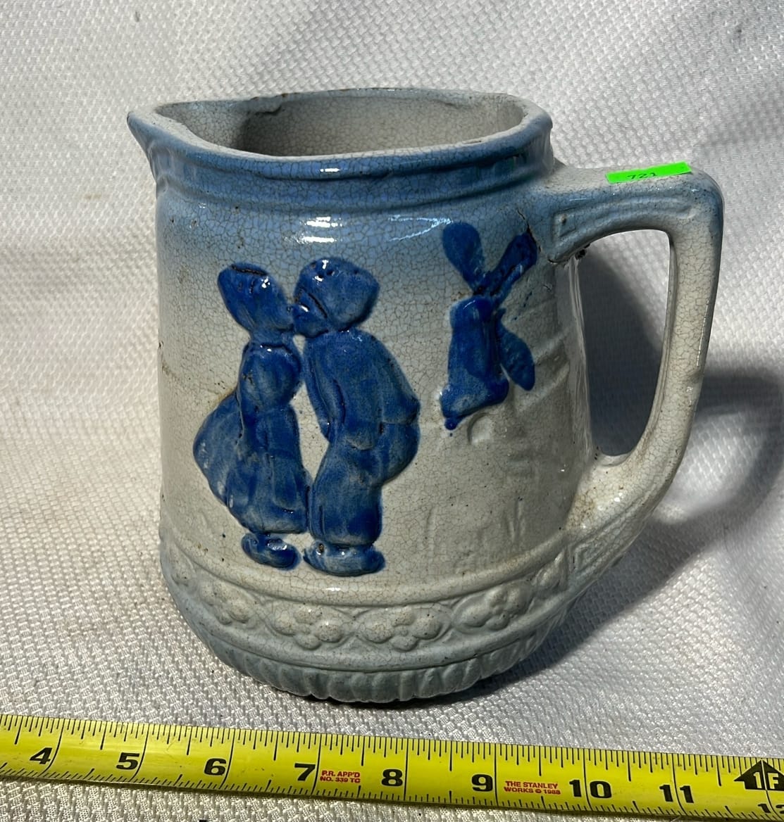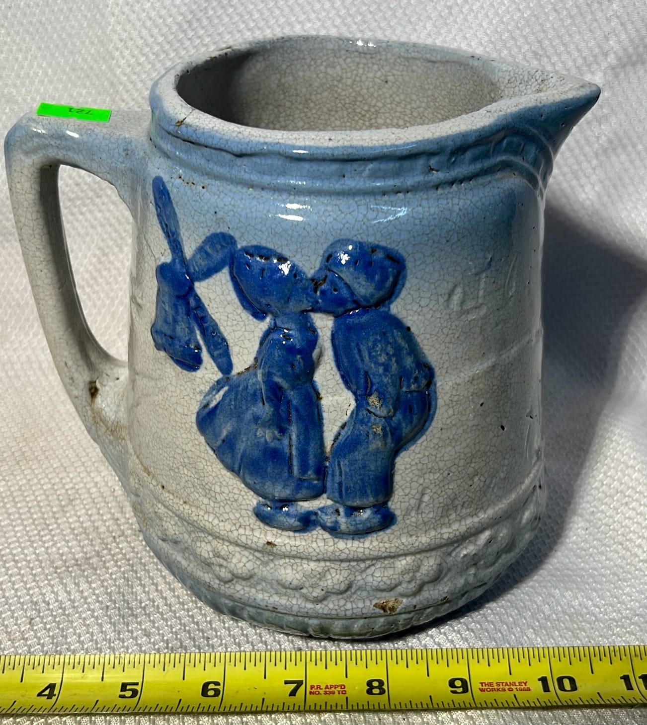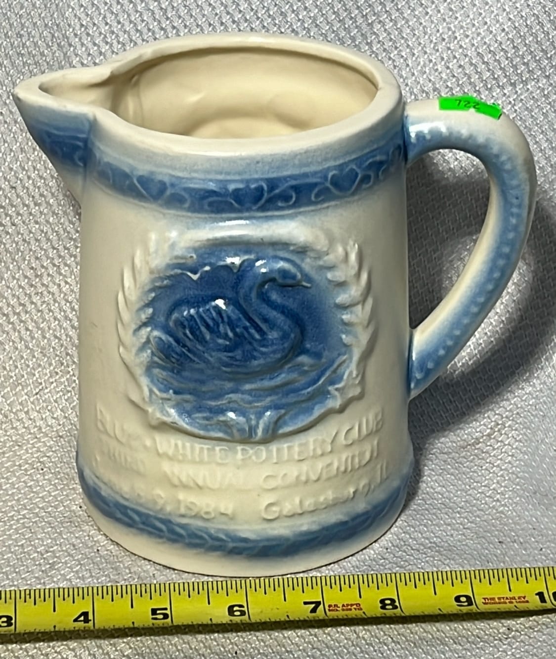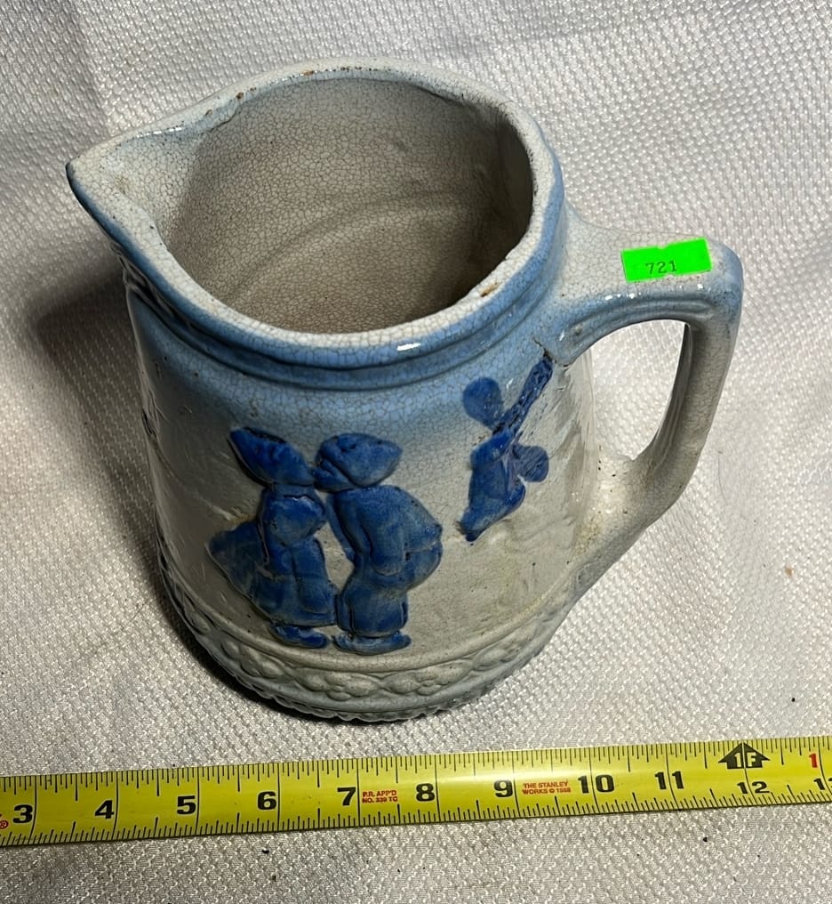 891 Longaberger Pottery large Blue Milk Pitcher 8”