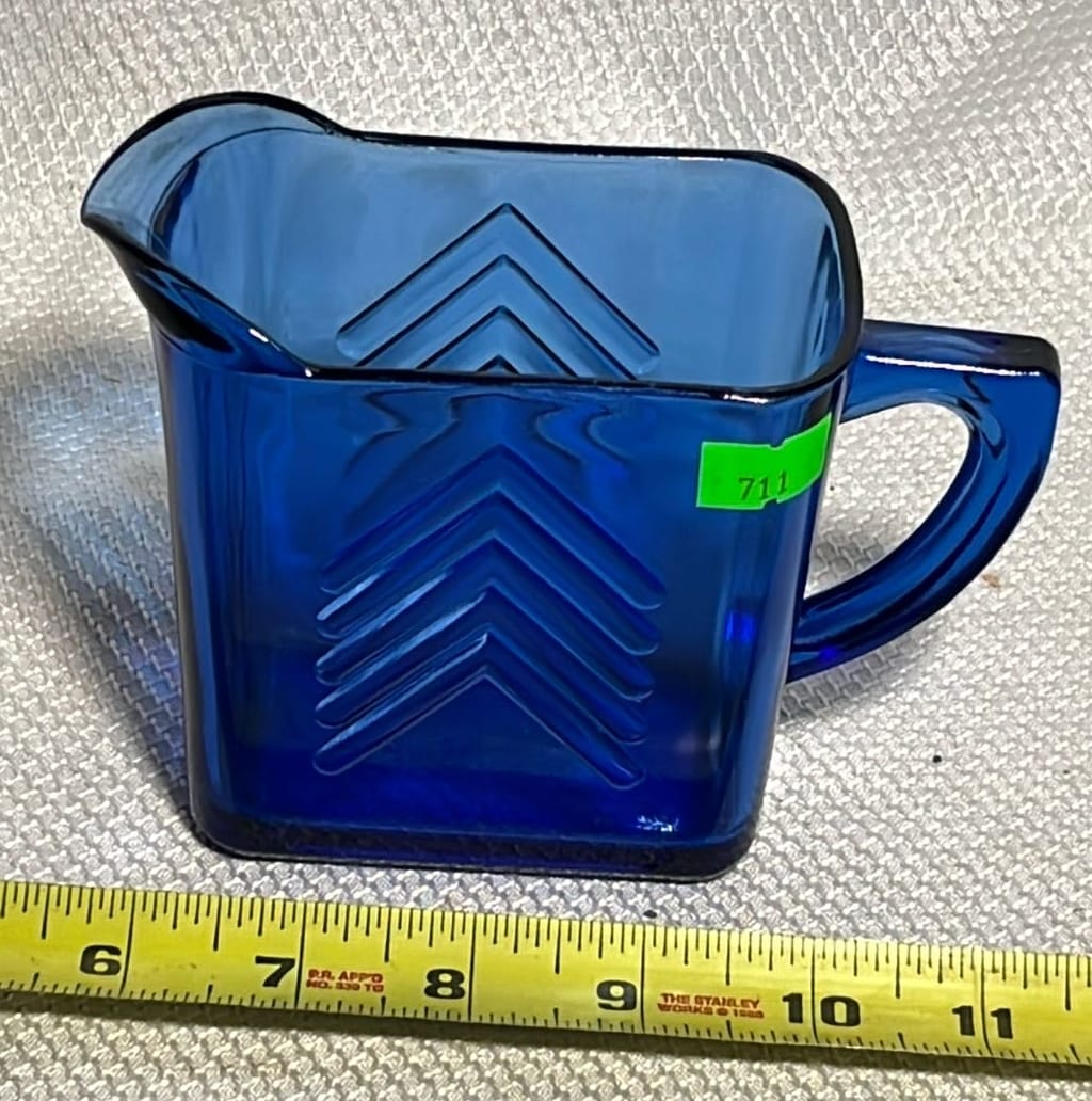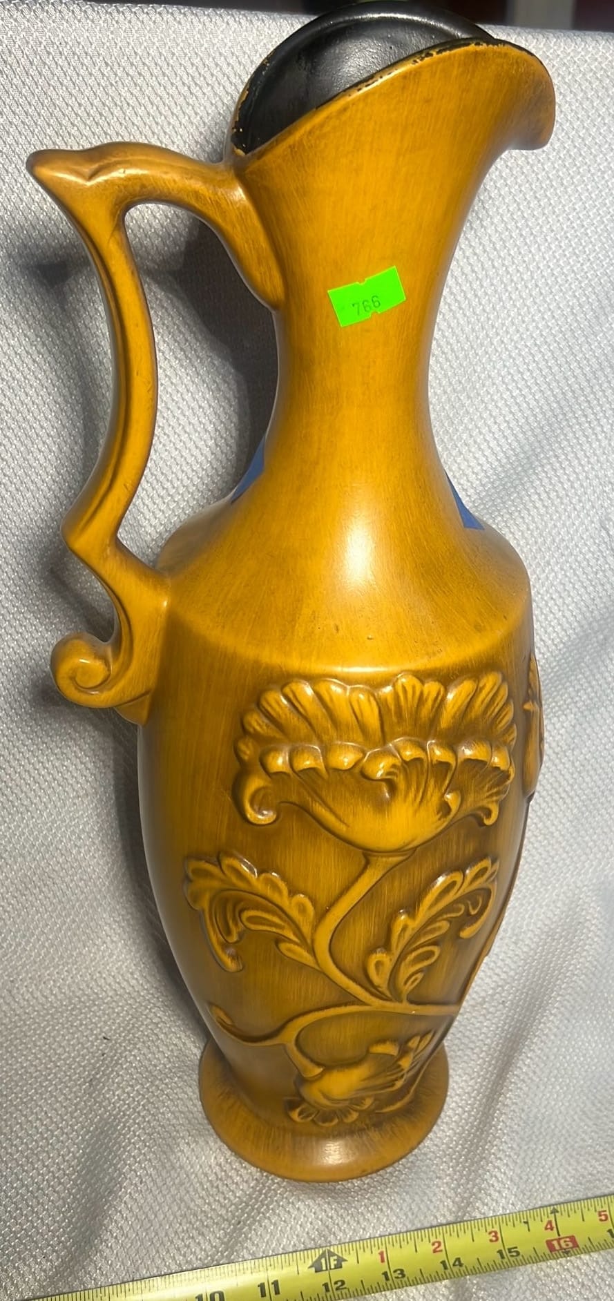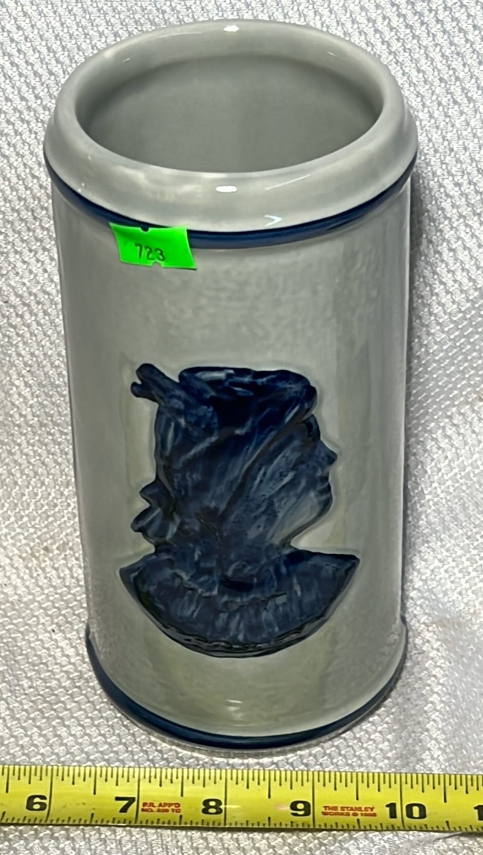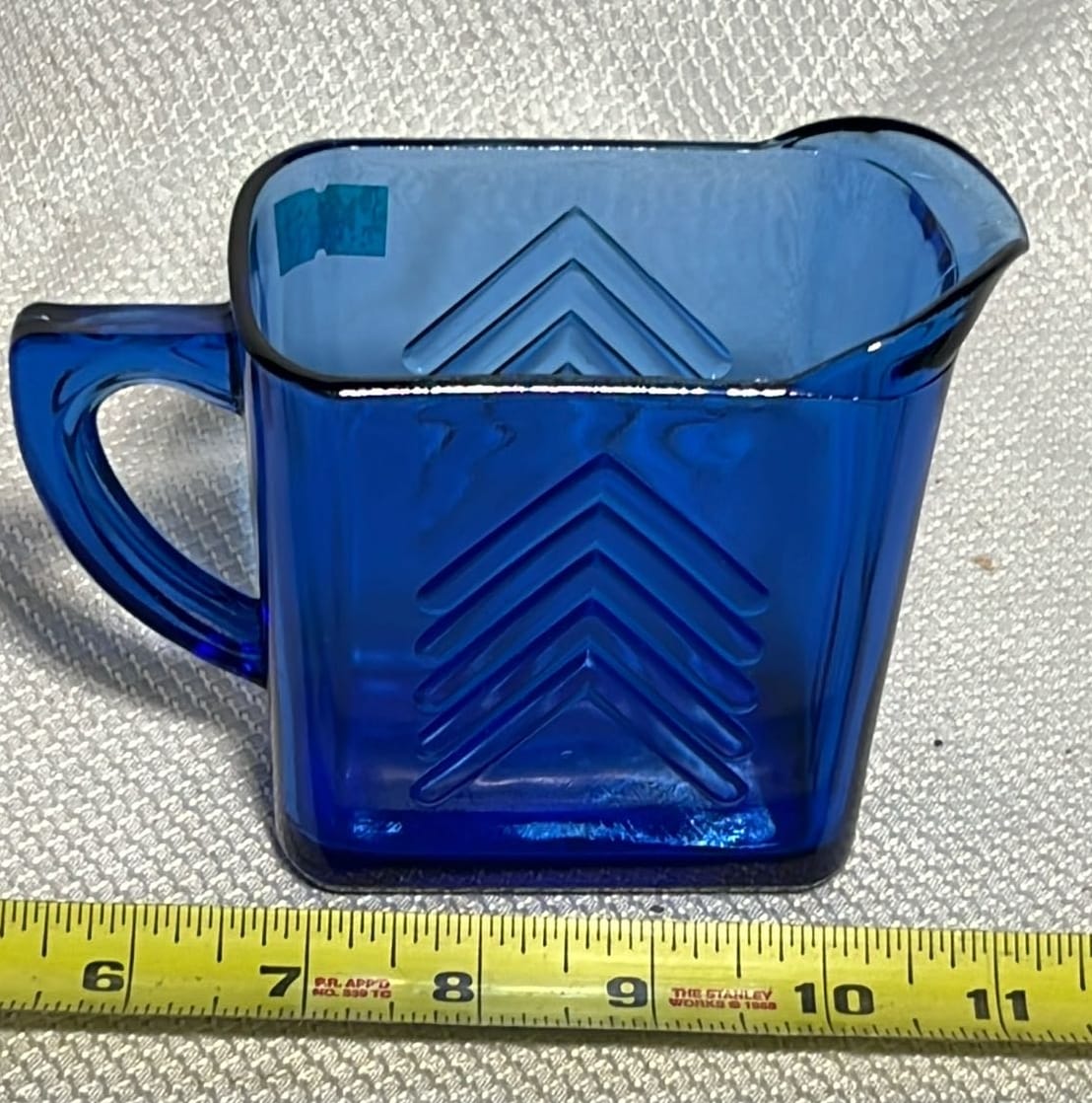 891 Longaberger Pottery large Blue Milk Pitcher 8”
