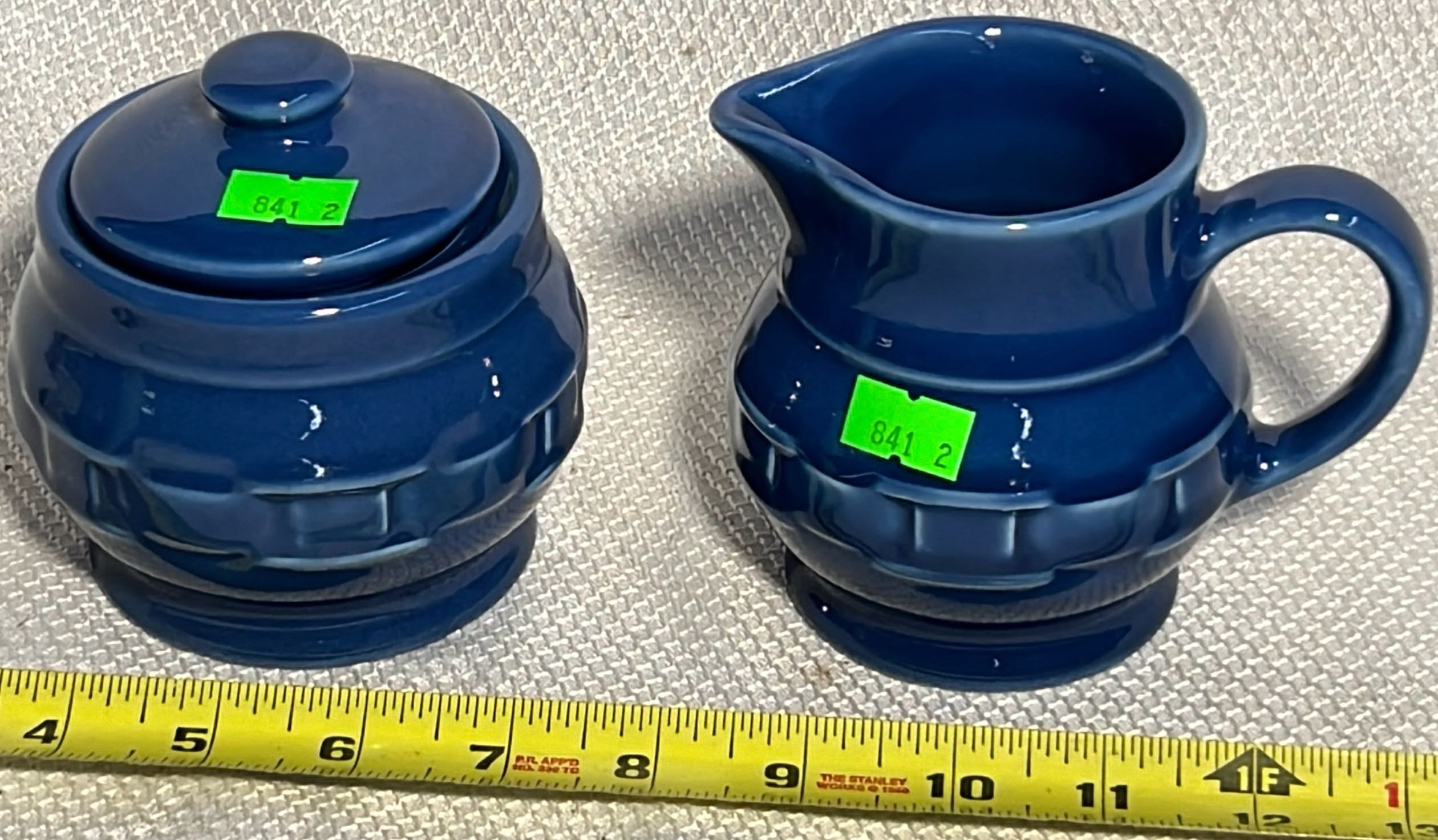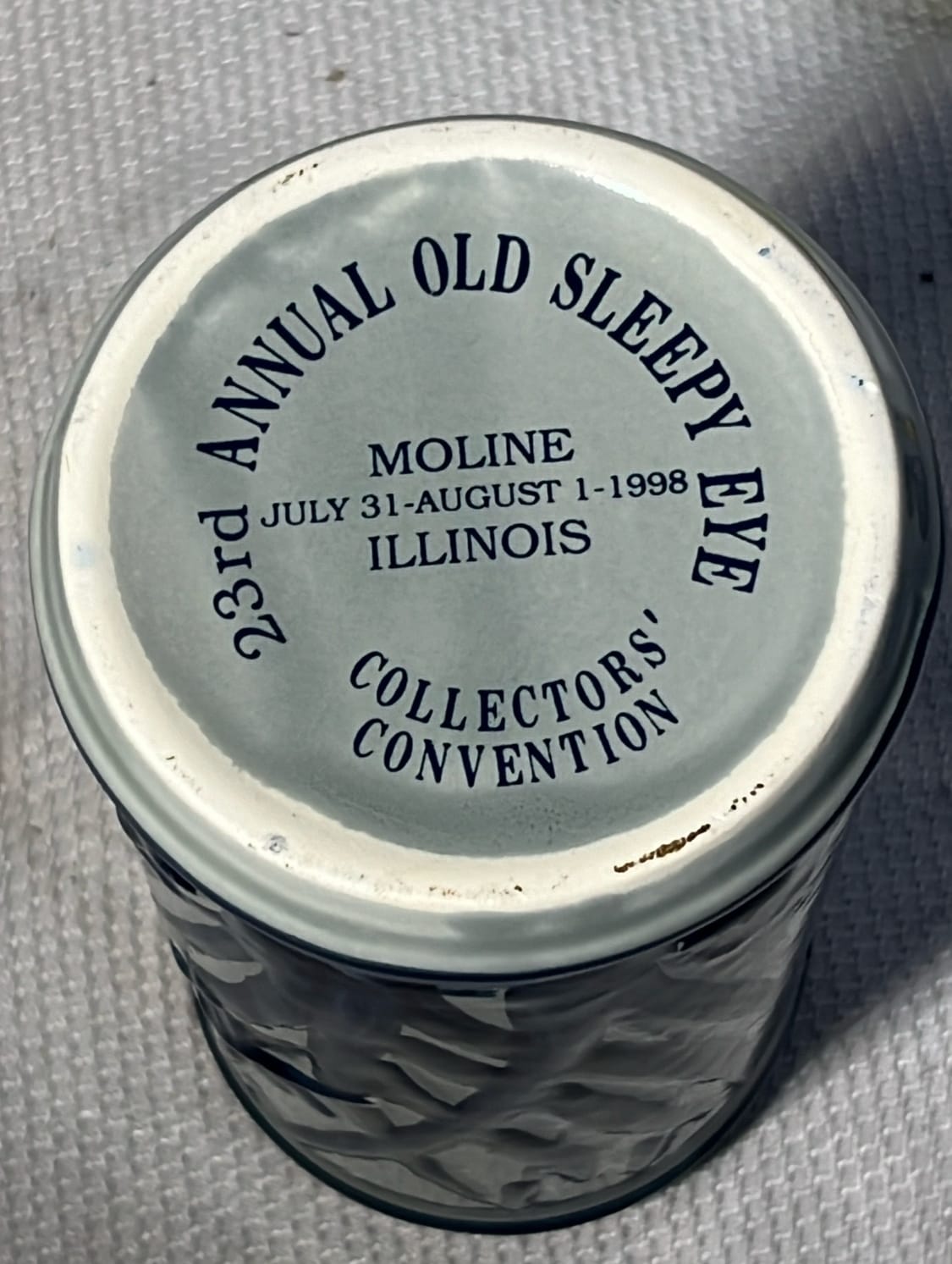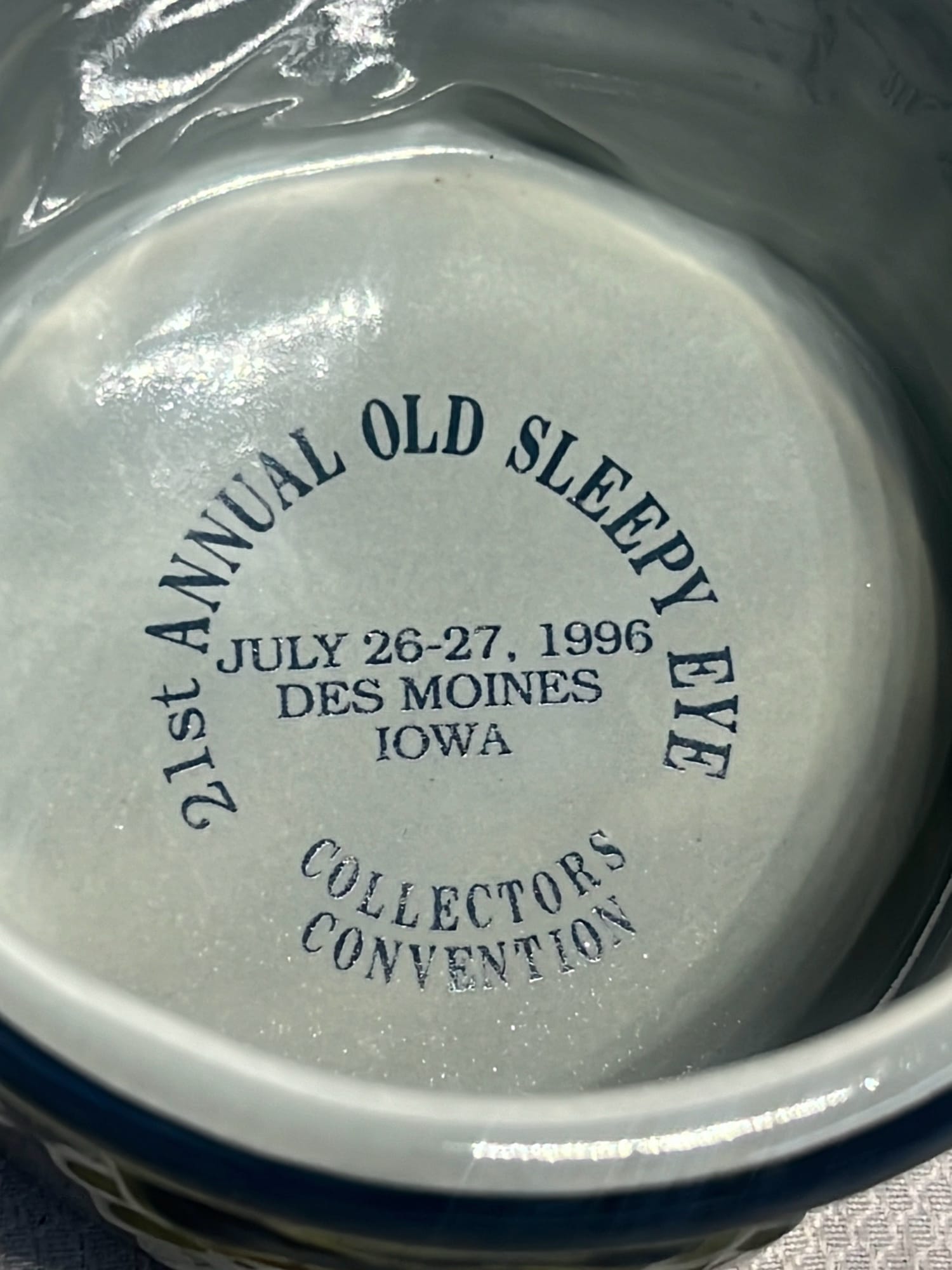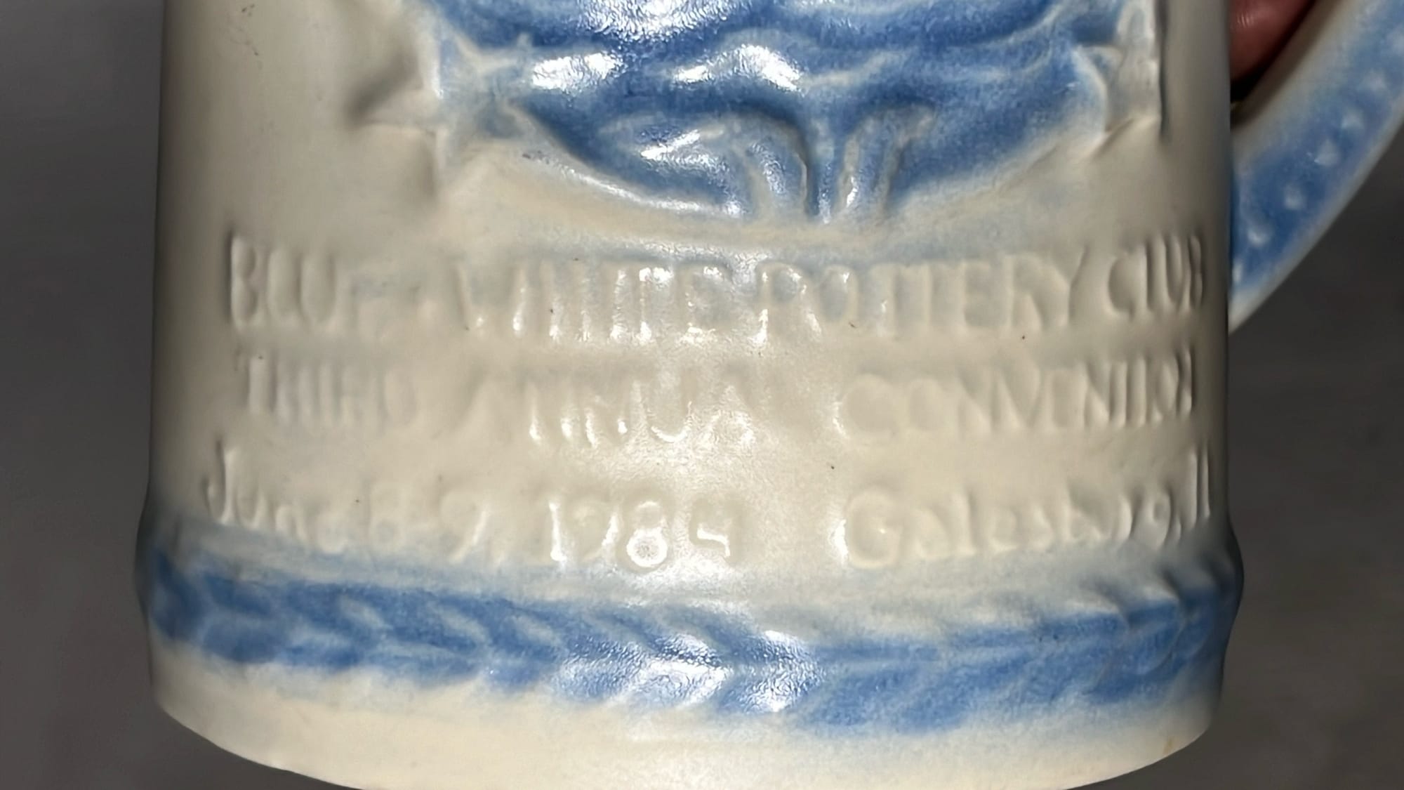 891 Longaberger Pottery large Blue Milk Pitcher 8”