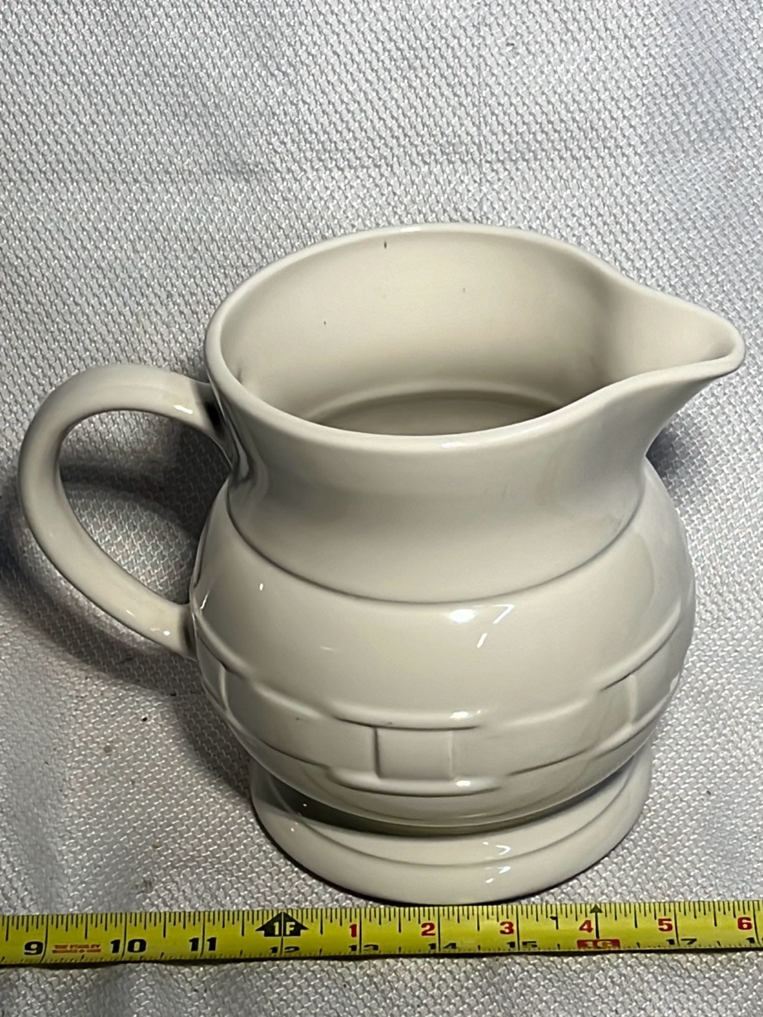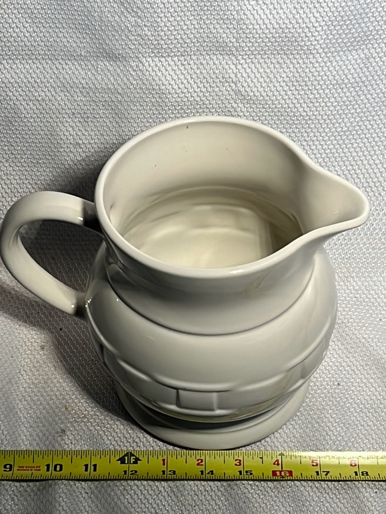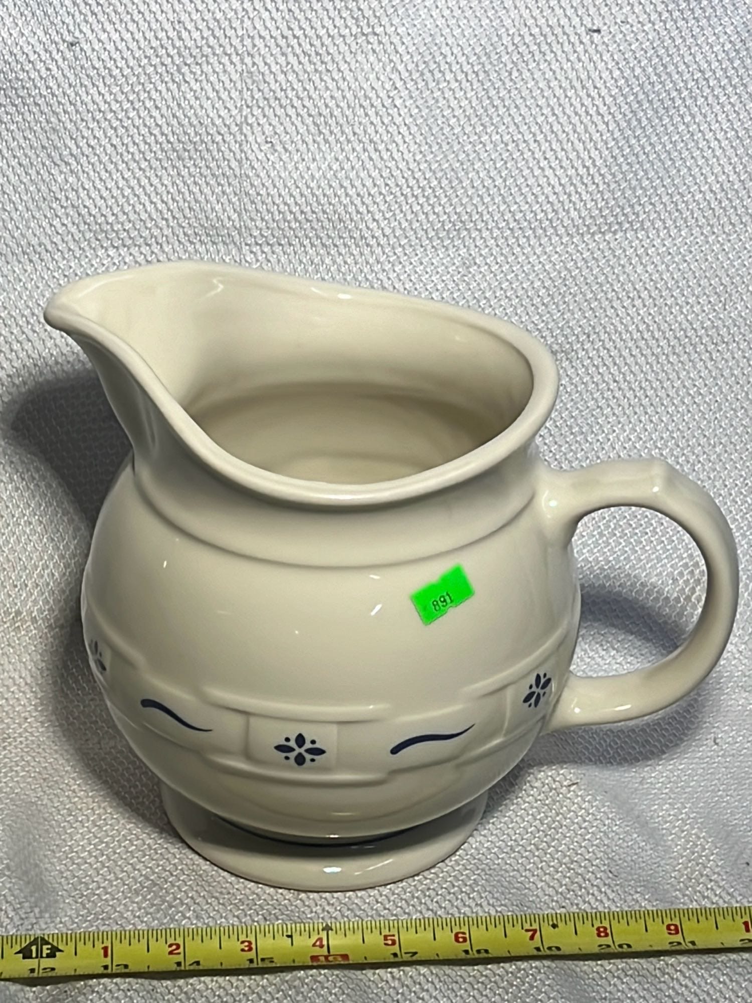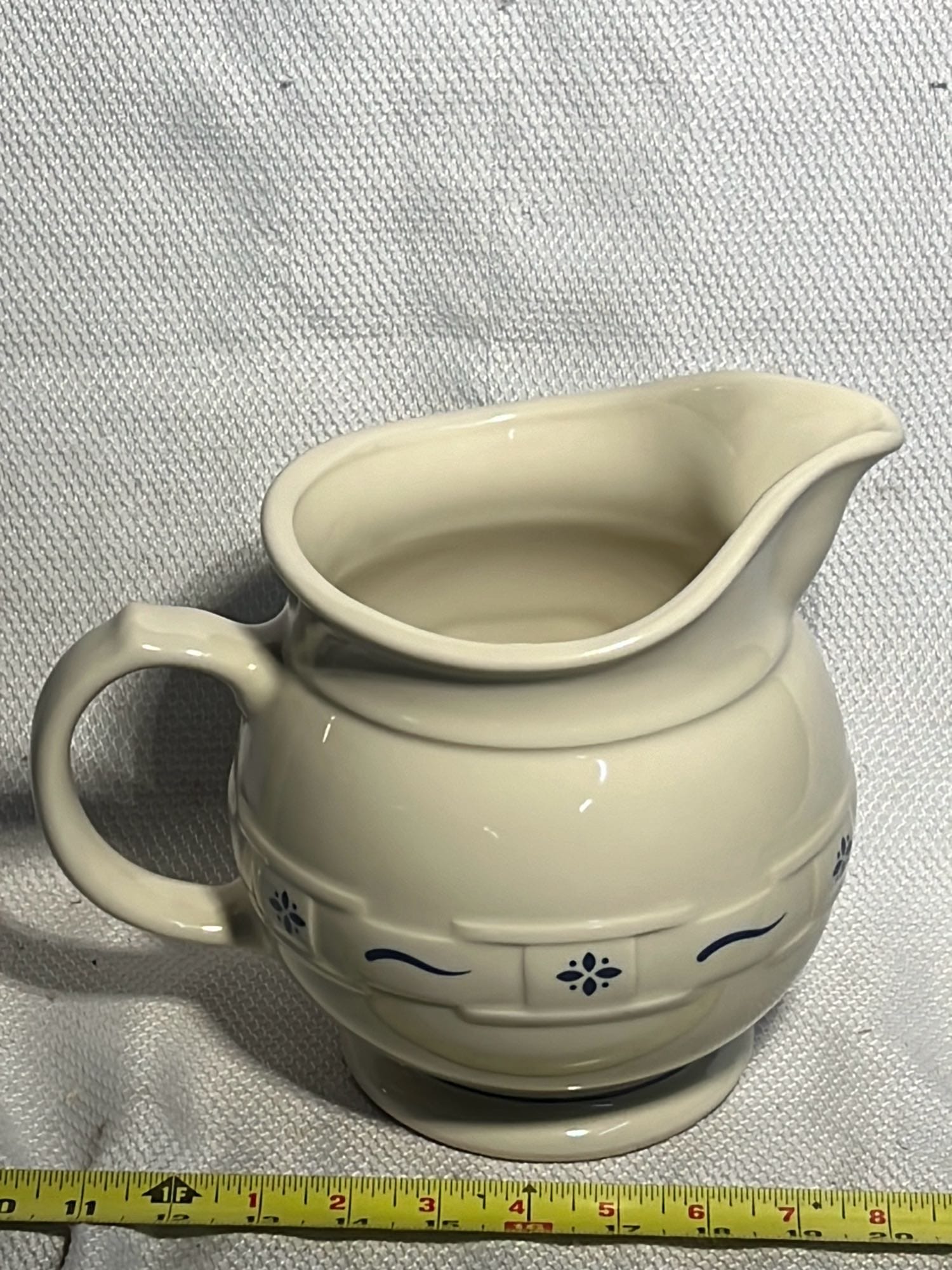 890 Longaberger Potttery large Ivory woven Traditions Milk Pitcher 7.5”