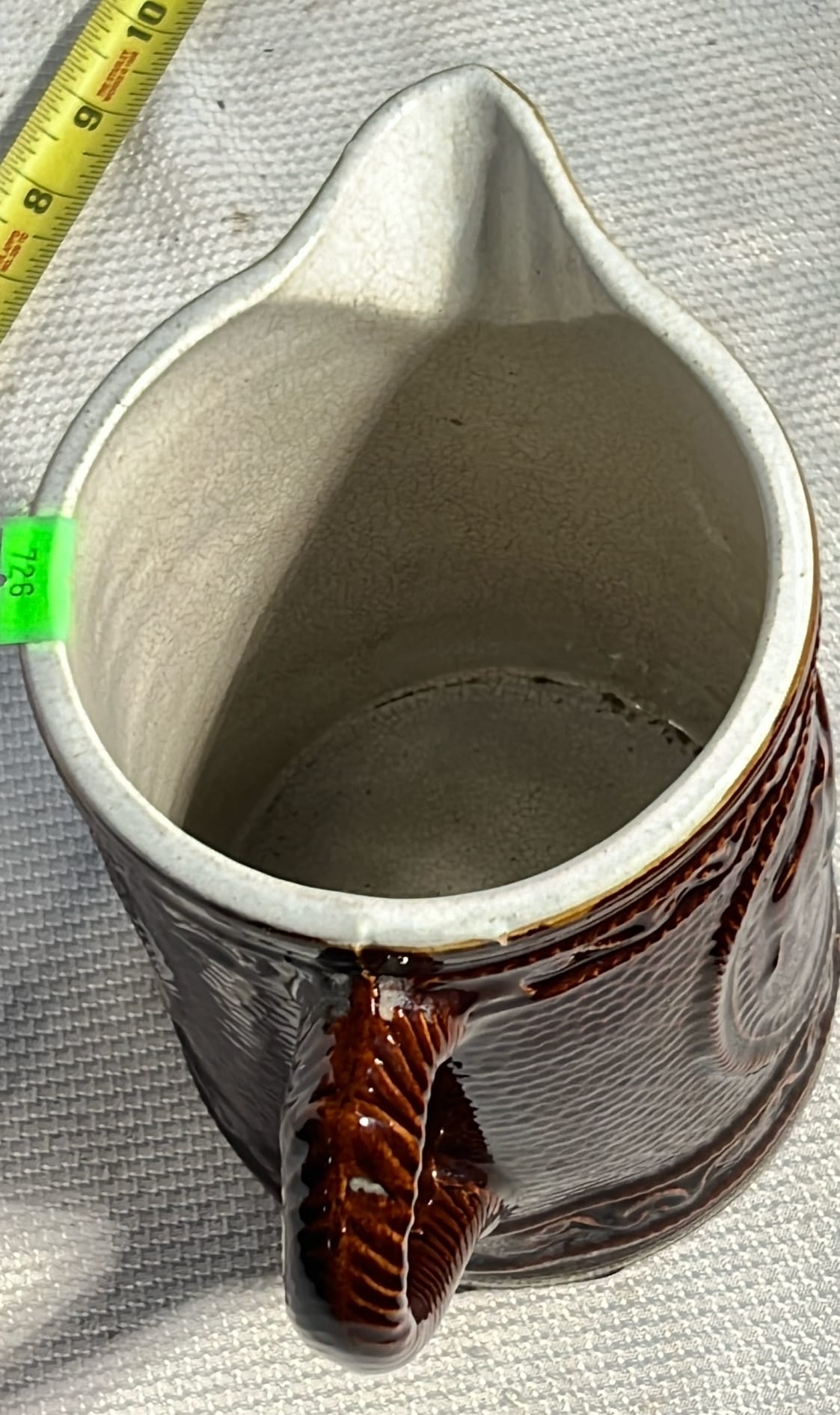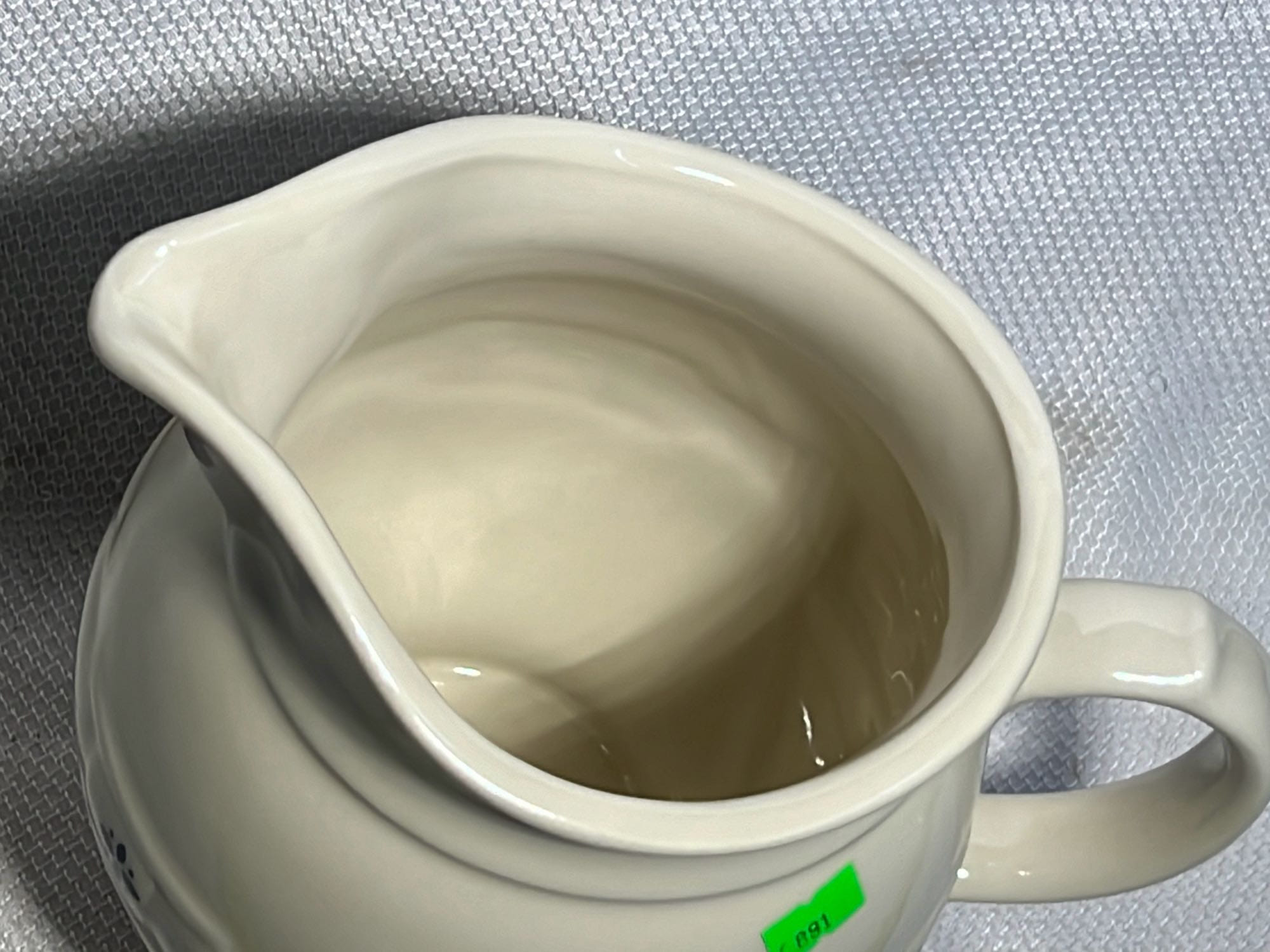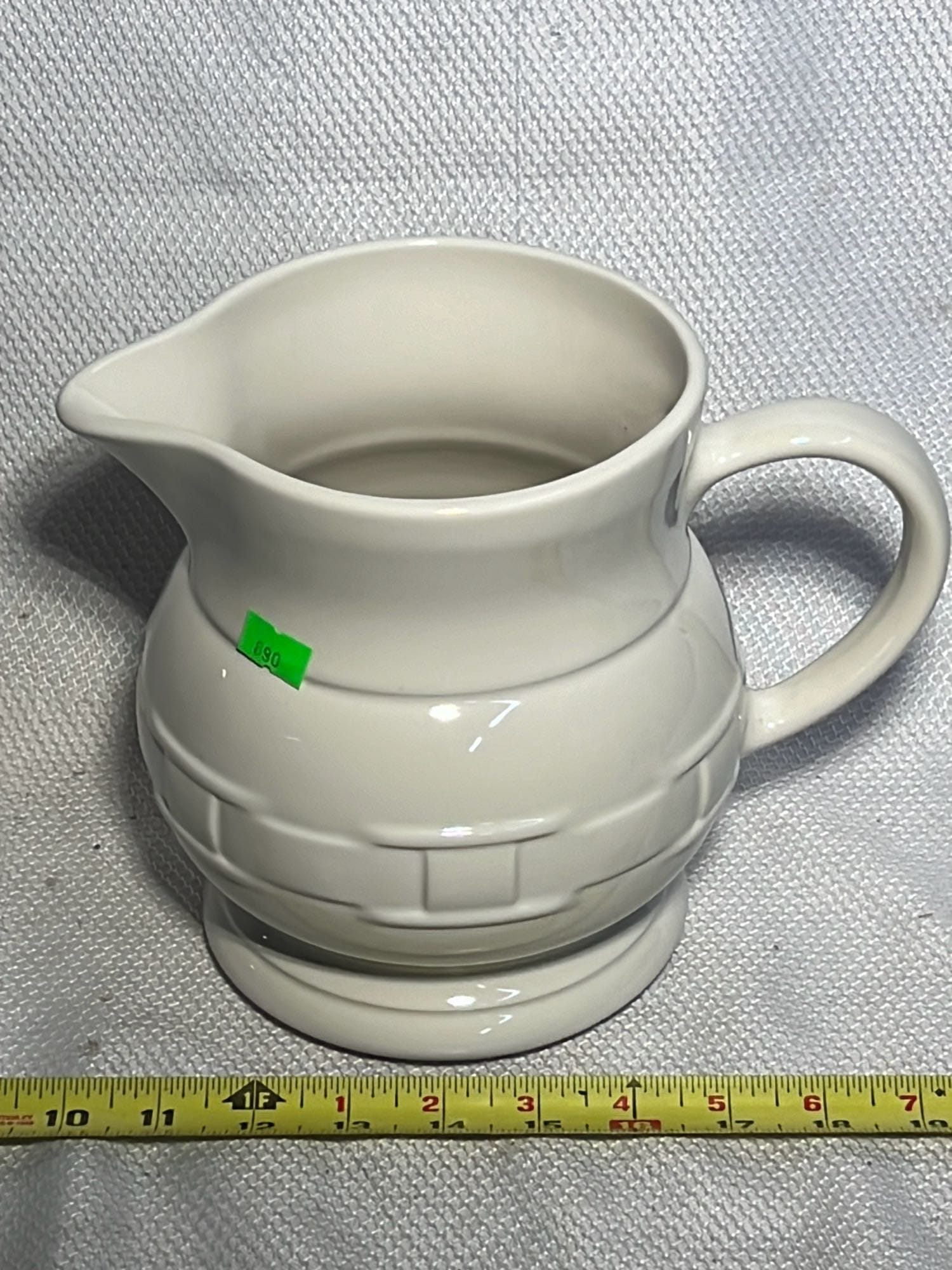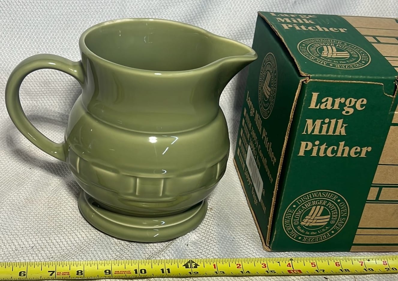 890 Longaberger Potttery large Ivory woven Traditions Milk Pitcher 7.5”