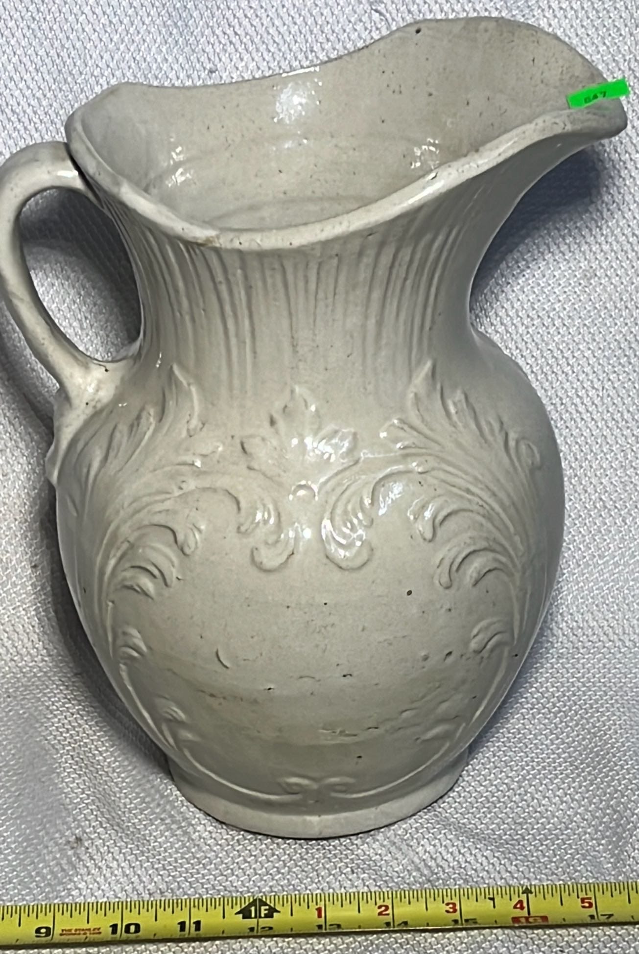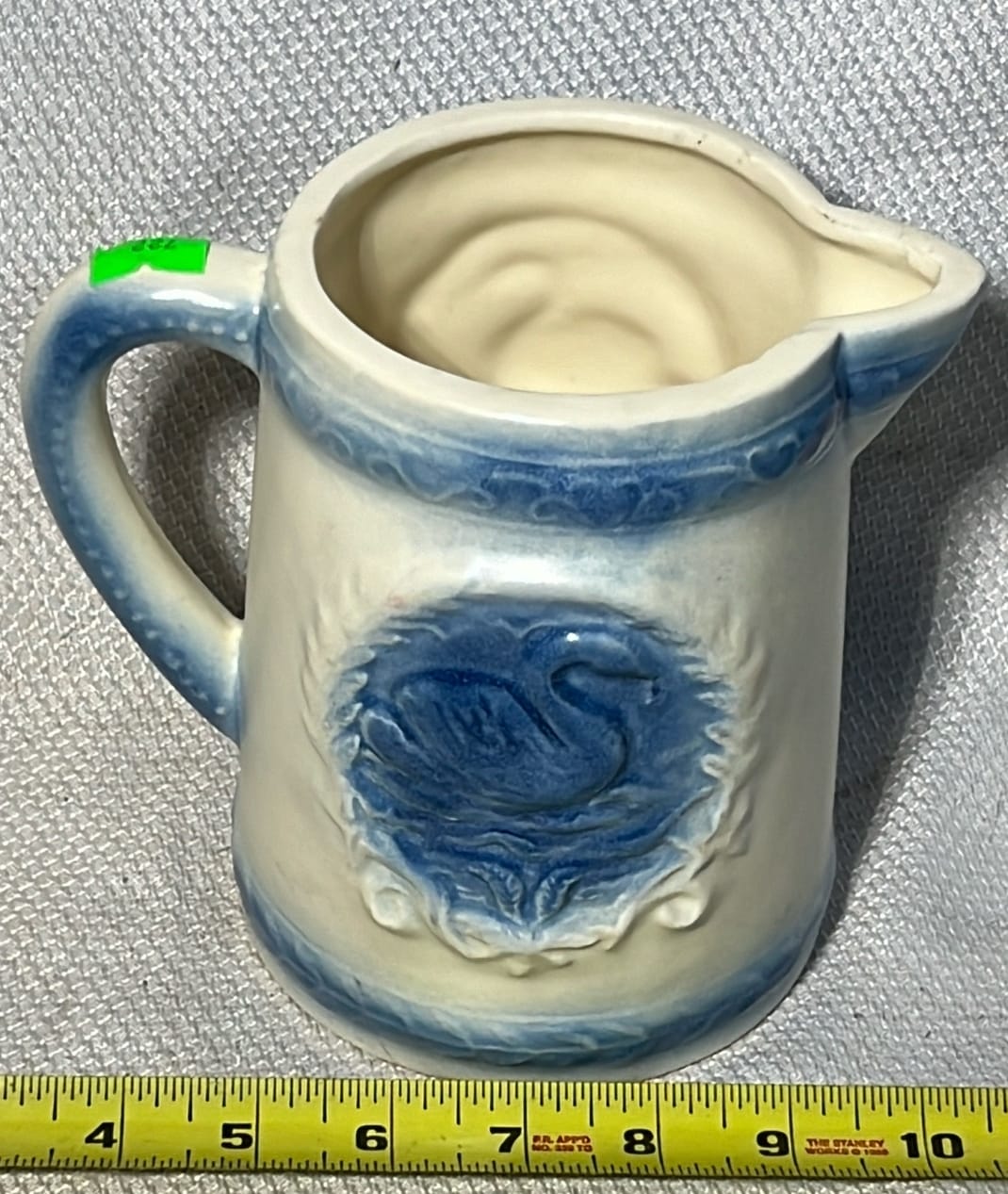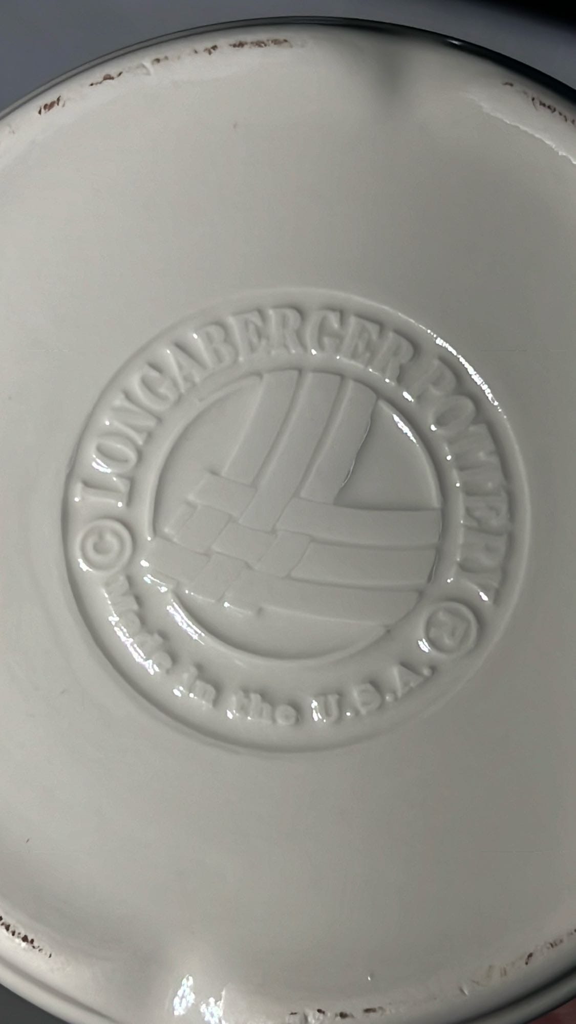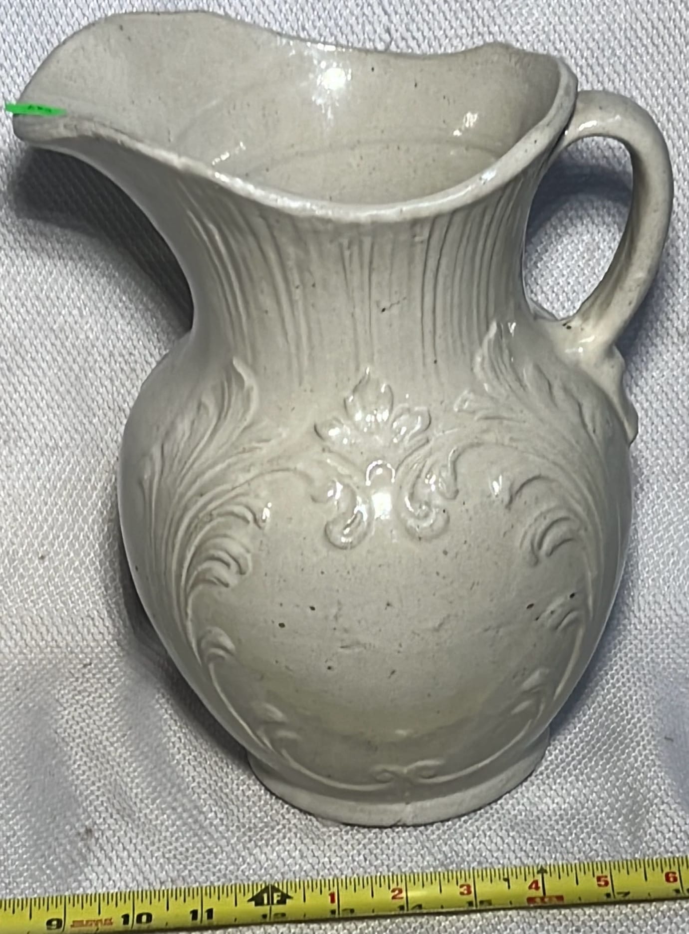 890 Longaberger Potttery large Ivory woven Traditions Milk Pitcher 7.5”