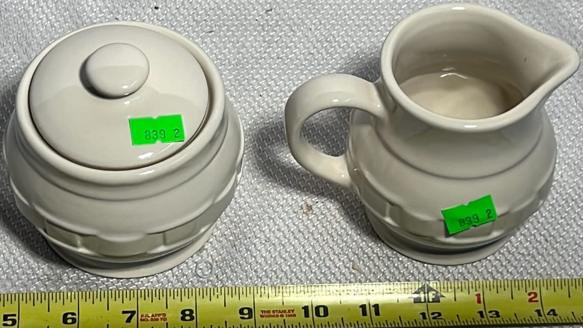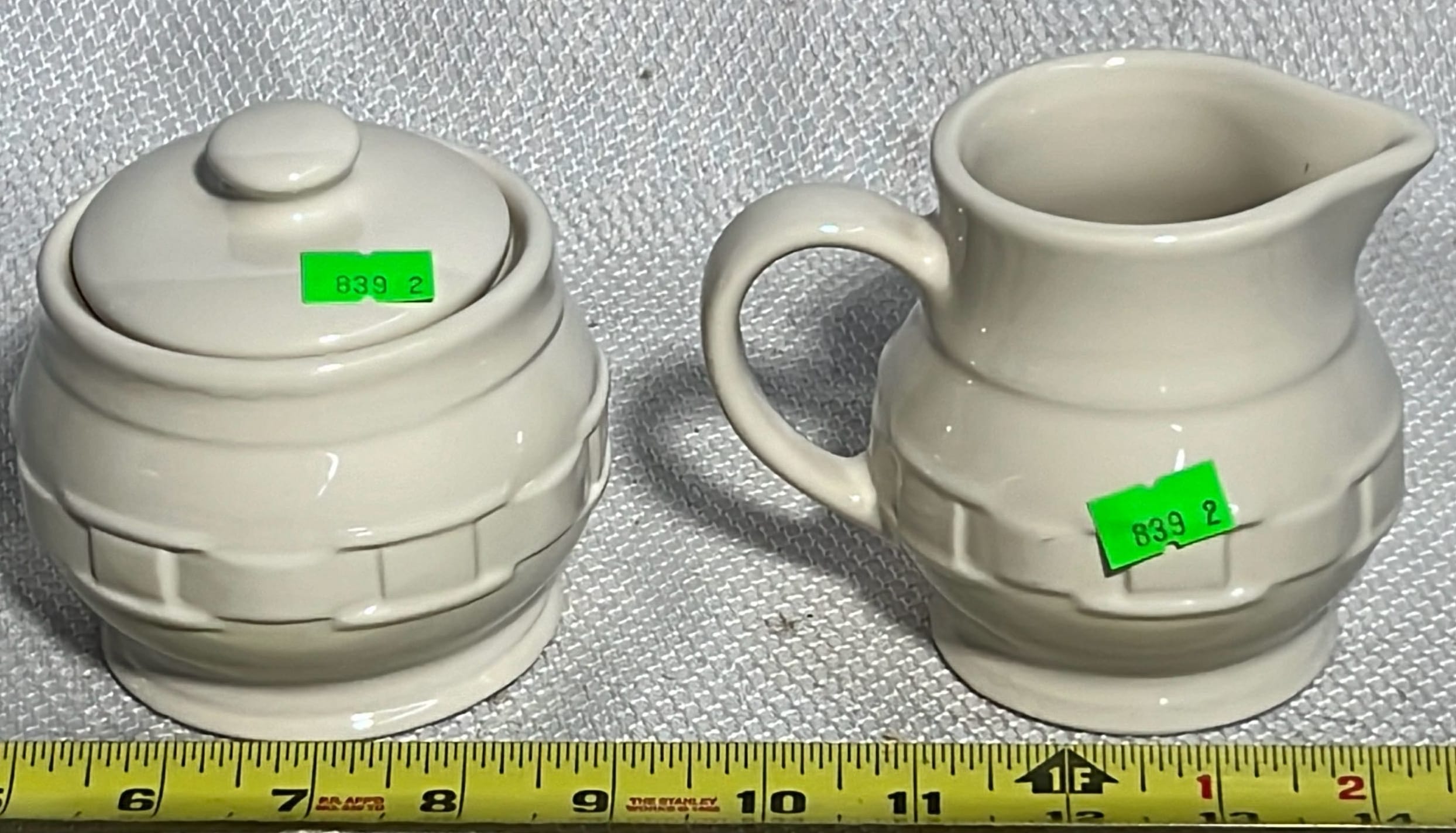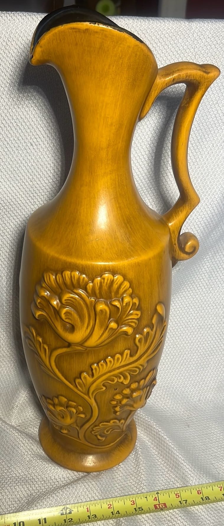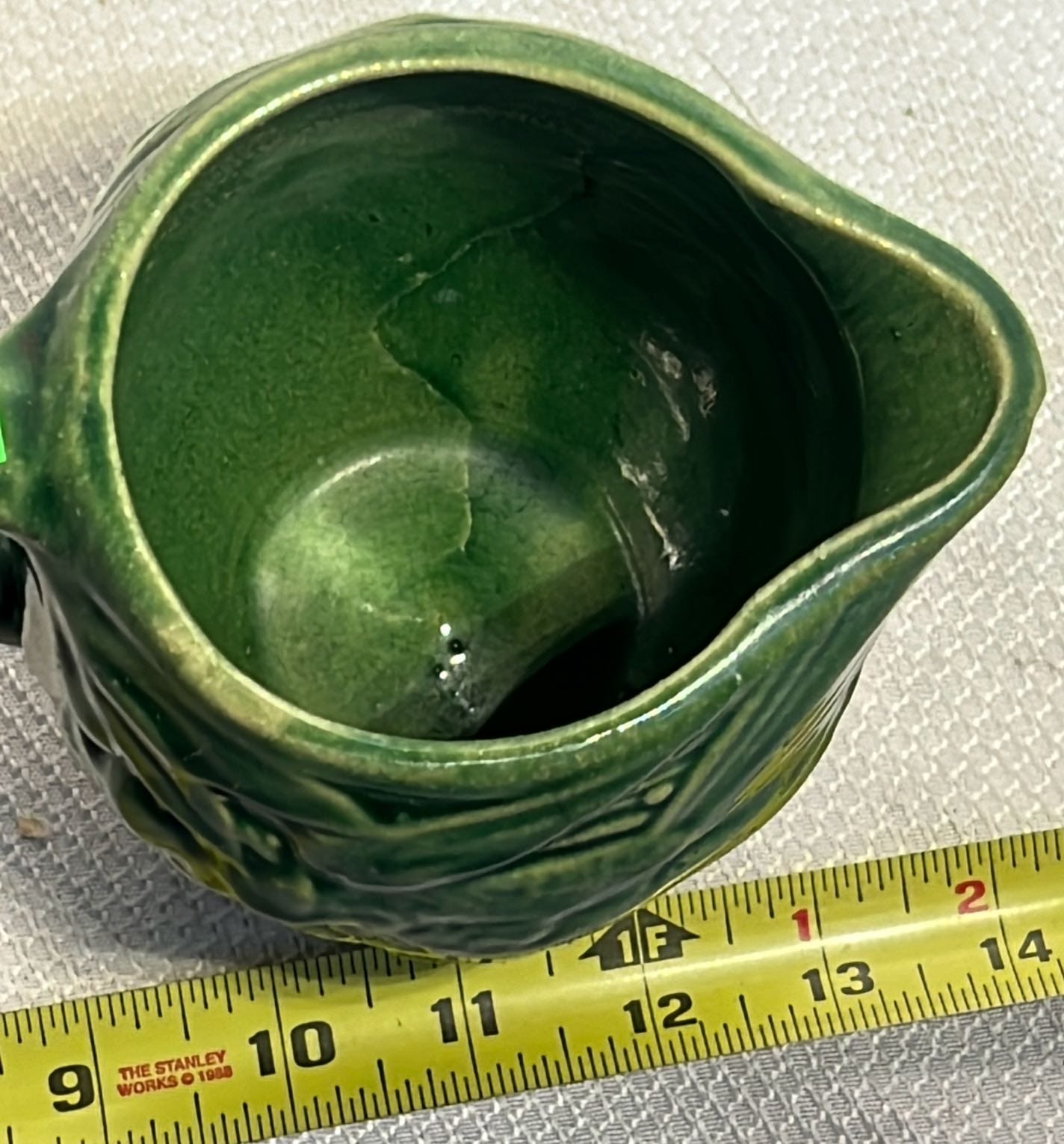 890 Longaberger Potttery large Ivory woven Traditions Milk Pitcher 7.5”