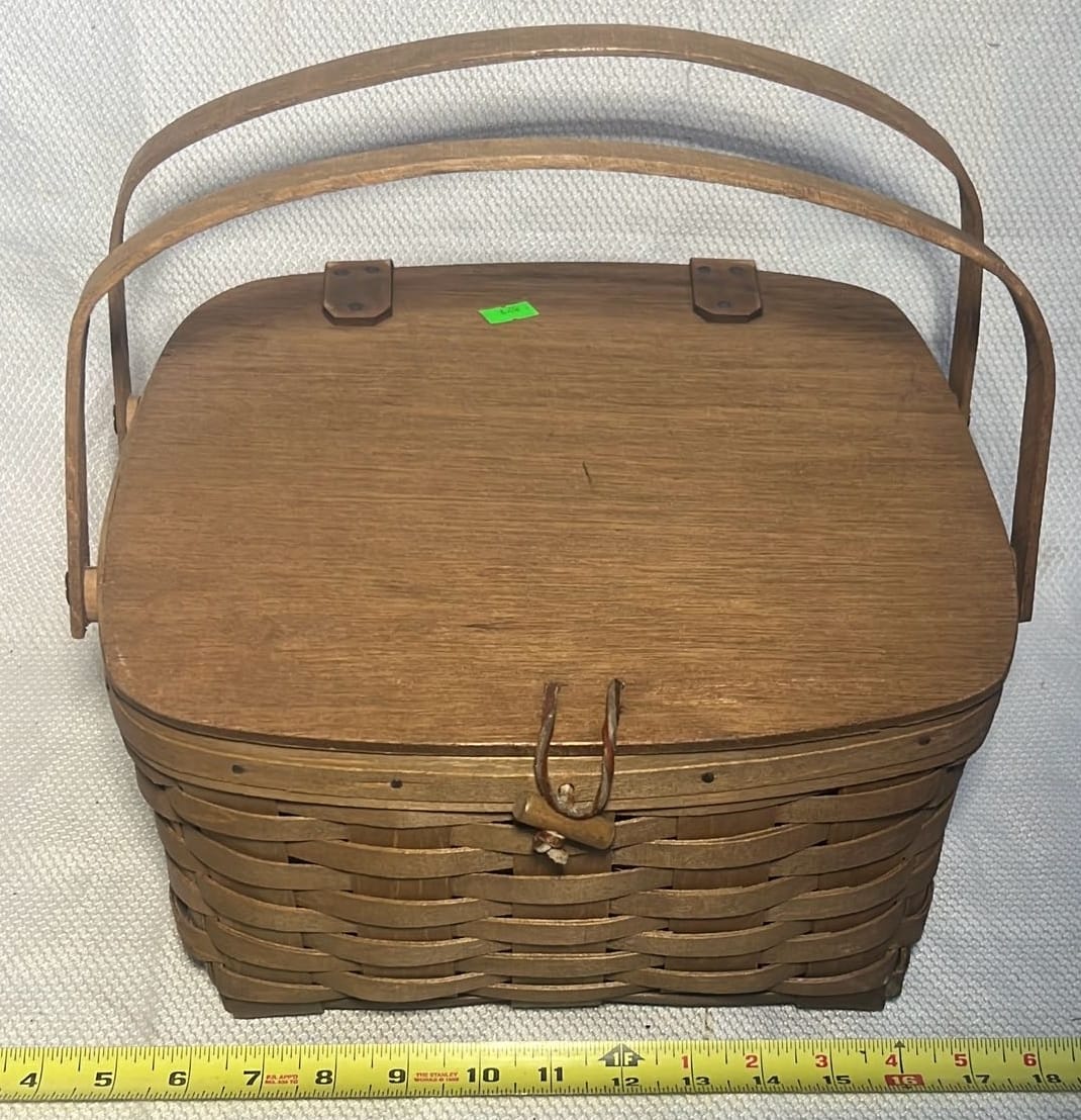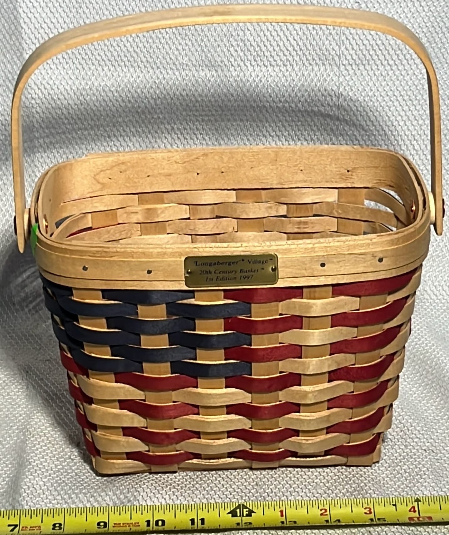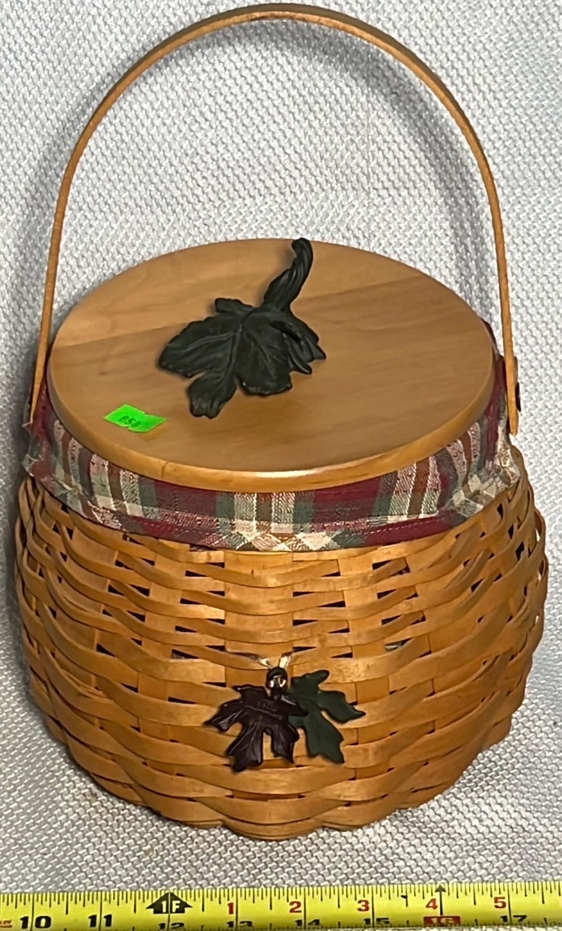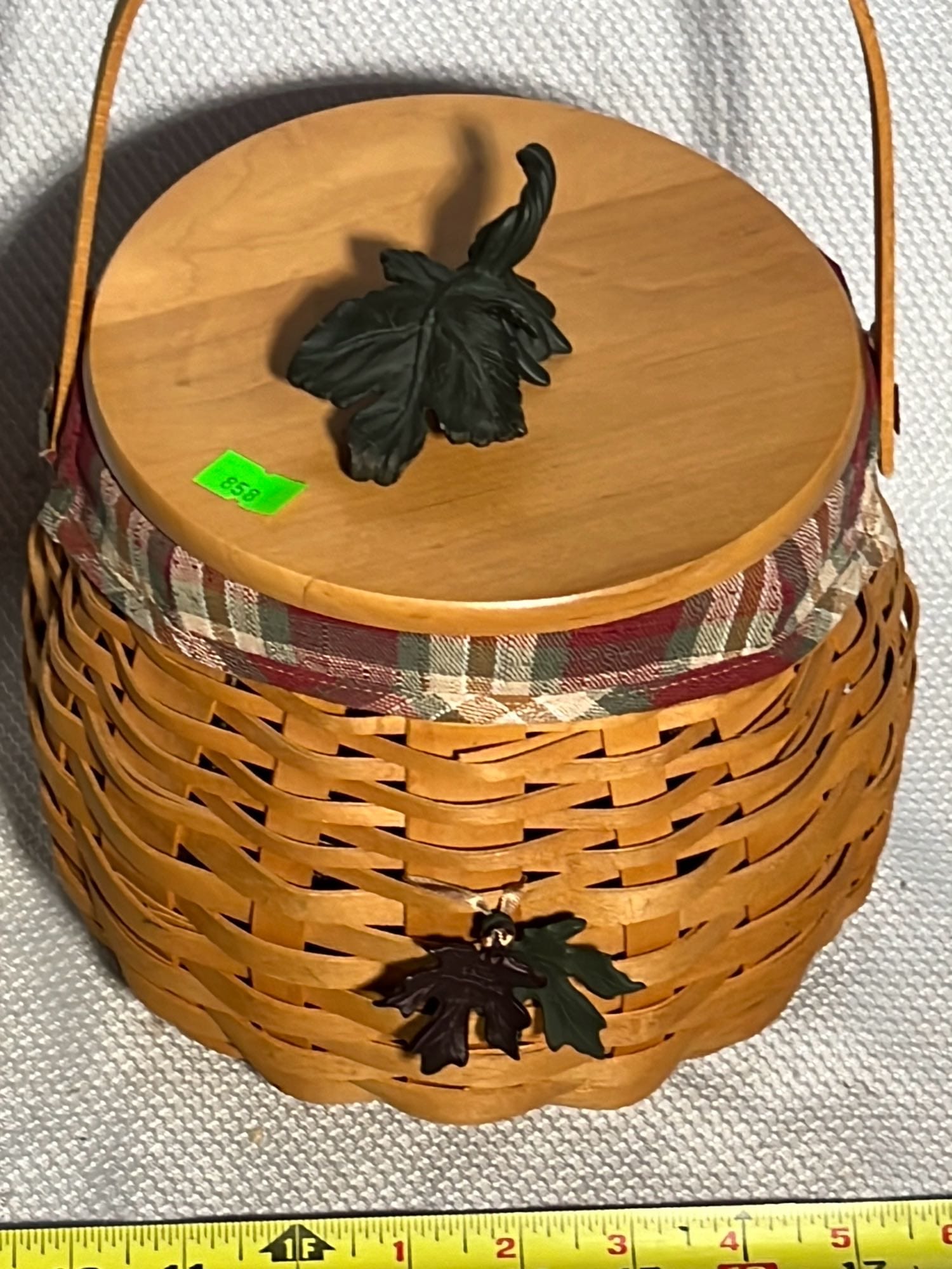 849 2000 Longaberger Century Celebration Basket with lid has metal leaf handle
