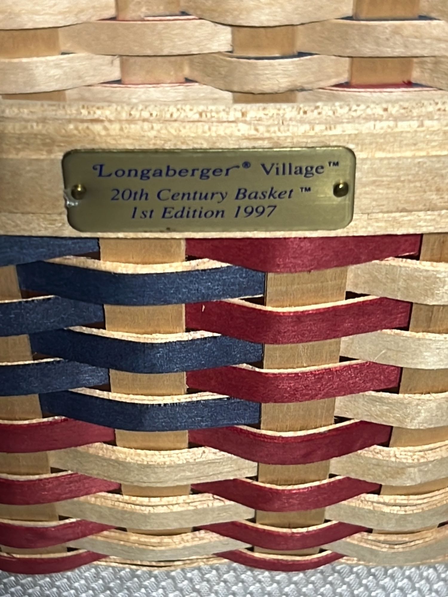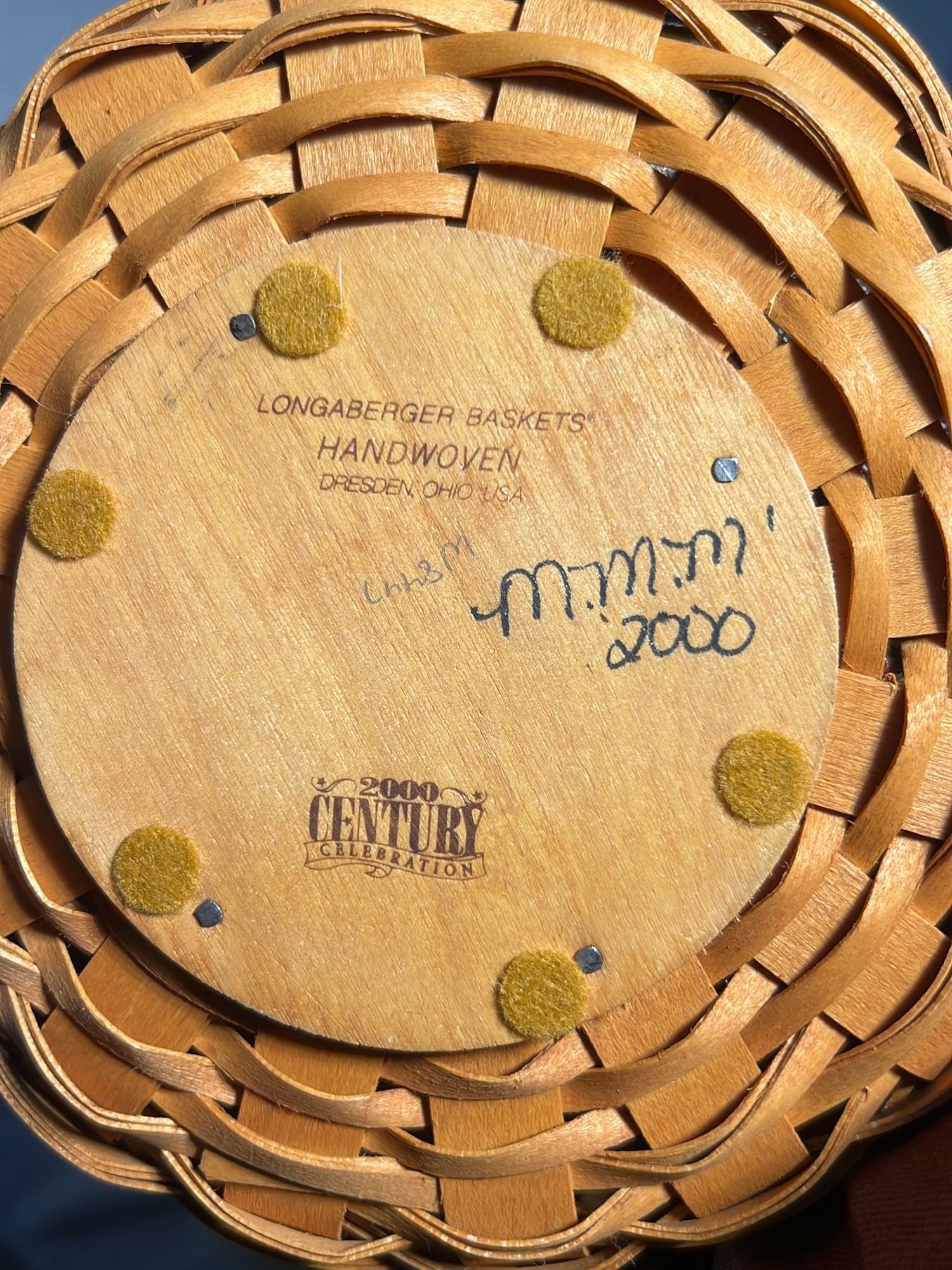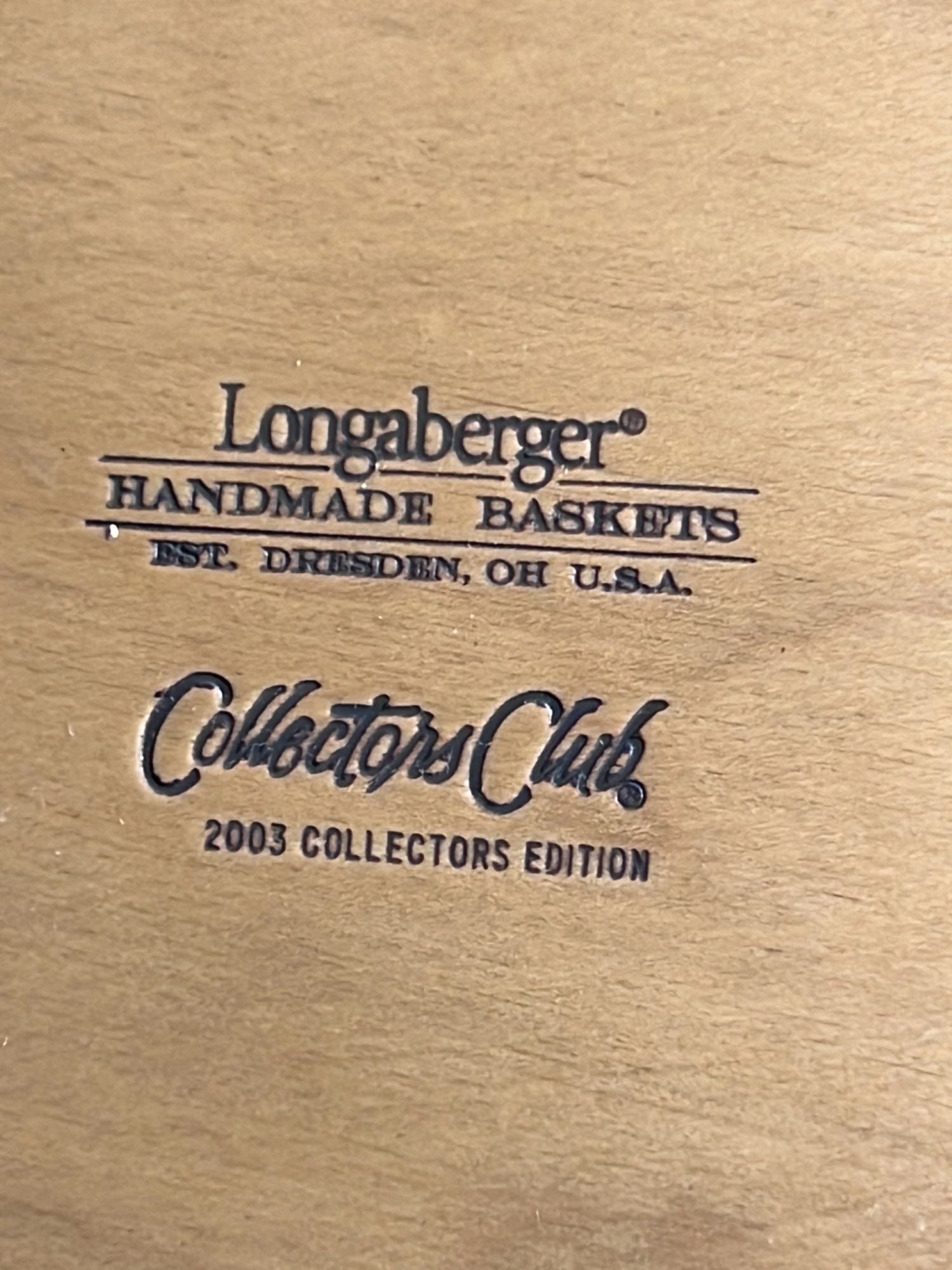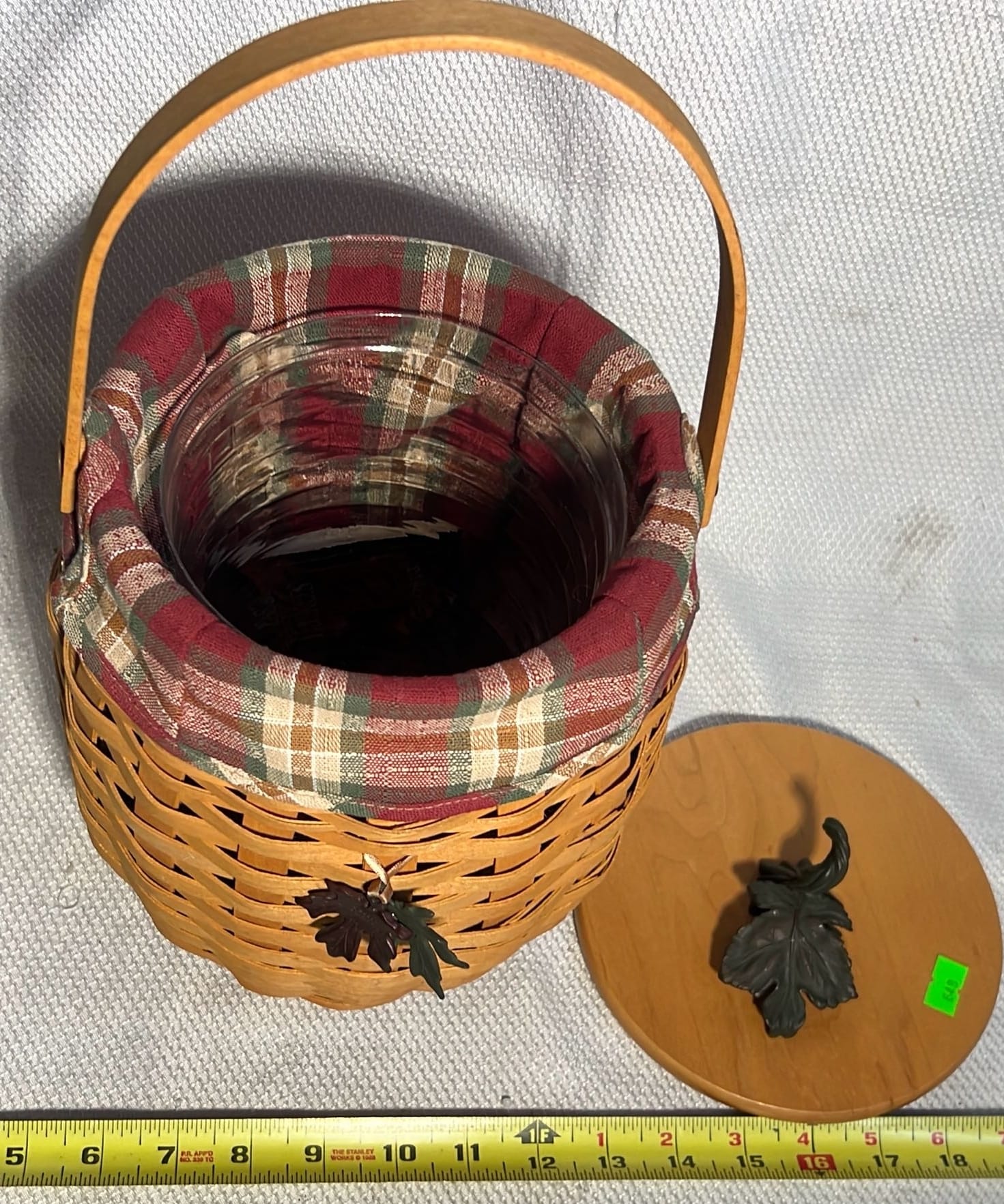 849 2000 Longaberger Century Celebration Basket with lid has metal leaf handle