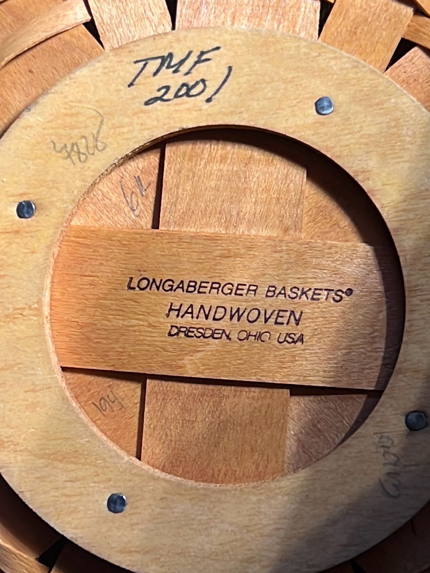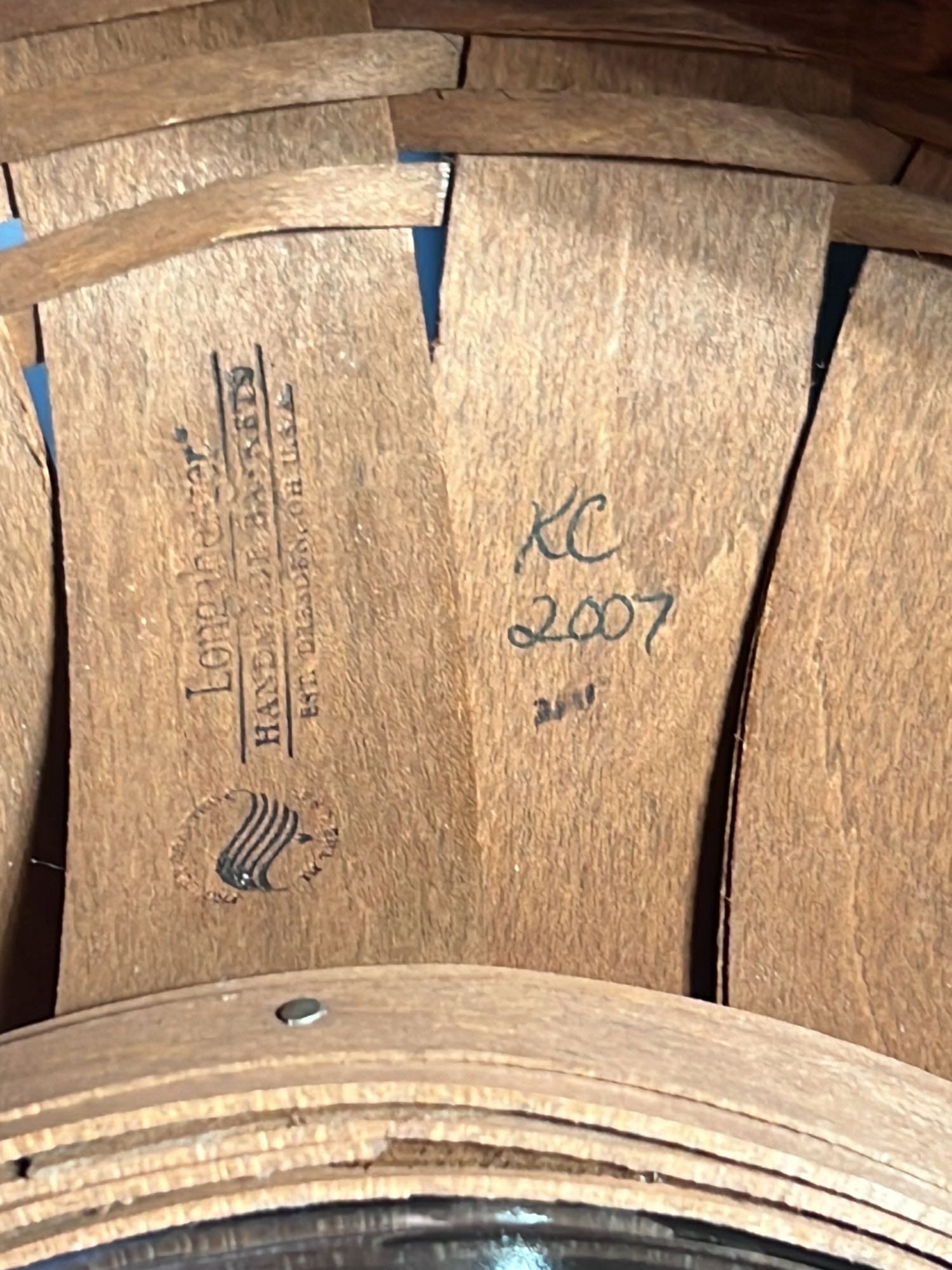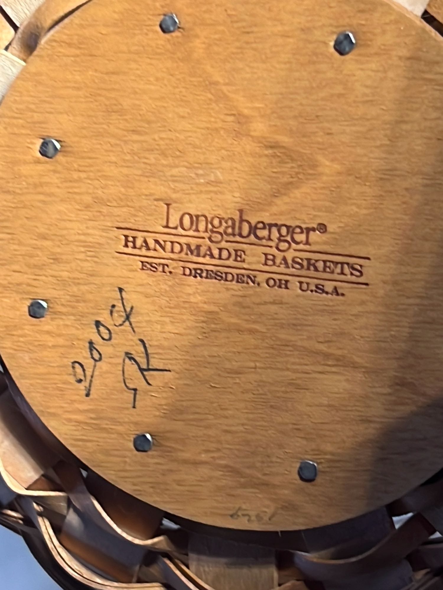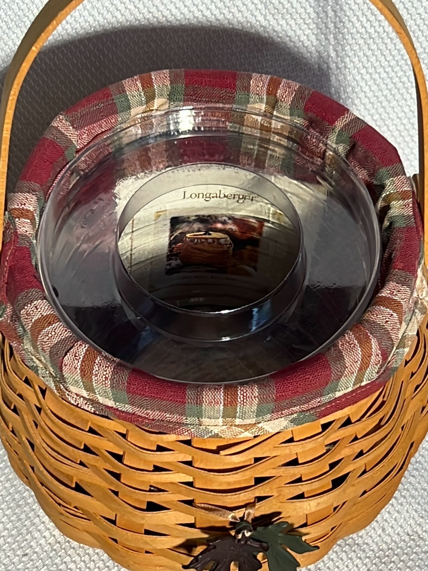 849 2000 Longaberger Century Celebration Basket with lid has metal leaf handle