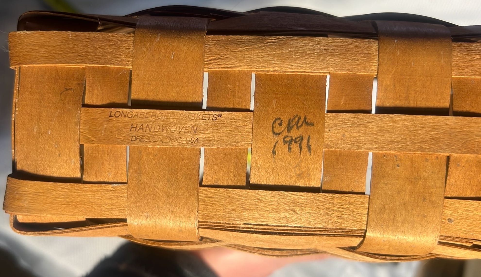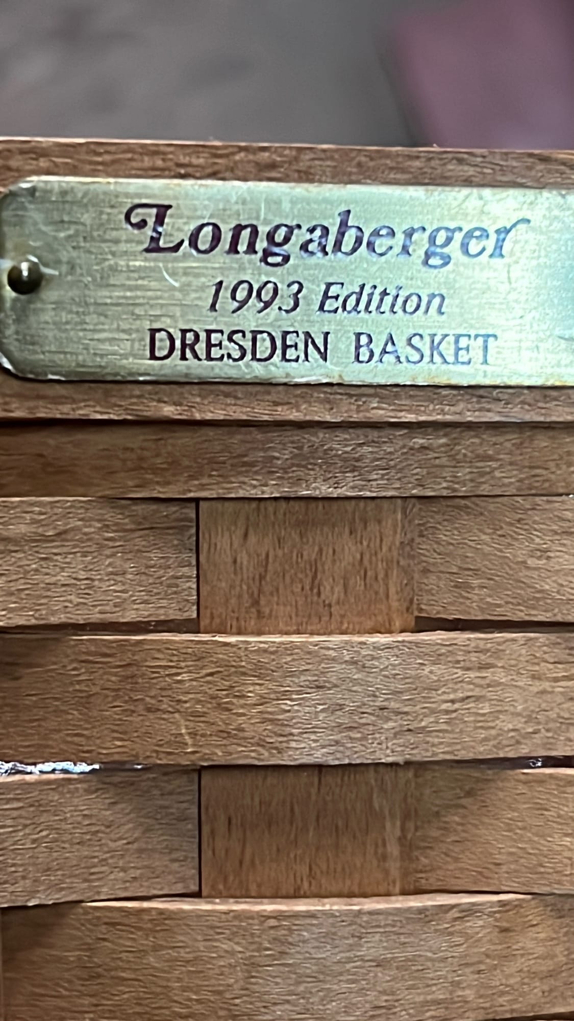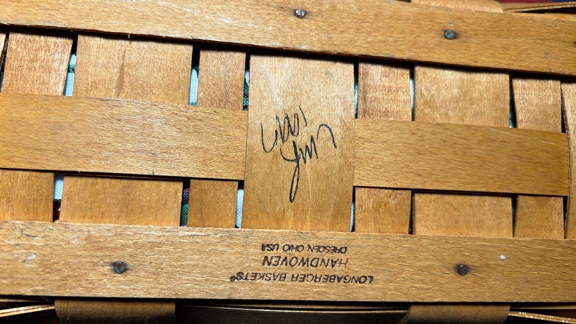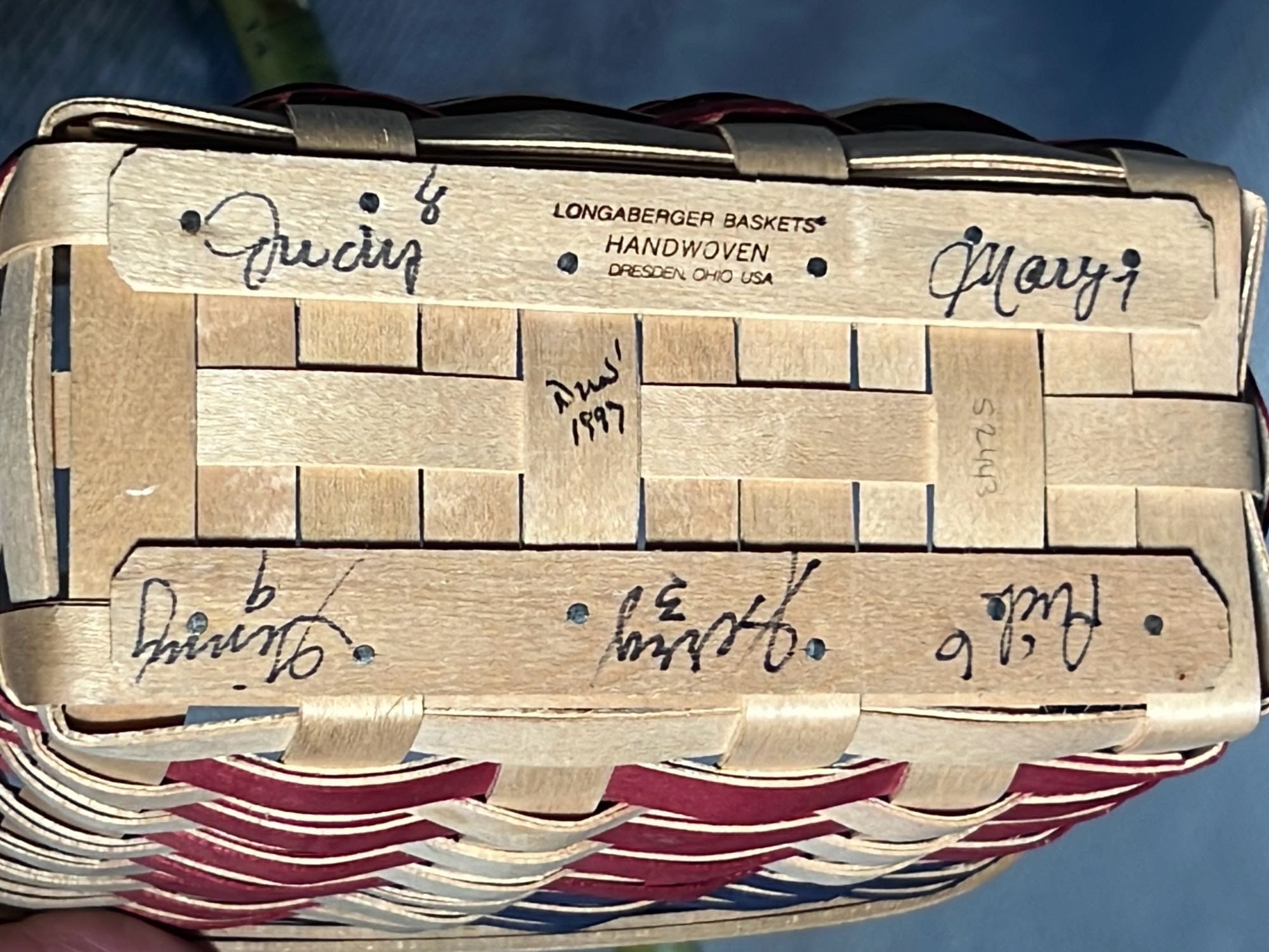 849 2000 Longaberger Century Celebration Basket with lid has metal leaf handle