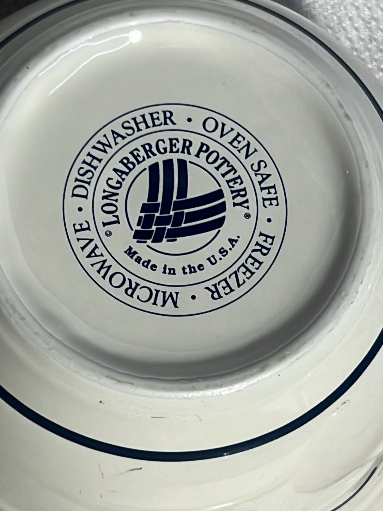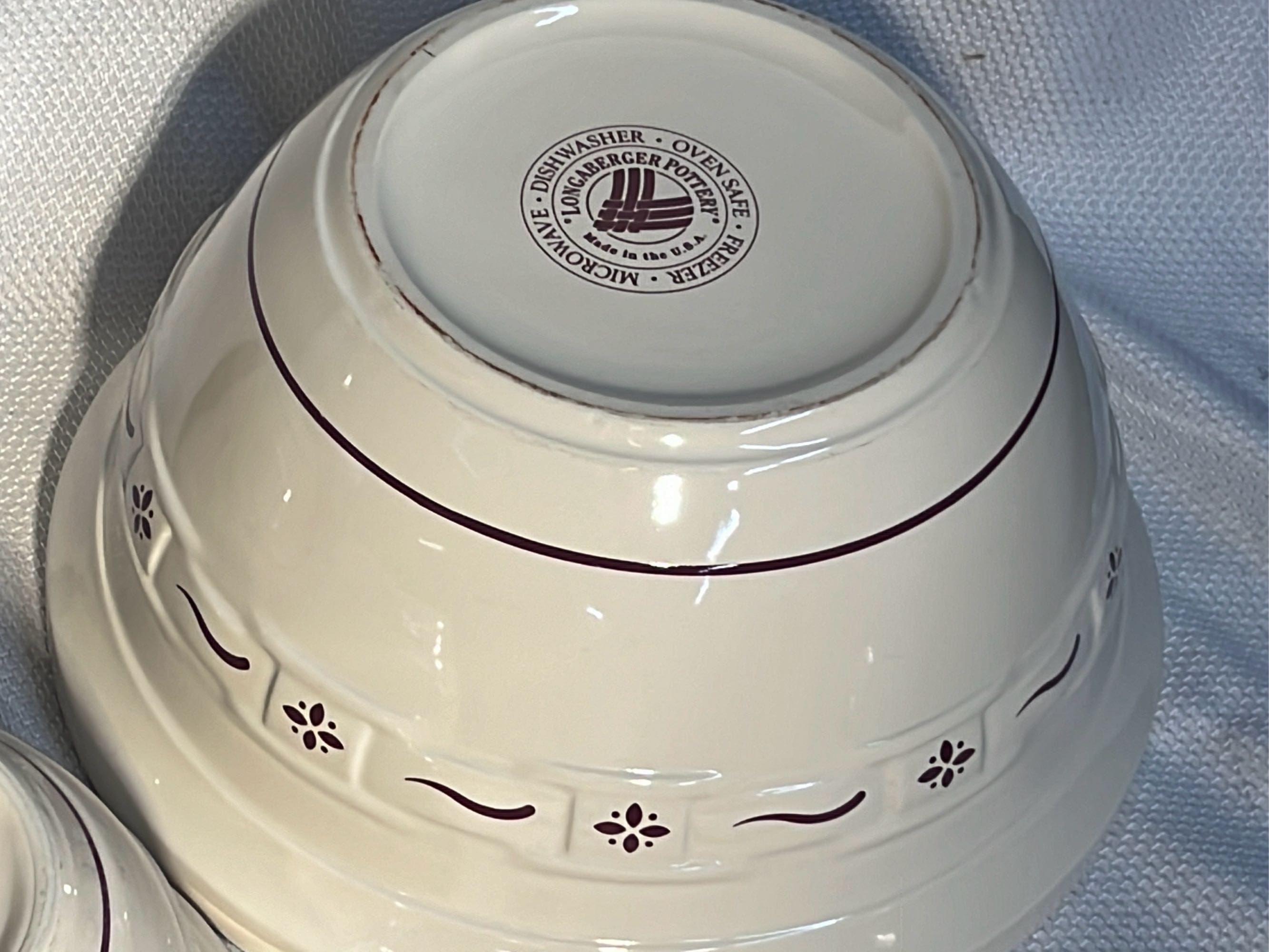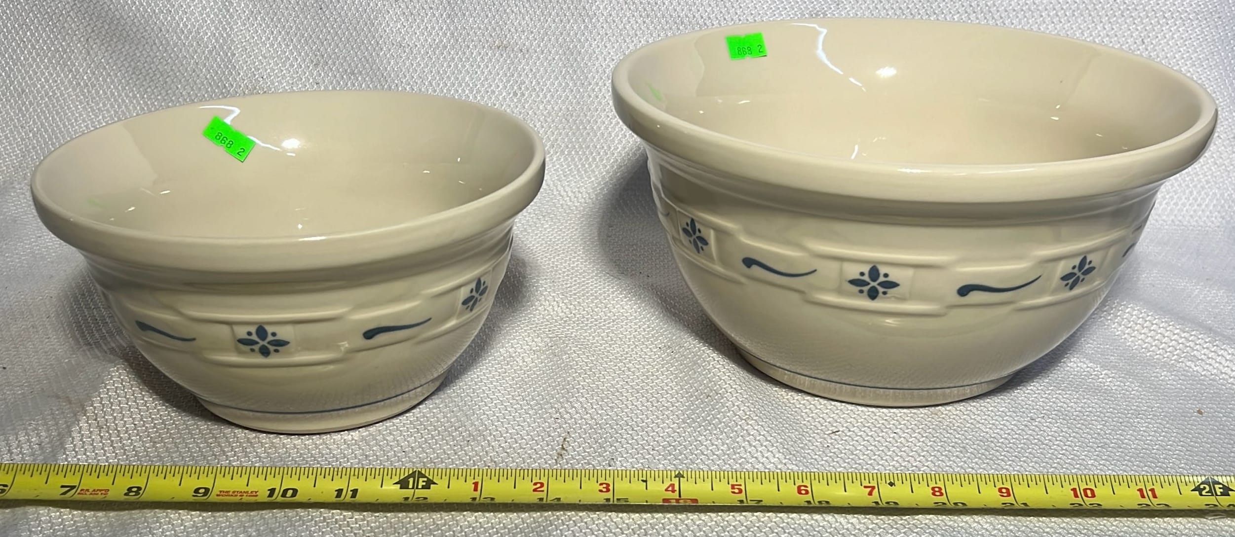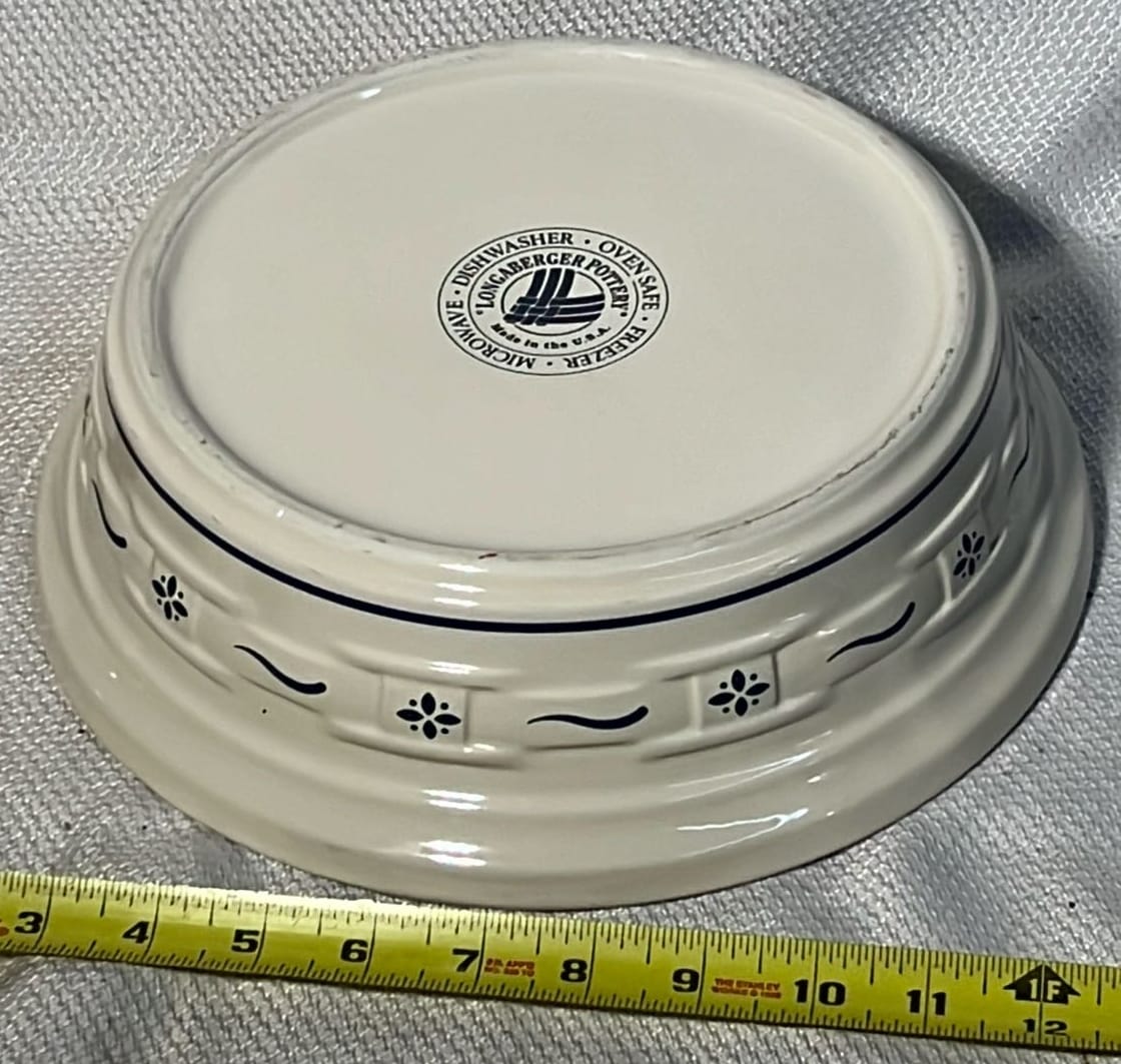 868 2- Longaberger Pottery 1st edition woven Traditions Blue Bowls 8”, 10”