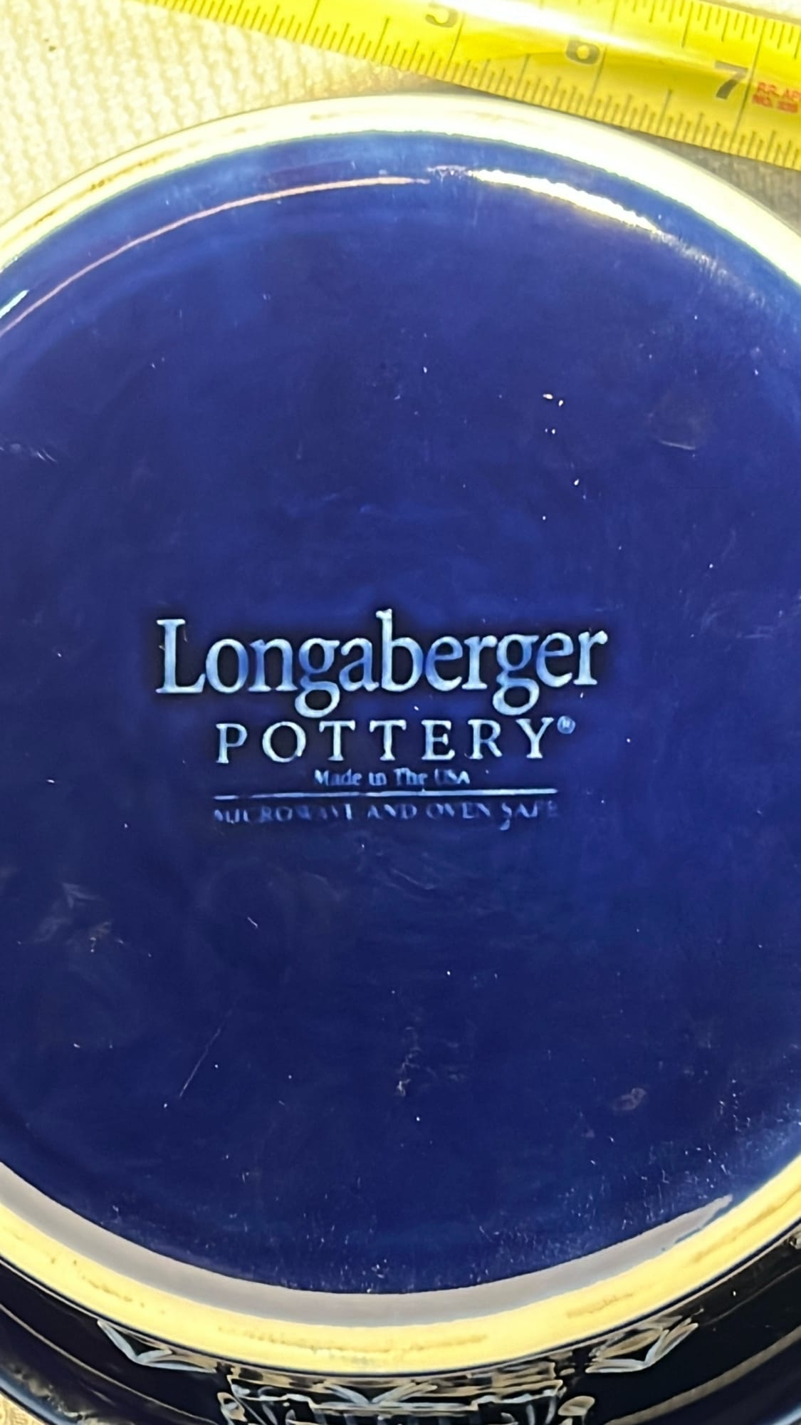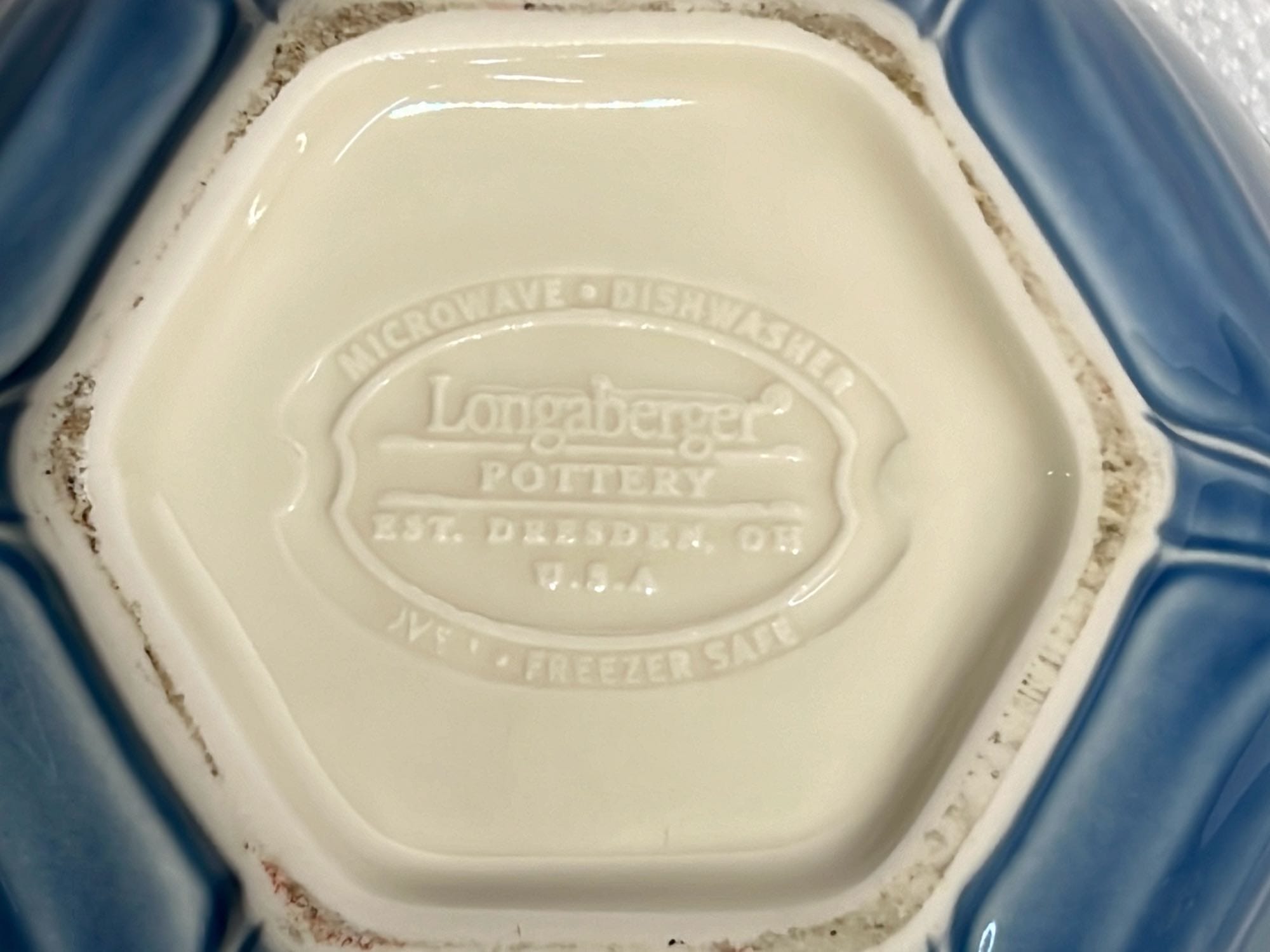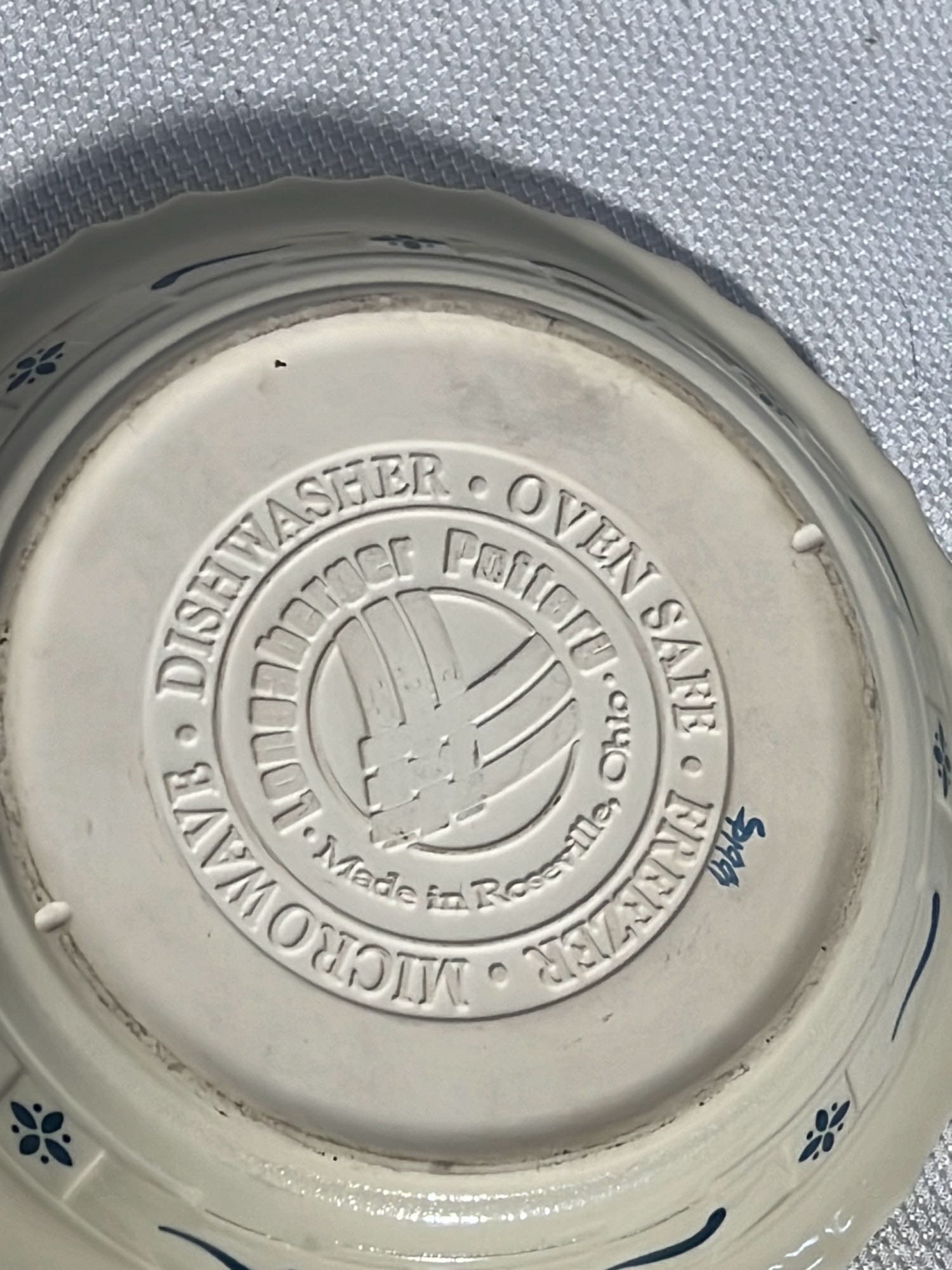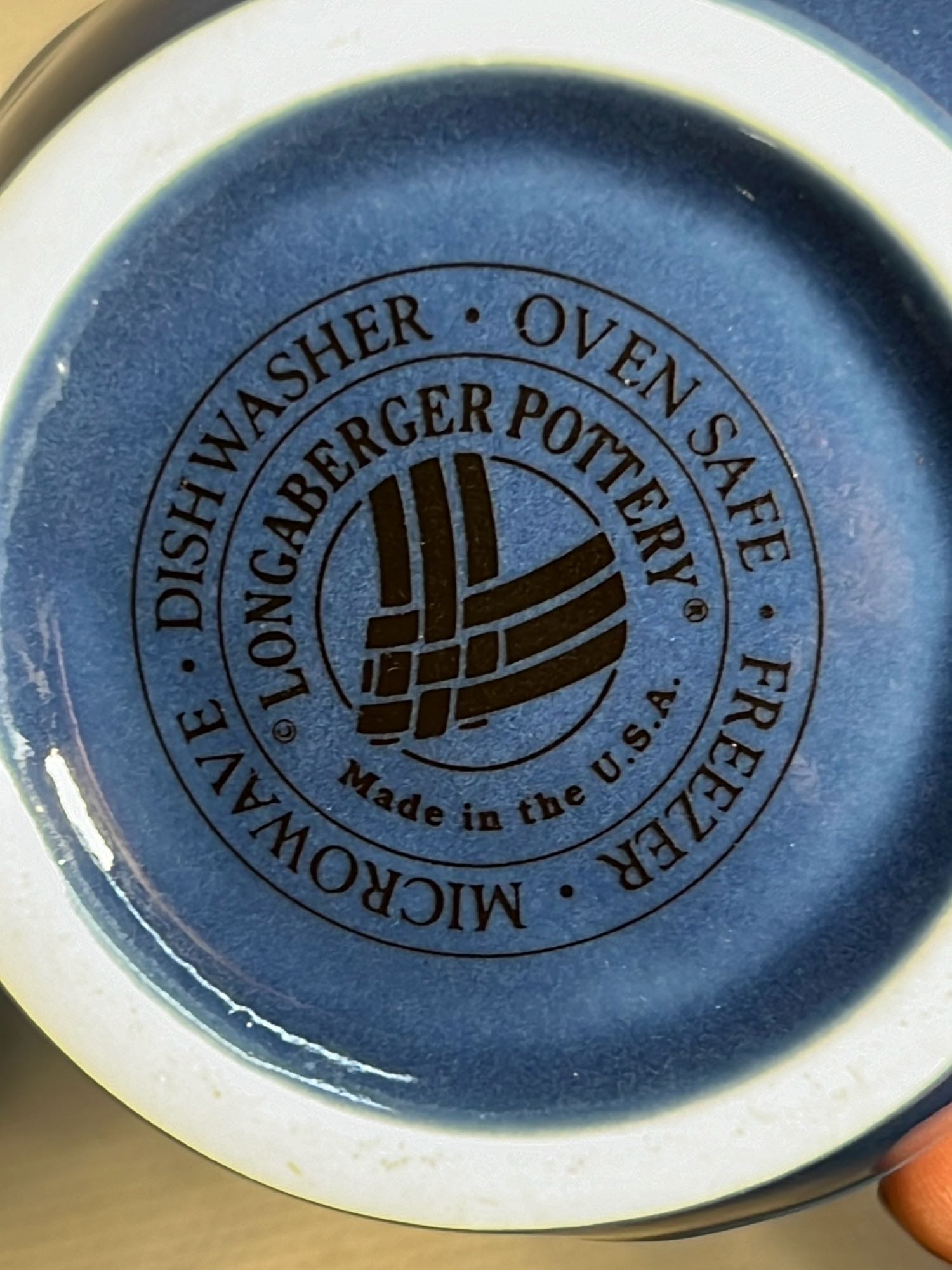 868 2- Longaberger Pottery 1st edition woven Traditions Blue Bowls 8”, 10”