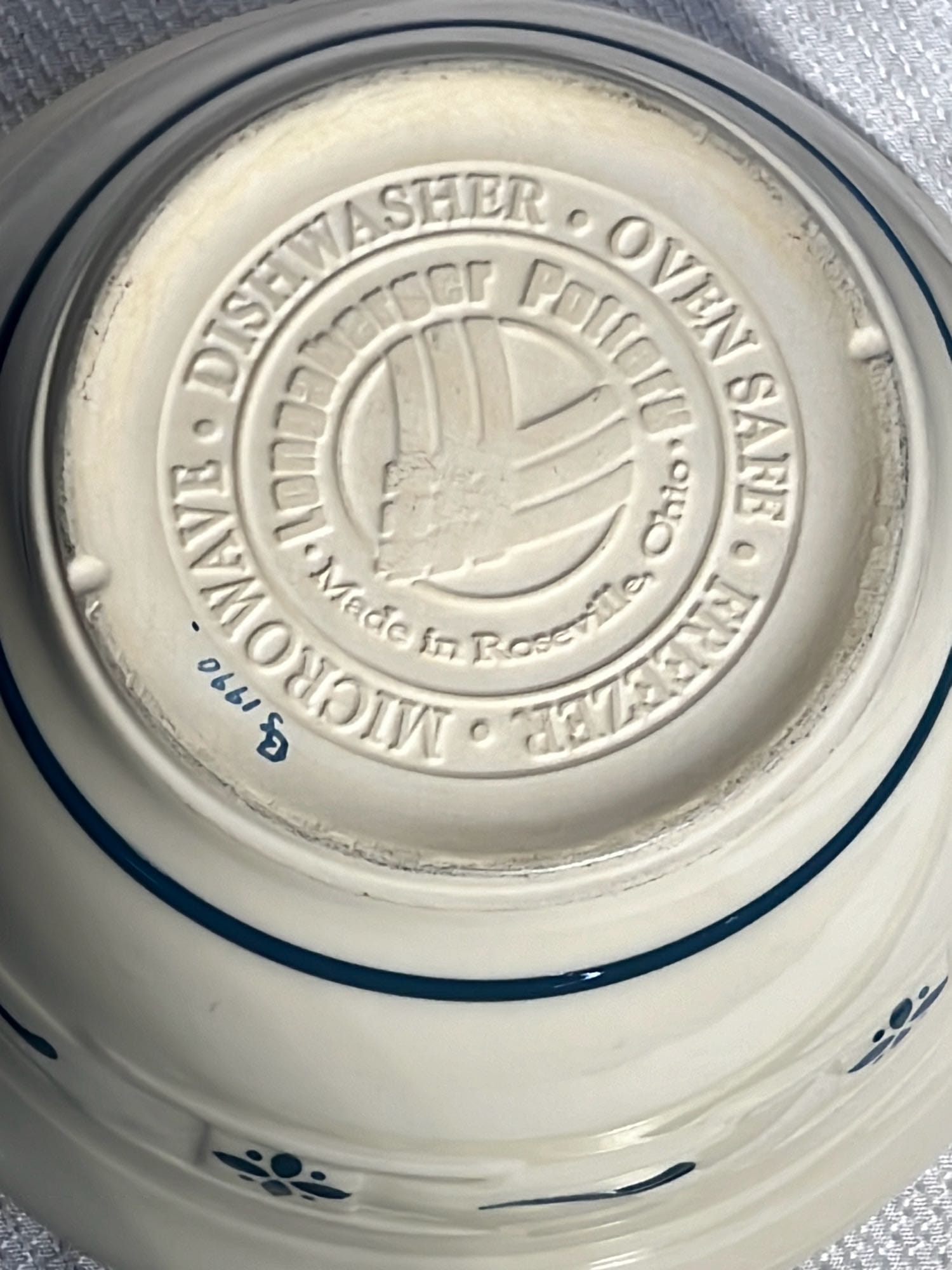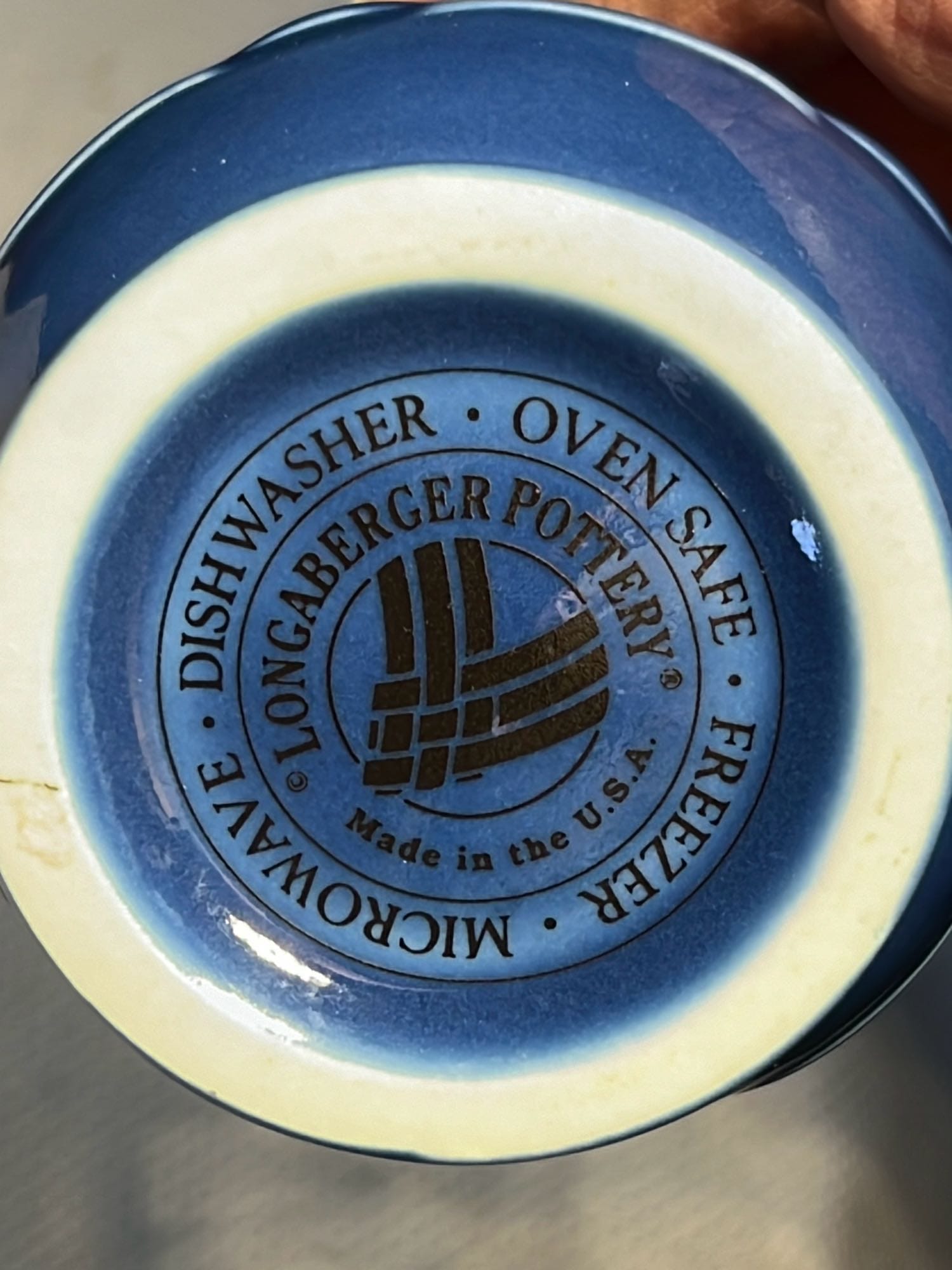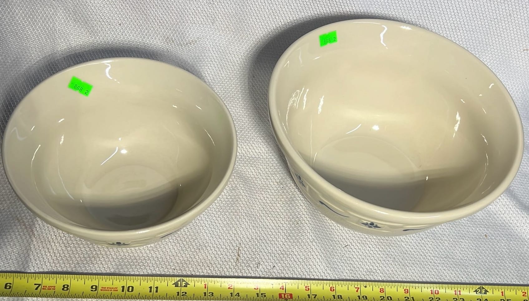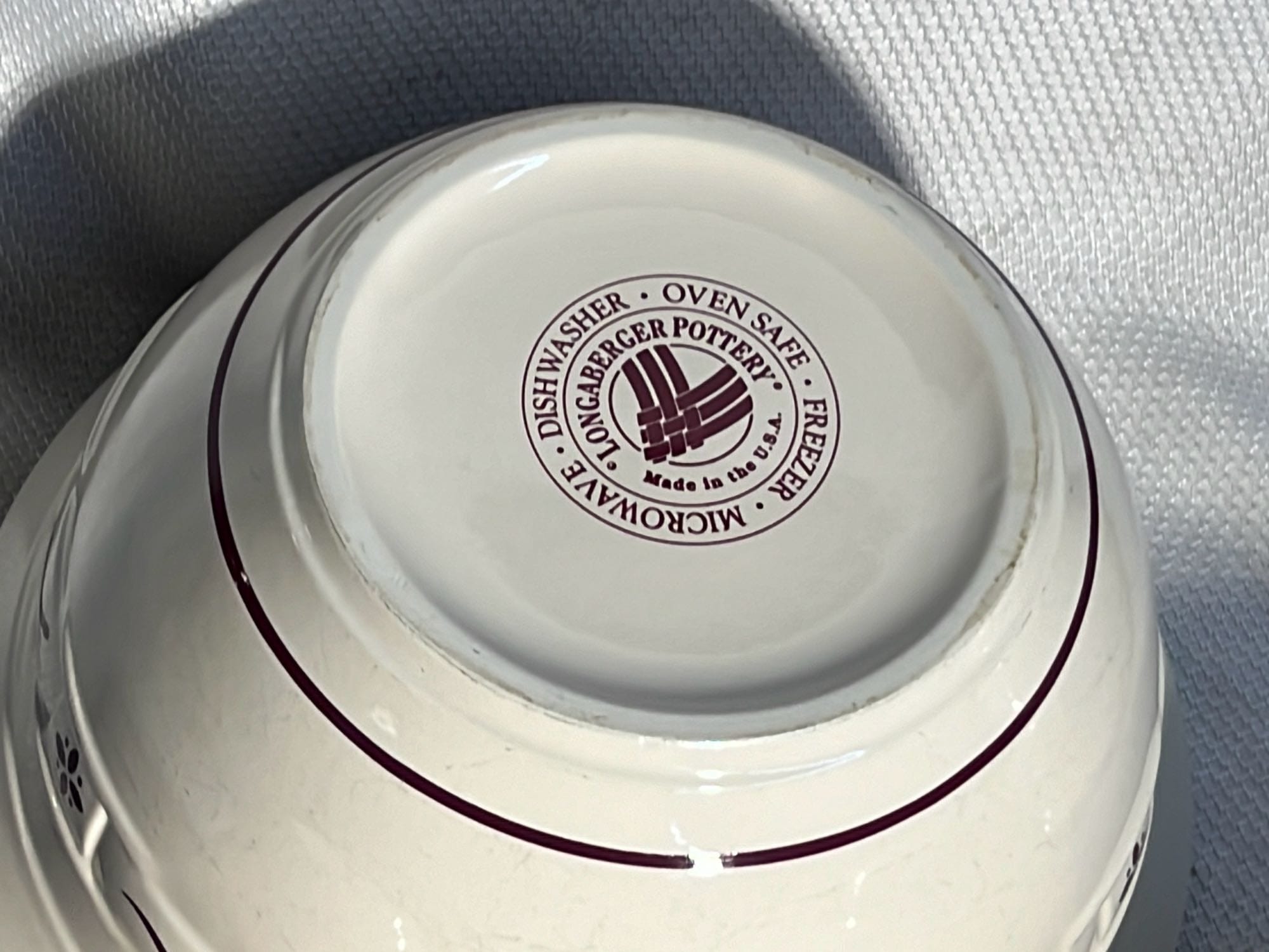 868 2- Longaberger Pottery 1st edition woven Traditions Blue Bowls 8”, 10”